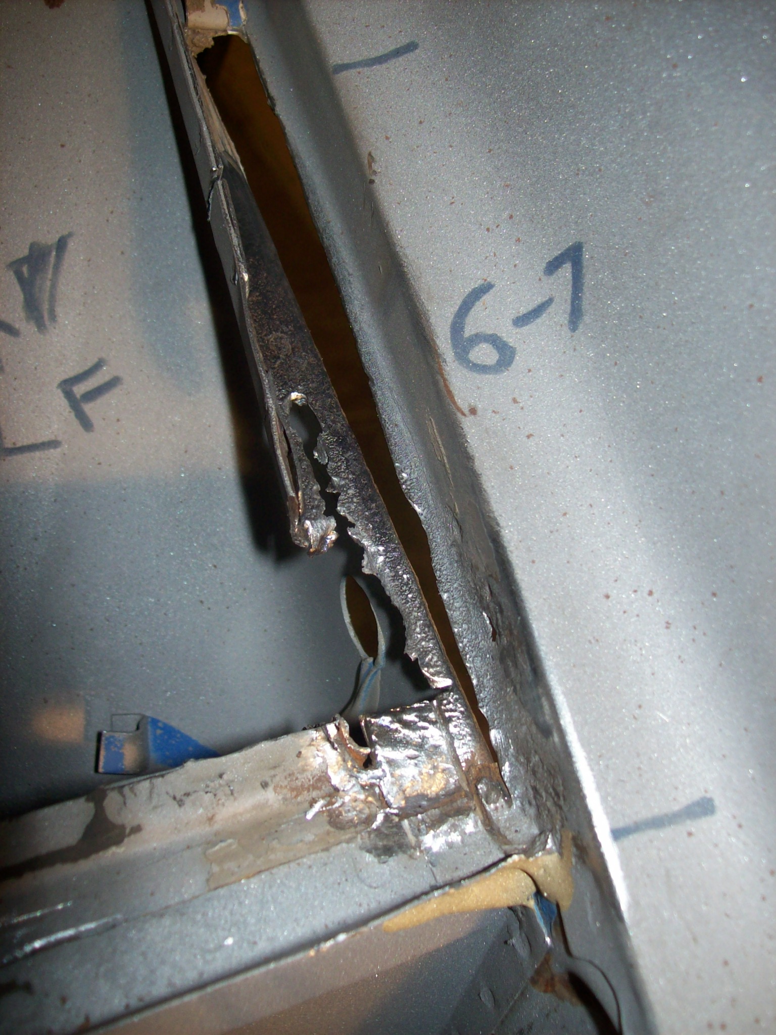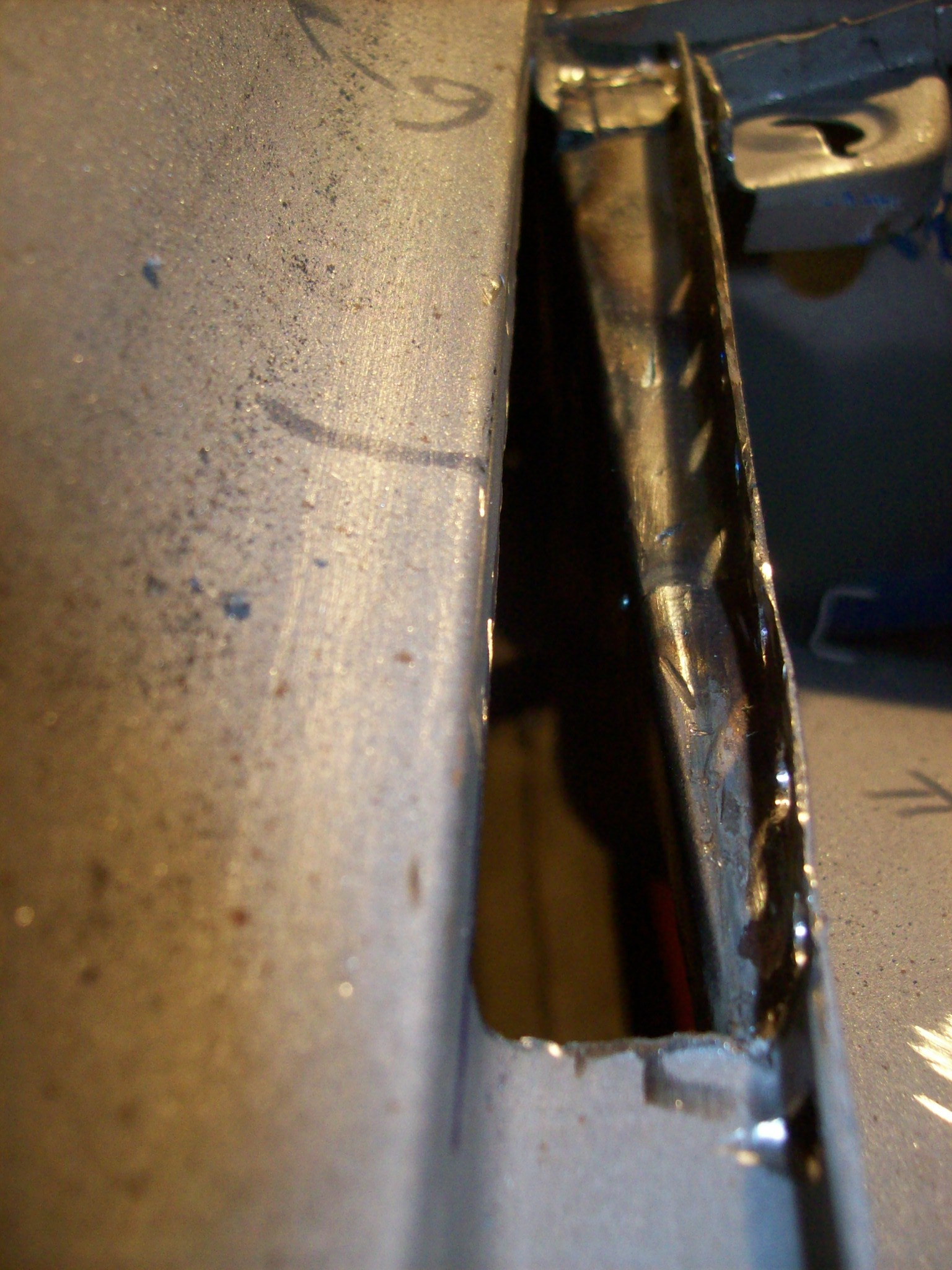 If you don't want to look at welding...stop here as that is pretty much all of what is going to be posted till this thing gets painted by Brant. BTW, thanks for sharing your experience Brant...and offer! For reference, I and going around the car clockwise and will finish at the A pillar on the drivers door. Still on the drivers side...channel where the fender is spot welded to the inner fender...not nice From the inside of the fender As I am learning on 914's you have to peel back the layers of the onion. First have to cut away the fender to repair the inner fender. |