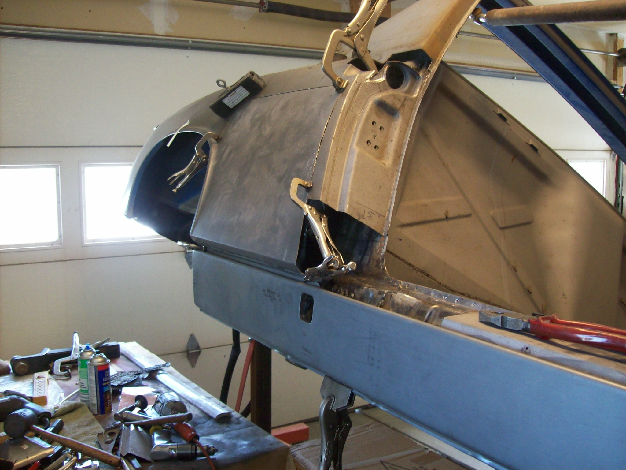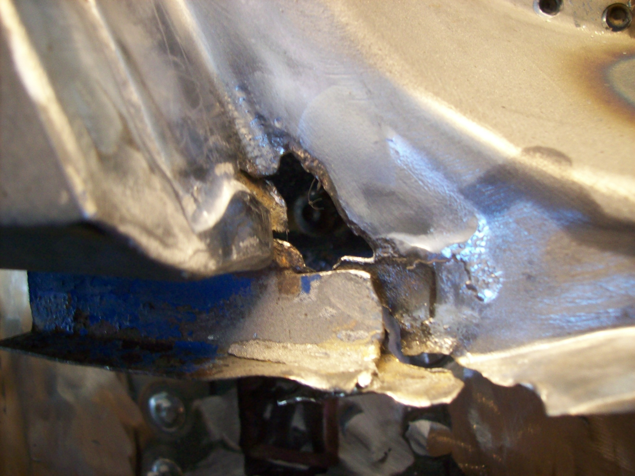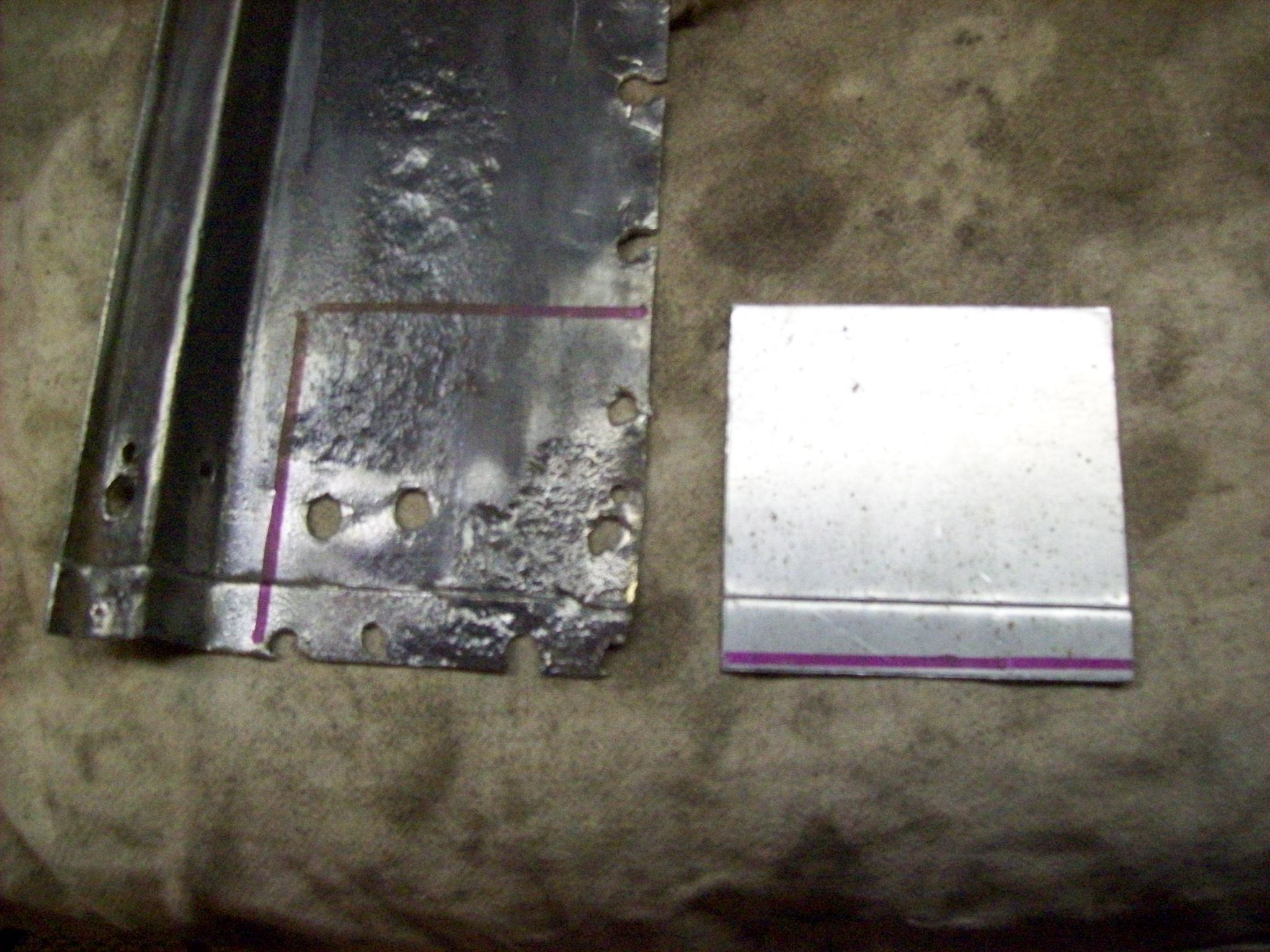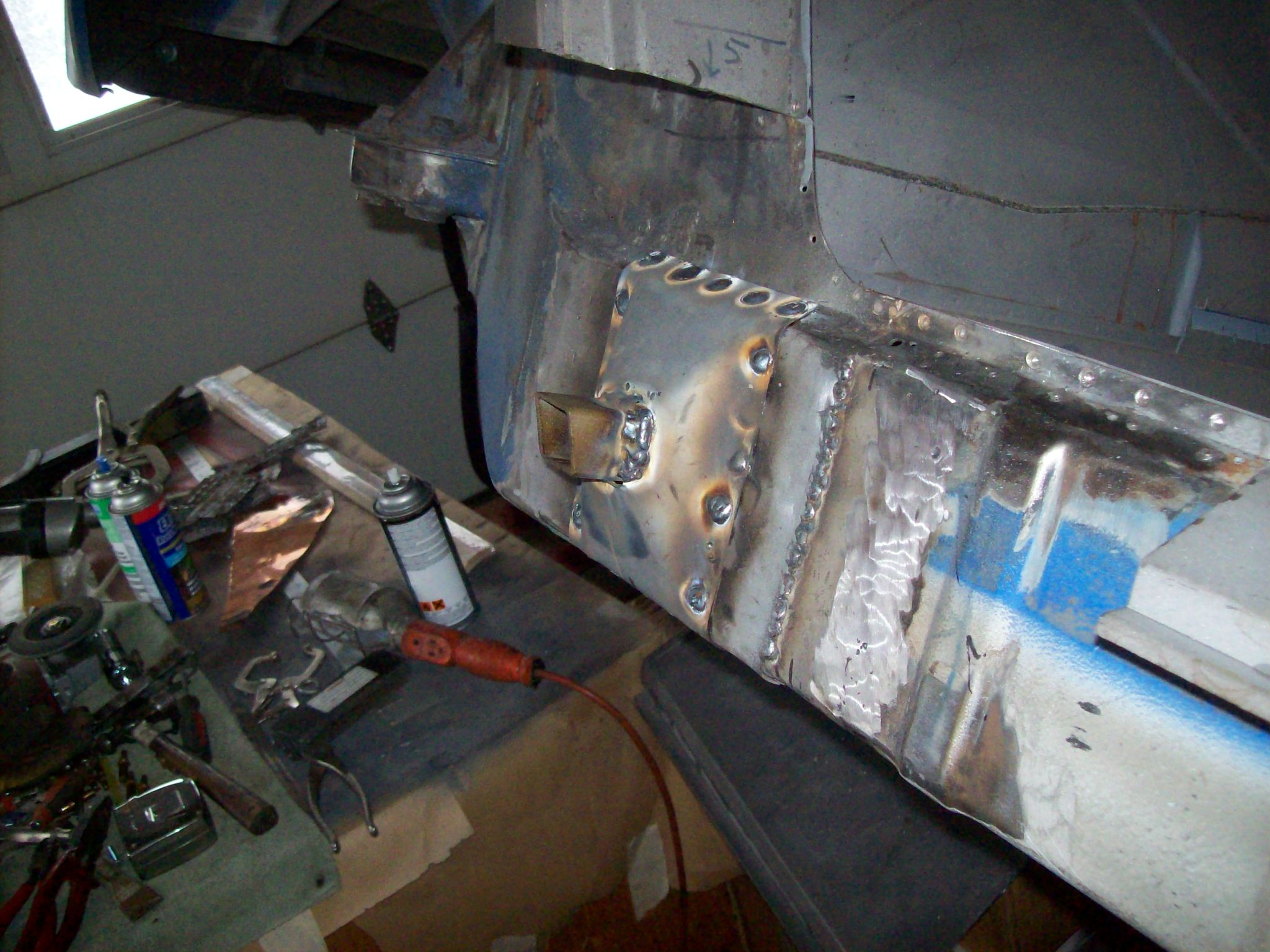 A message for all who read this thread. Luke pointed out that I installed a double layer in the rail on Ben's 6 when I did the rail repair. This serves two functions. One, less important but functionally as important is heat transfer. This will allow the single outer layer to transfer weld heat into the thicker two layers slowing the transfer and help reduce warping and shrinking.