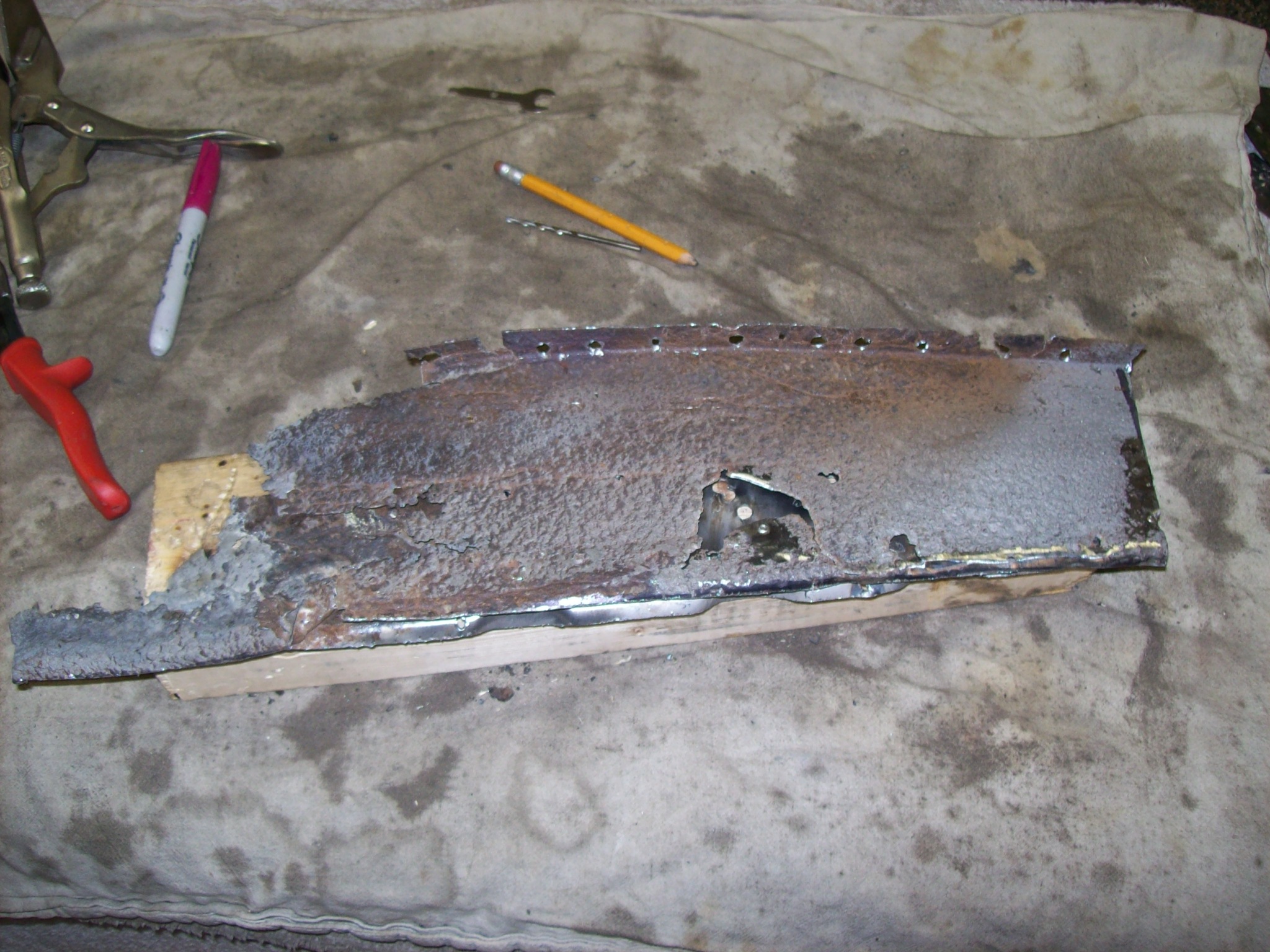 Fitted and trimmed but notice I had to trim the outer long lower to be able to attach the inner reinforcement. This will get spot welded/rossetted to the outer patch. I used the RD outer long as a template for the patch This is a PIA but it will be stronger in the long run Attached thumbnail(s) |