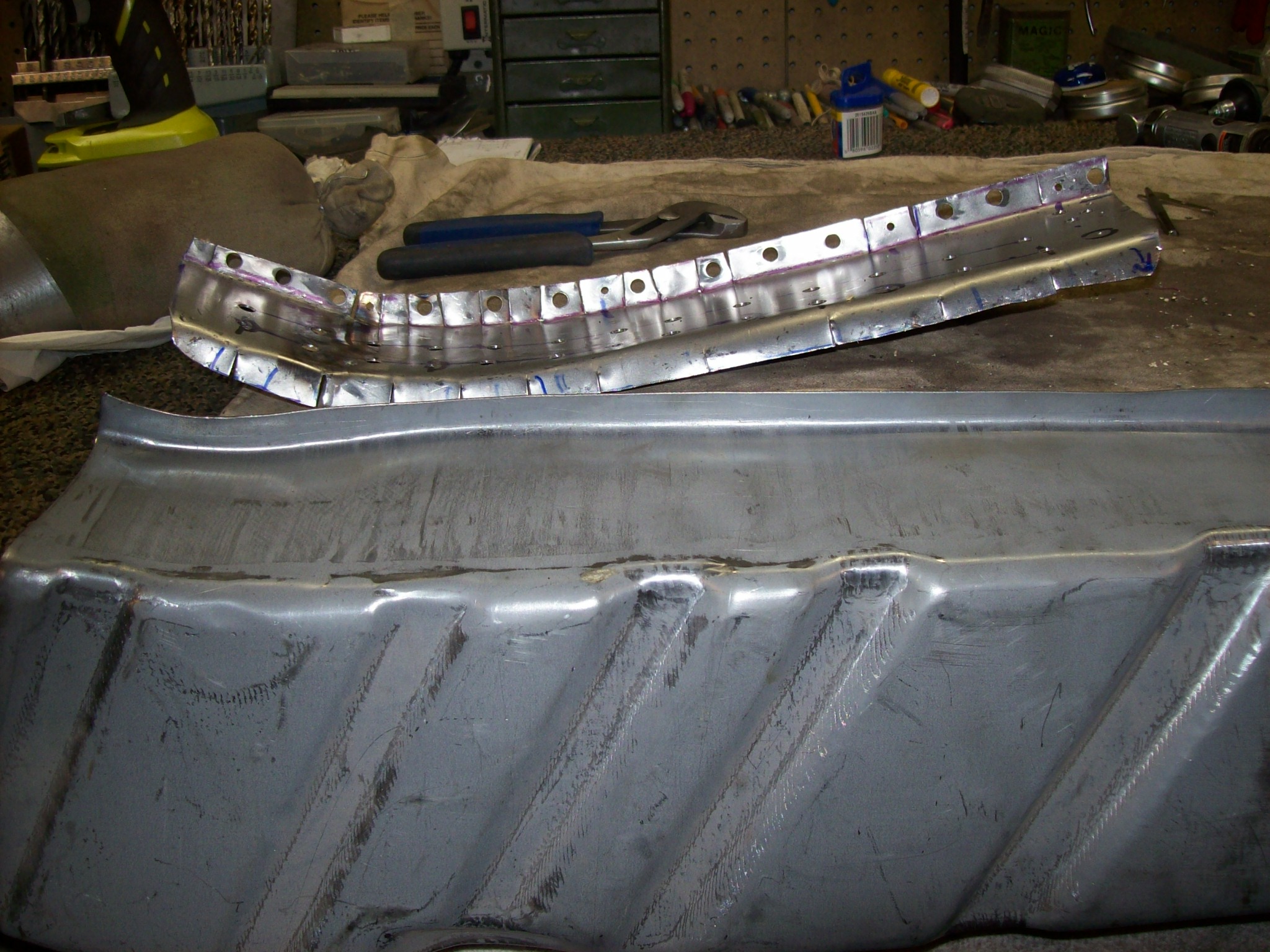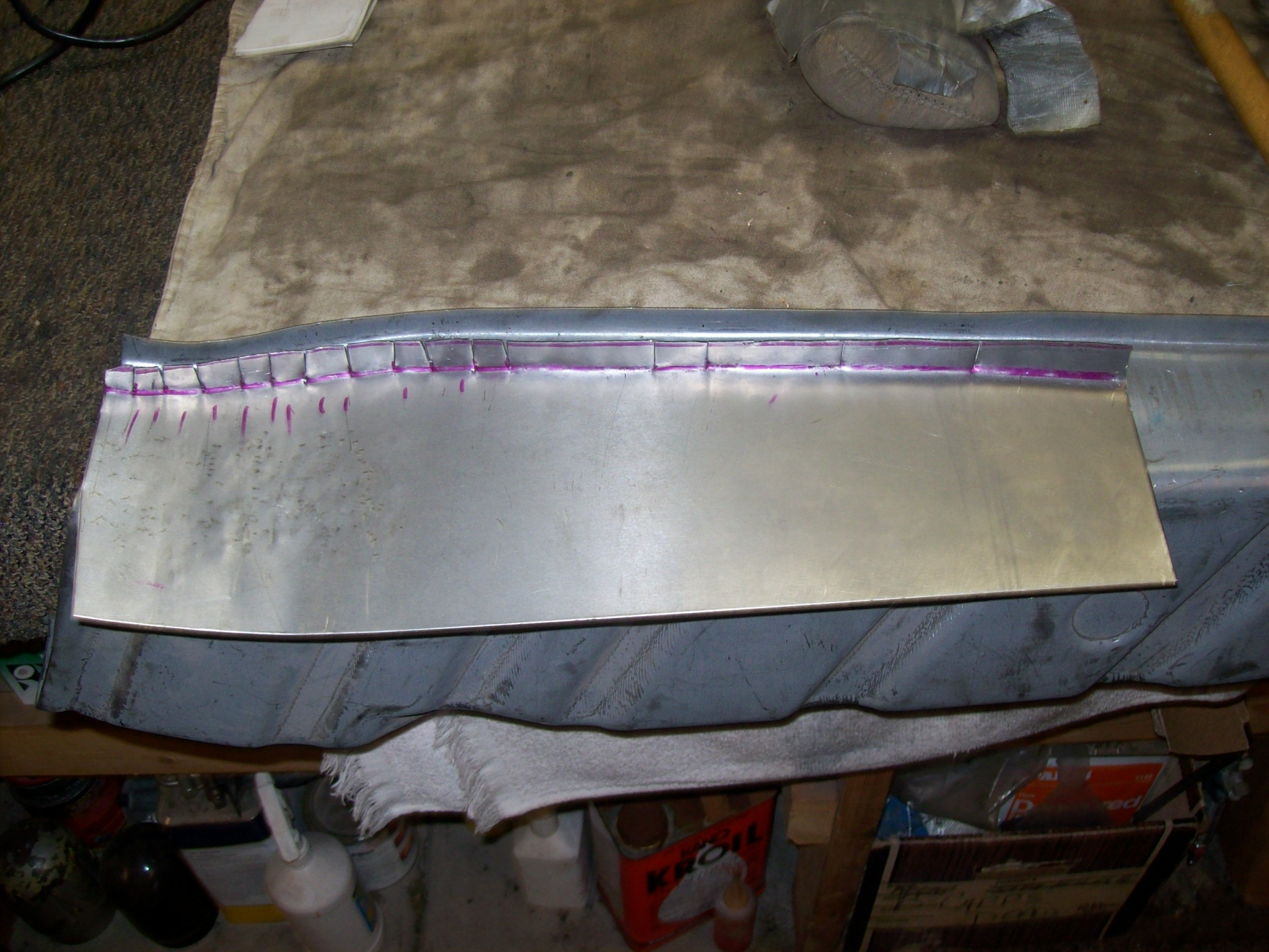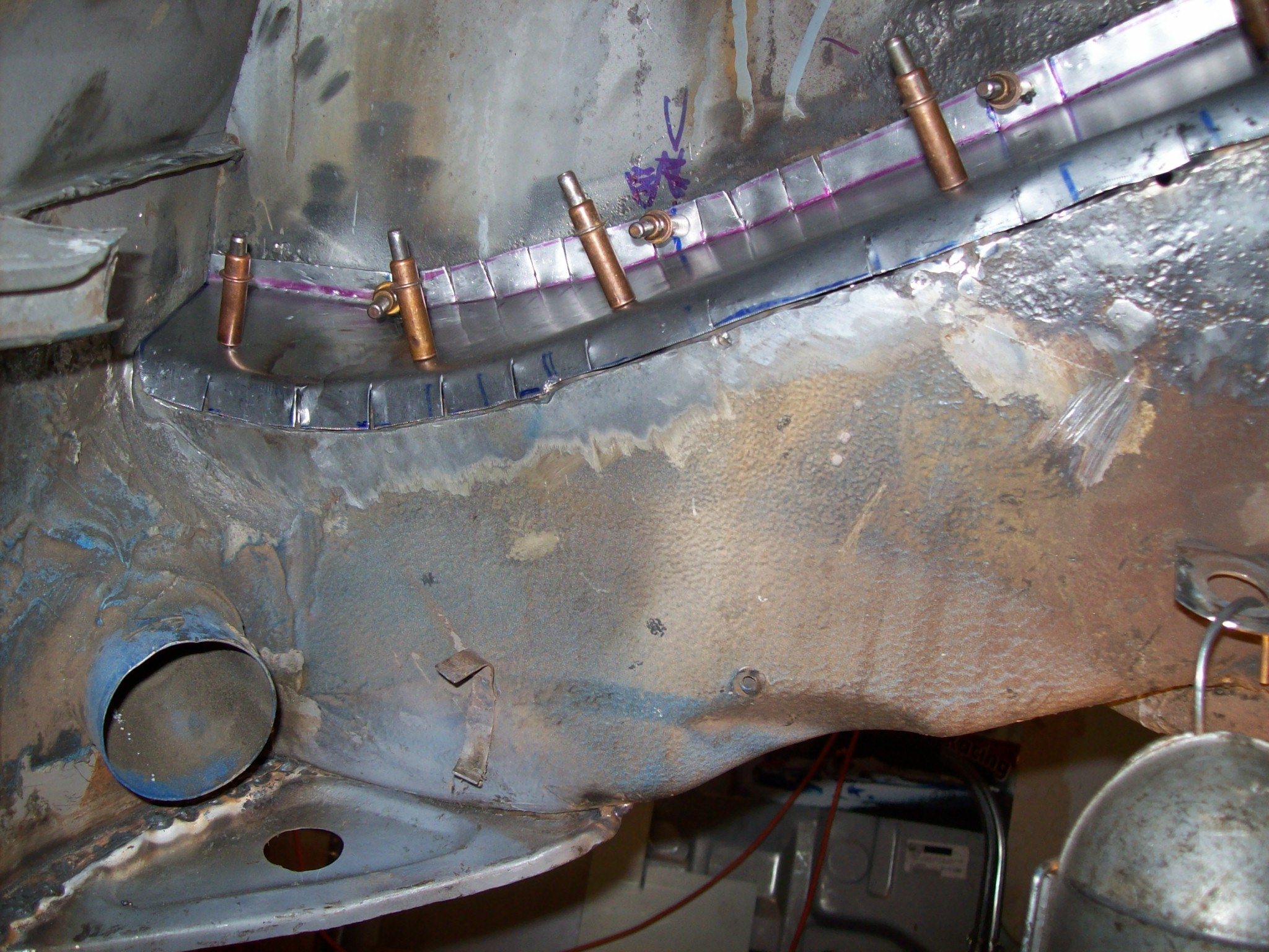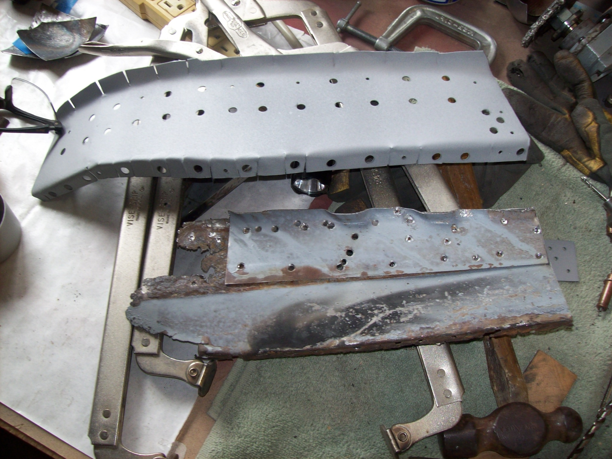 Fitting the inner...which has to be exact so the outer lays snugly over the inner Trimmed The inner needs to be carefully positioned so that when the outer patch is laid over it, the rosettes can be easily welded in creating the strength necessary. Yes it would have been easier to splice in the top of the RD repro piece and be done with it. Cleaned out the long and primed it for welding. I cannot shape and trim the outer patch till the inner is welded and finished. My pressure relief valve on my compressor crapped itself....today. Otherwise I would have been welding. |