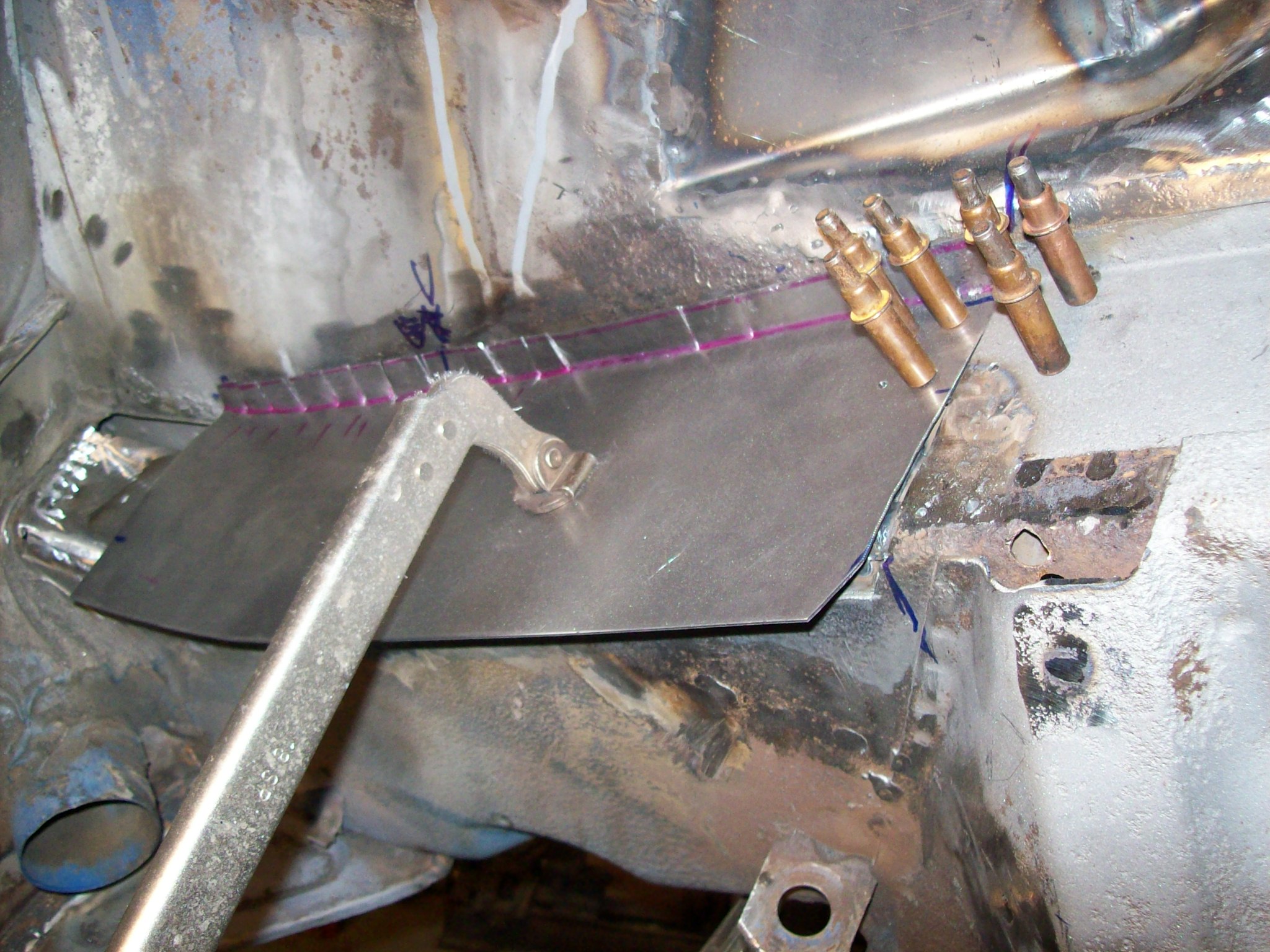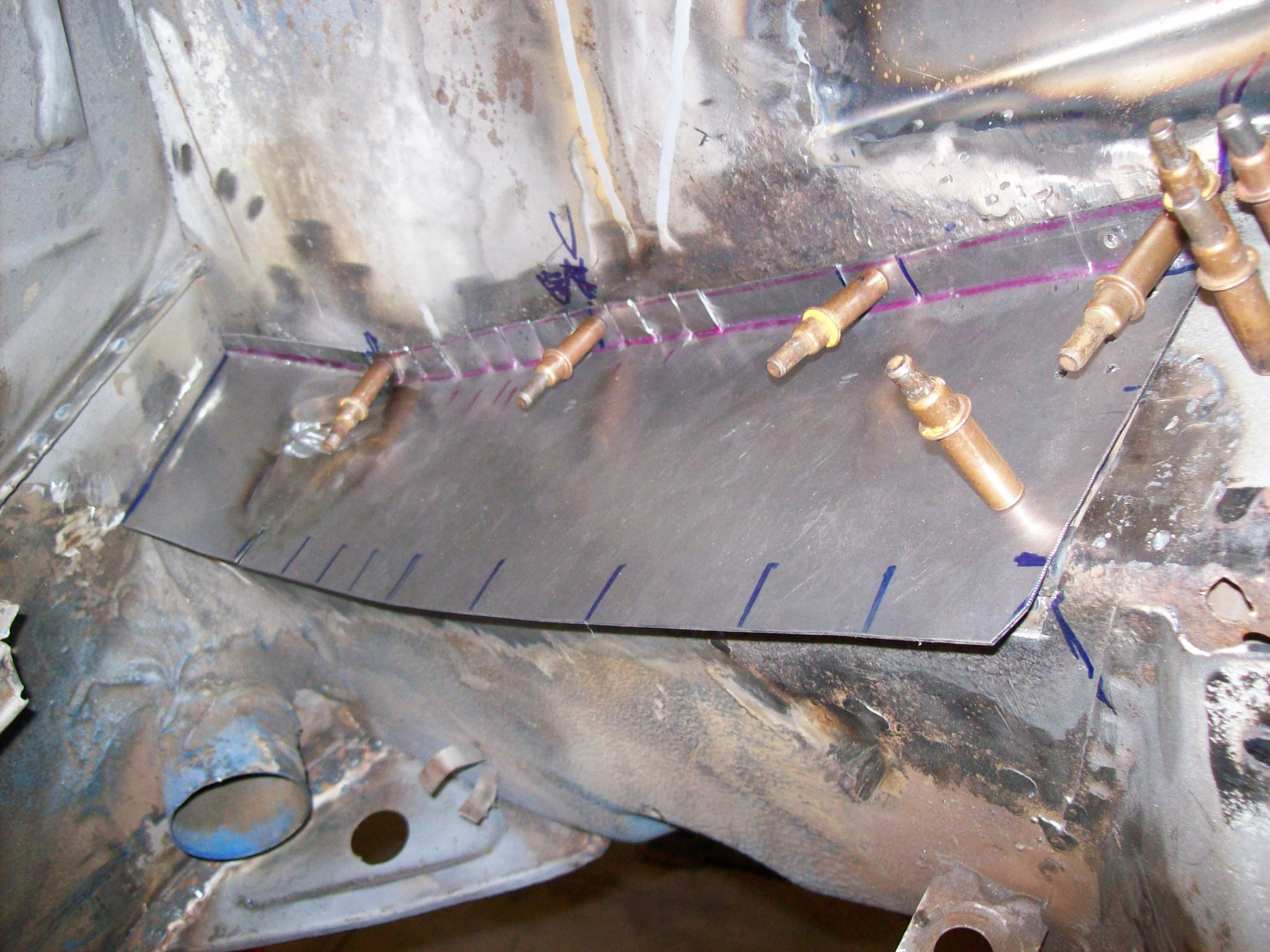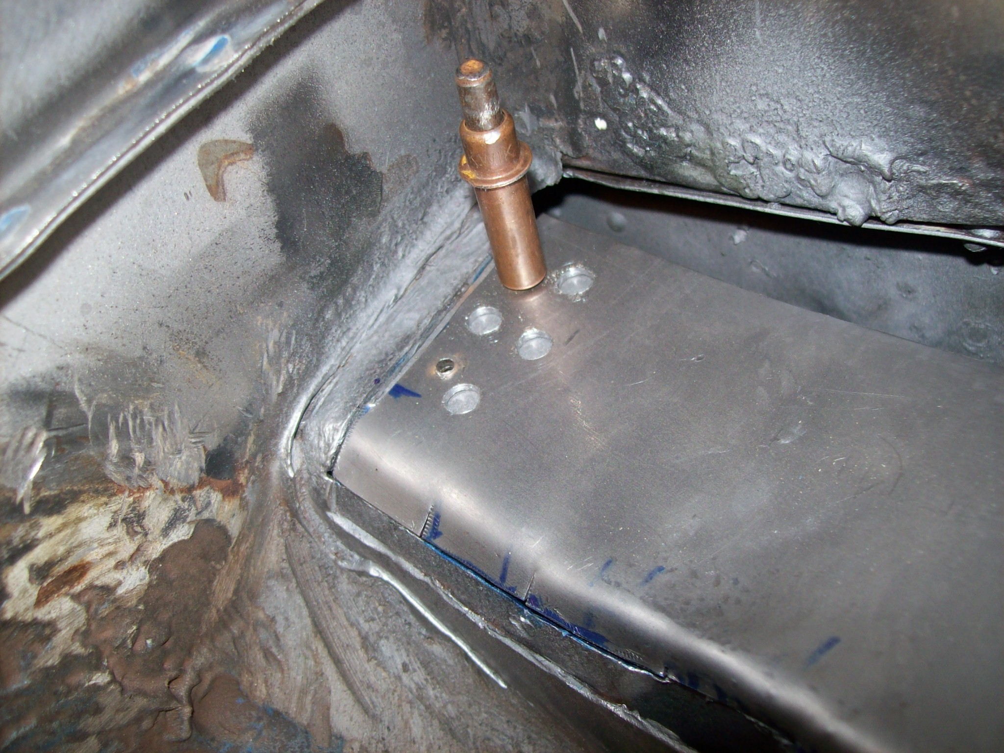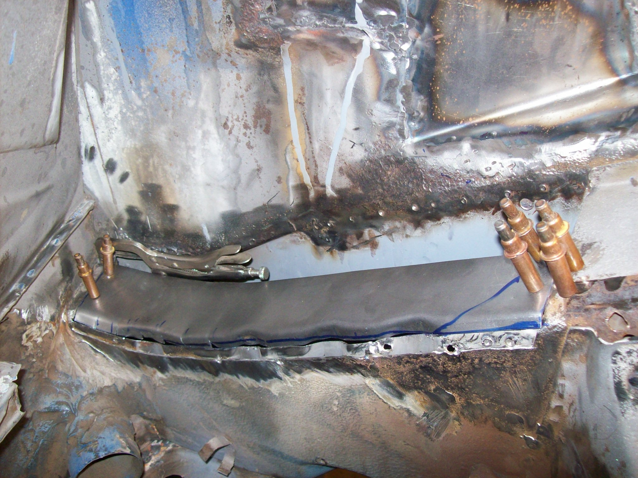 Fitting the inner...which has to be exact so the outer lays snugly over the inner Trimmed The inner needs to be carefully positioned so that when the outer patch is laid over it, the rosettes can be easily welded in creating the strength necessary. Yes it would have been easier to splice in the top of the RD repro piece and be done with it. Cleaned out the long and primed it for welding. I cannot shape and trim the outer patch till the inner is welded and finished. My pressure relief valve on my compressor crapped itself....today. Otherwise I would have been welding. |