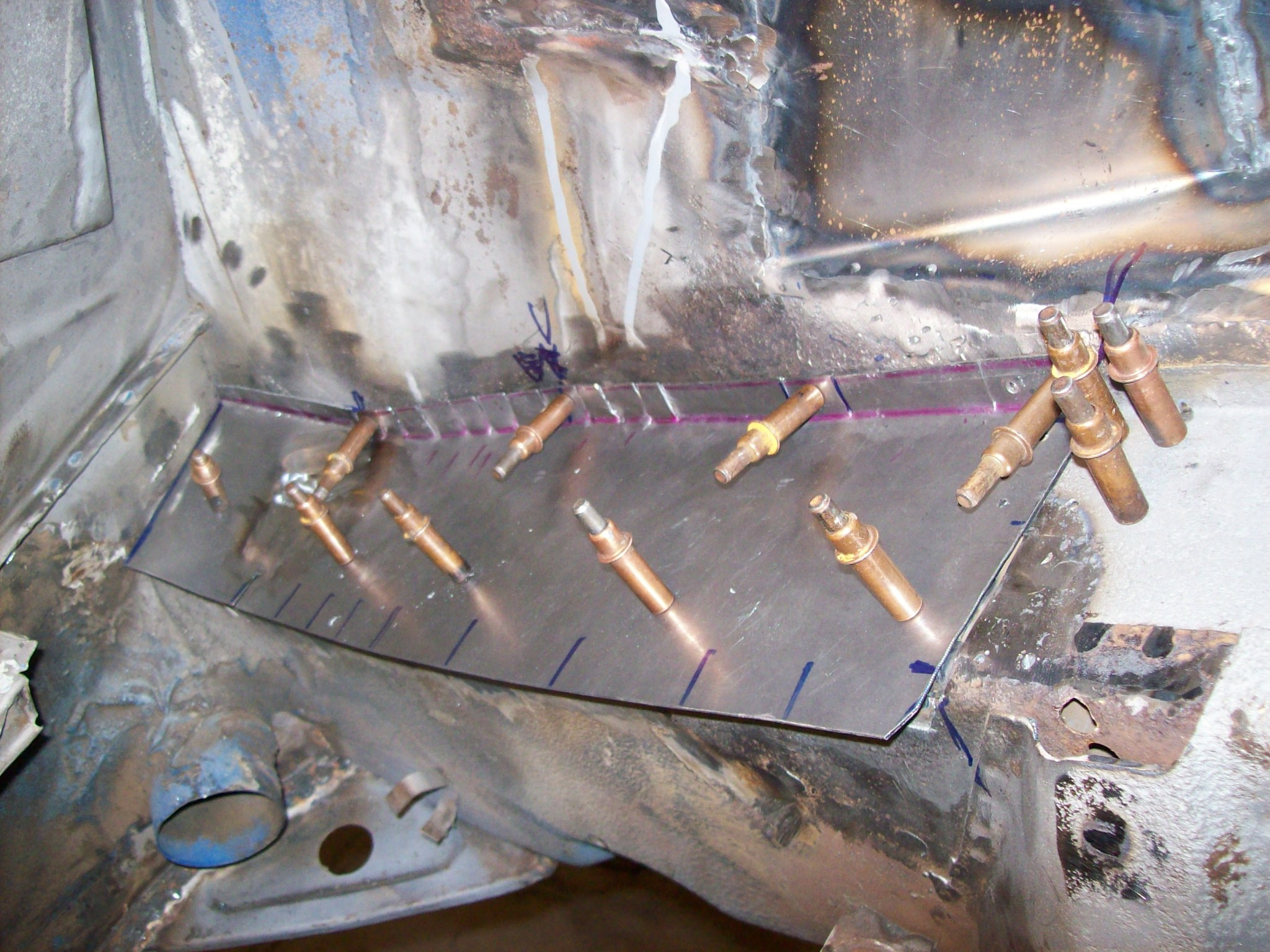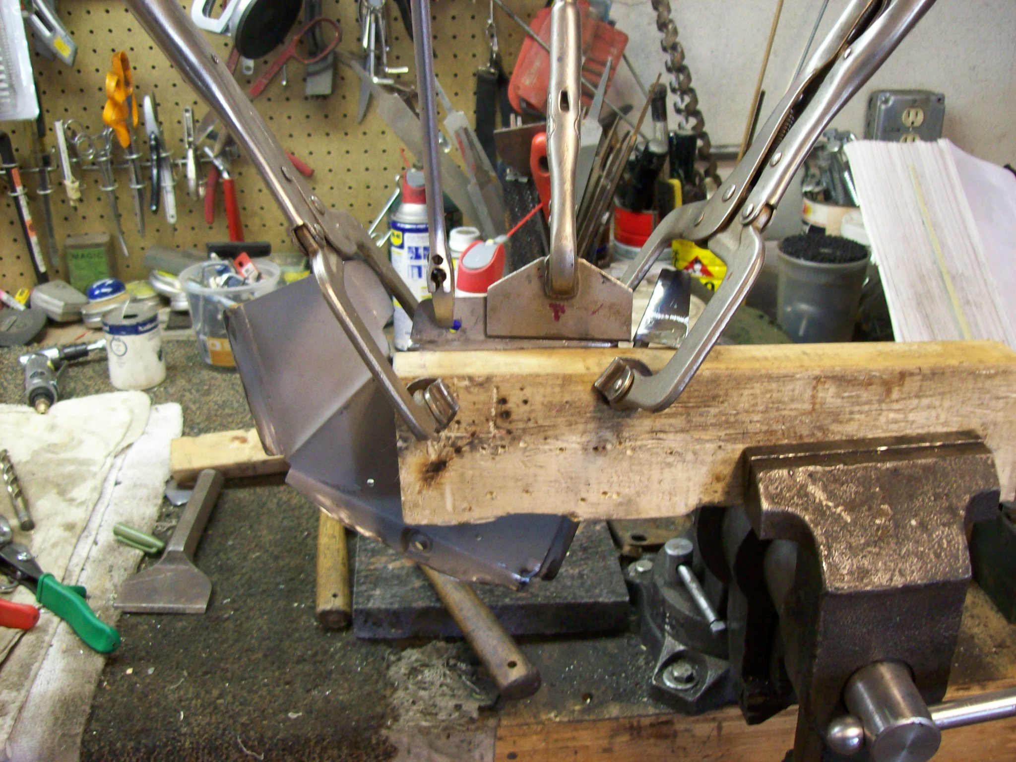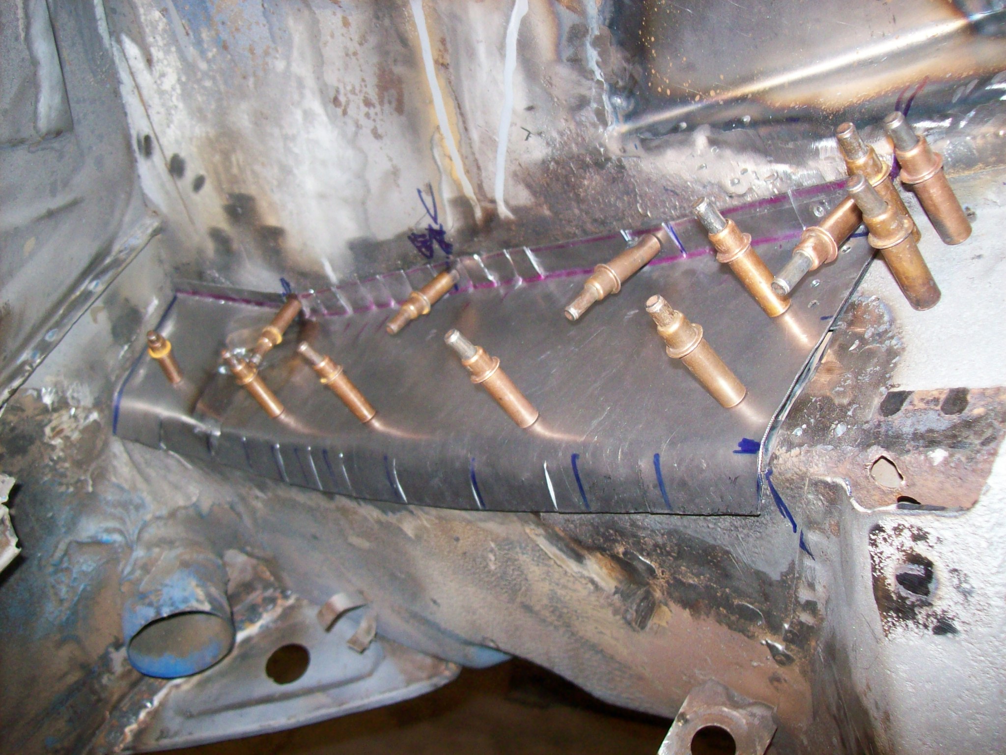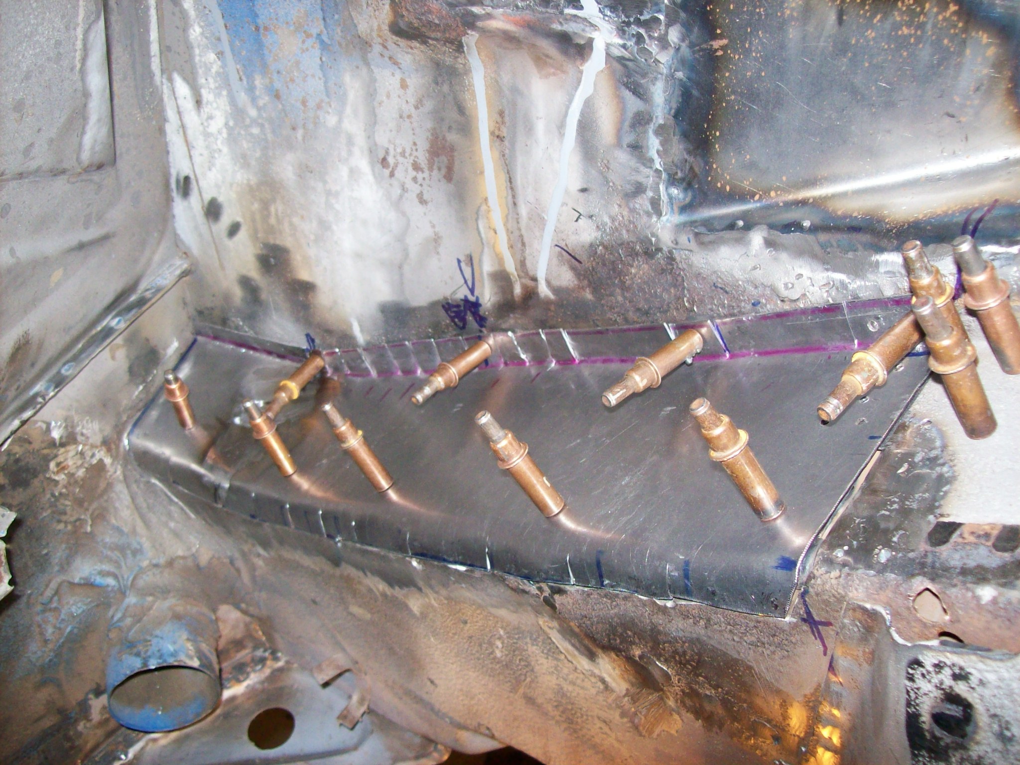 Fitting the inner...which has to be exact so the outer lays snugly over the inner Trimmed The inner needs to be carefully positioned so that when the outer patch is laid over it, the rosettes can be easily welded in creating the strength necessary. Yes it would have been easier to splice in the top of the RD repro piece and be done with it. Cleaned out the long and primed it for welding. I cannot shape and trim the outer patch till the inner is welded and finished. My pressure relief valve on my compressor crapped itself....today. Otherwise I would have been welding. |