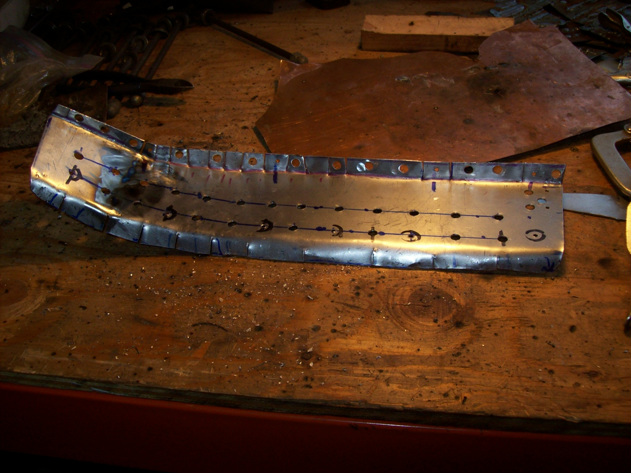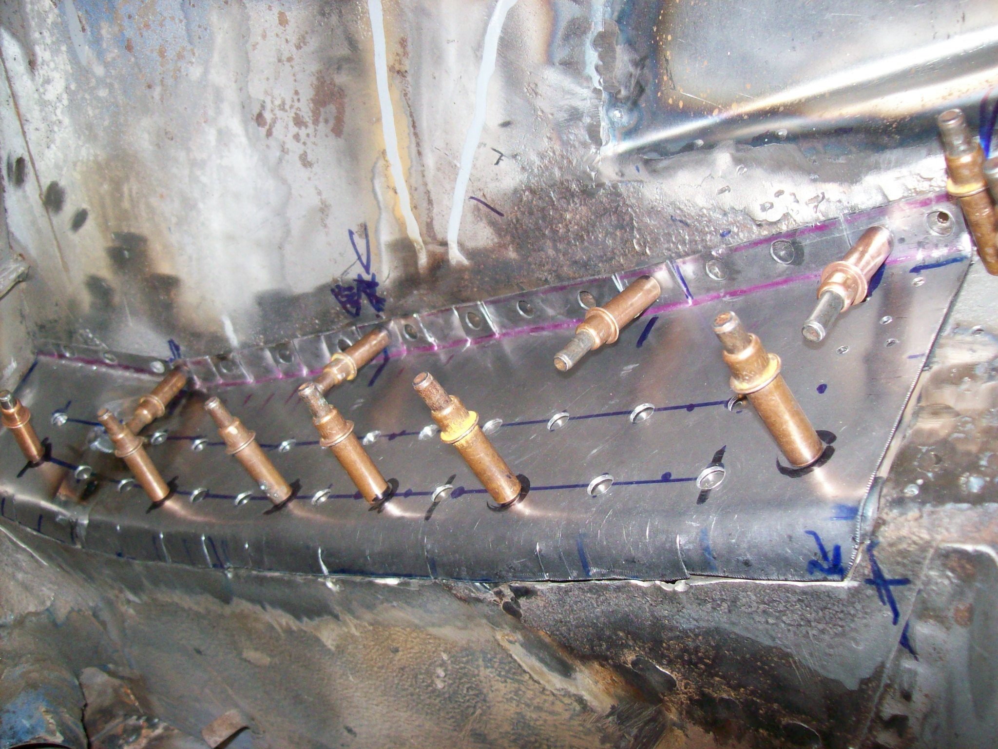 Which should add even more rigidity to the repaired area. Clecoes to align and rosettes to secure And secured and trimmed. I am pleased with how this inner panel turned out. It will provide a great form for fitting the outside longitudinal repair. |