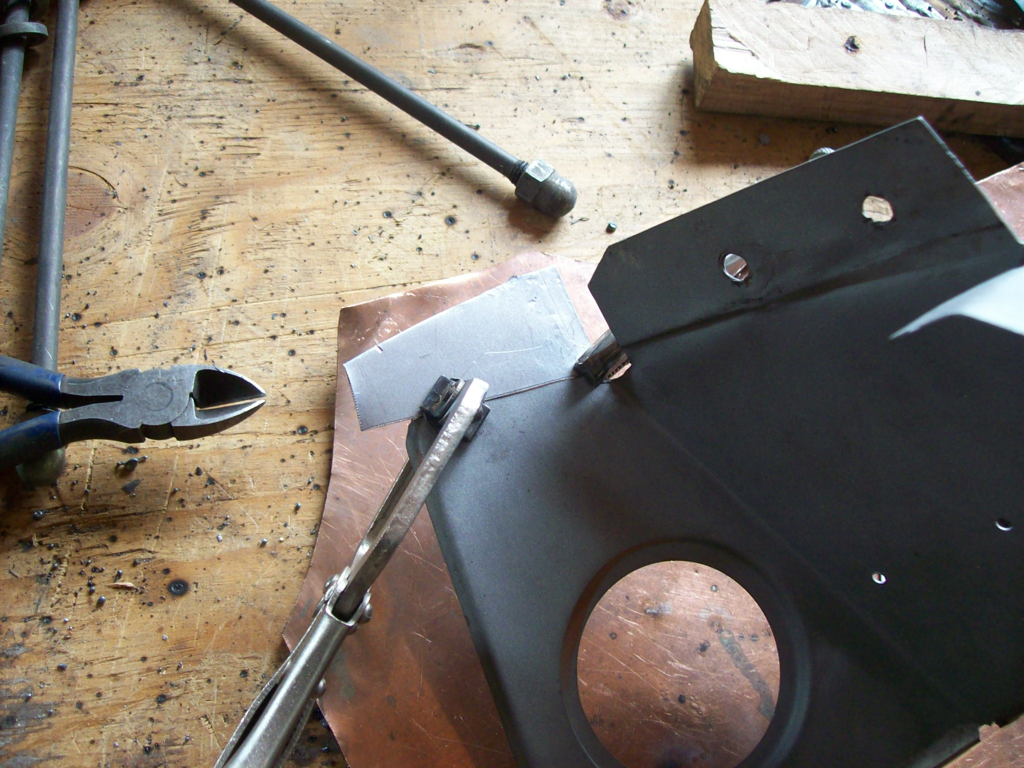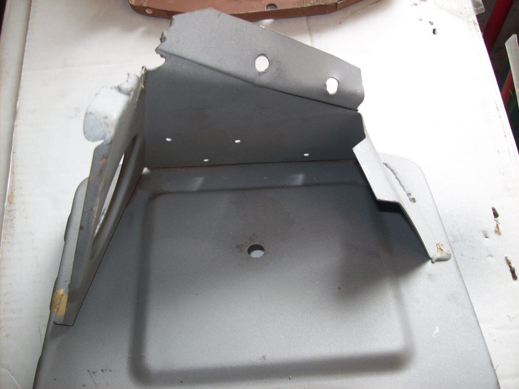 I will weld this in this afternoon...if I can open the garage door, but I need to accomplish a small repair to keep the juices flowing. Battery support was replaced at one point...and not very well. Here is my support and tray...