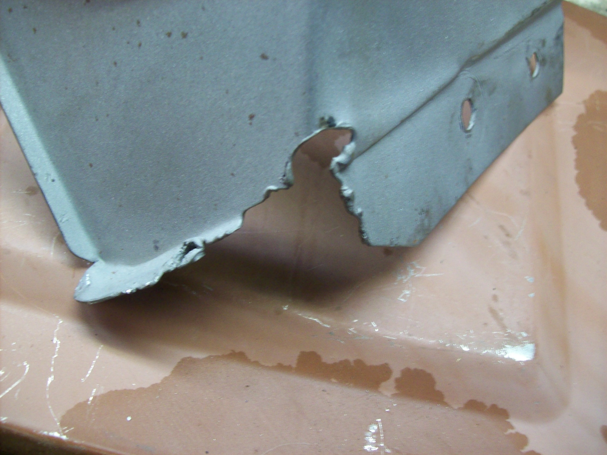 Part of the problem is the previous repair and part of the problem is what was needed to remove the stand from the weakened longitudinal. I removed the support from the tray It wasn't in great shape. |