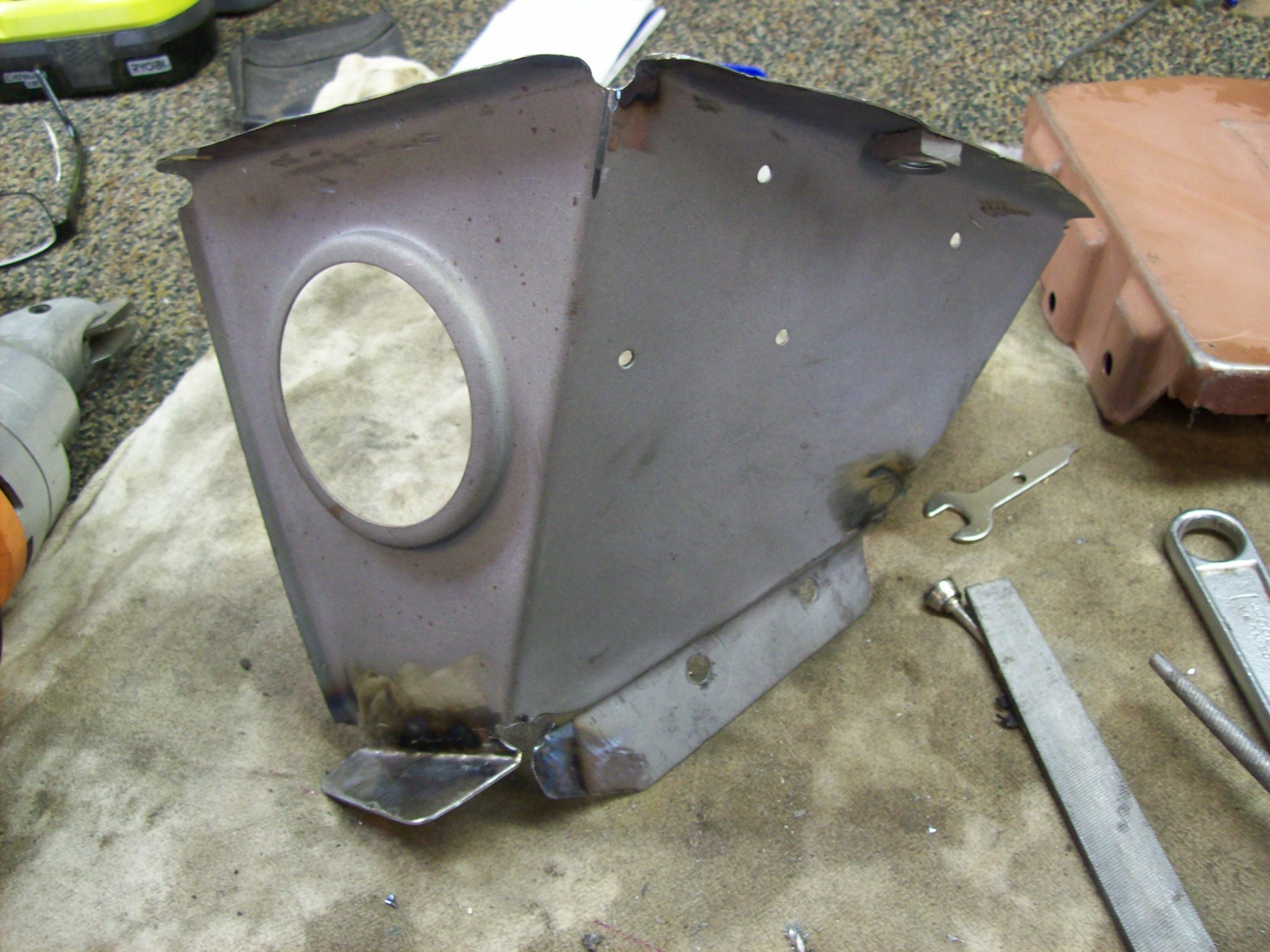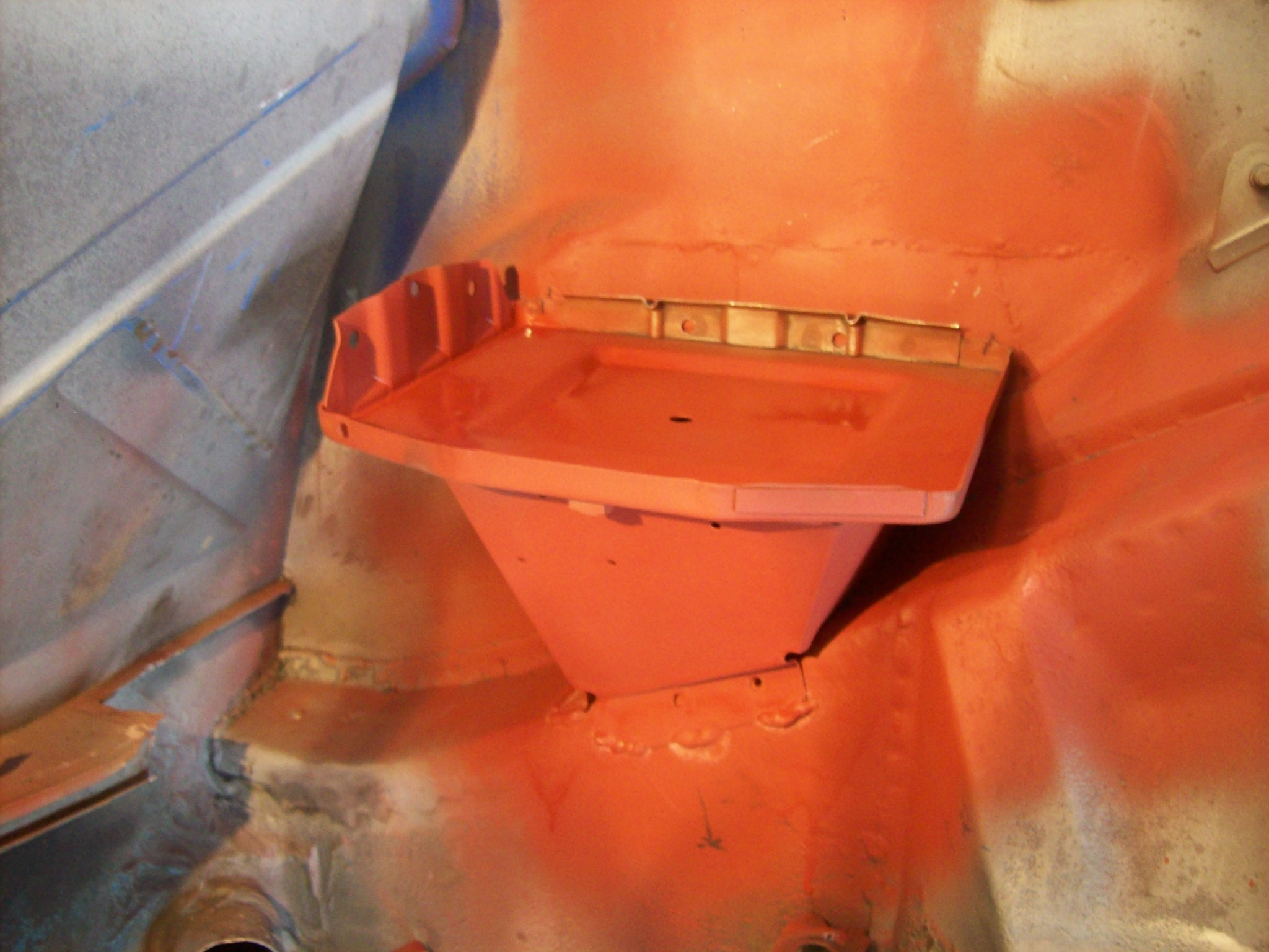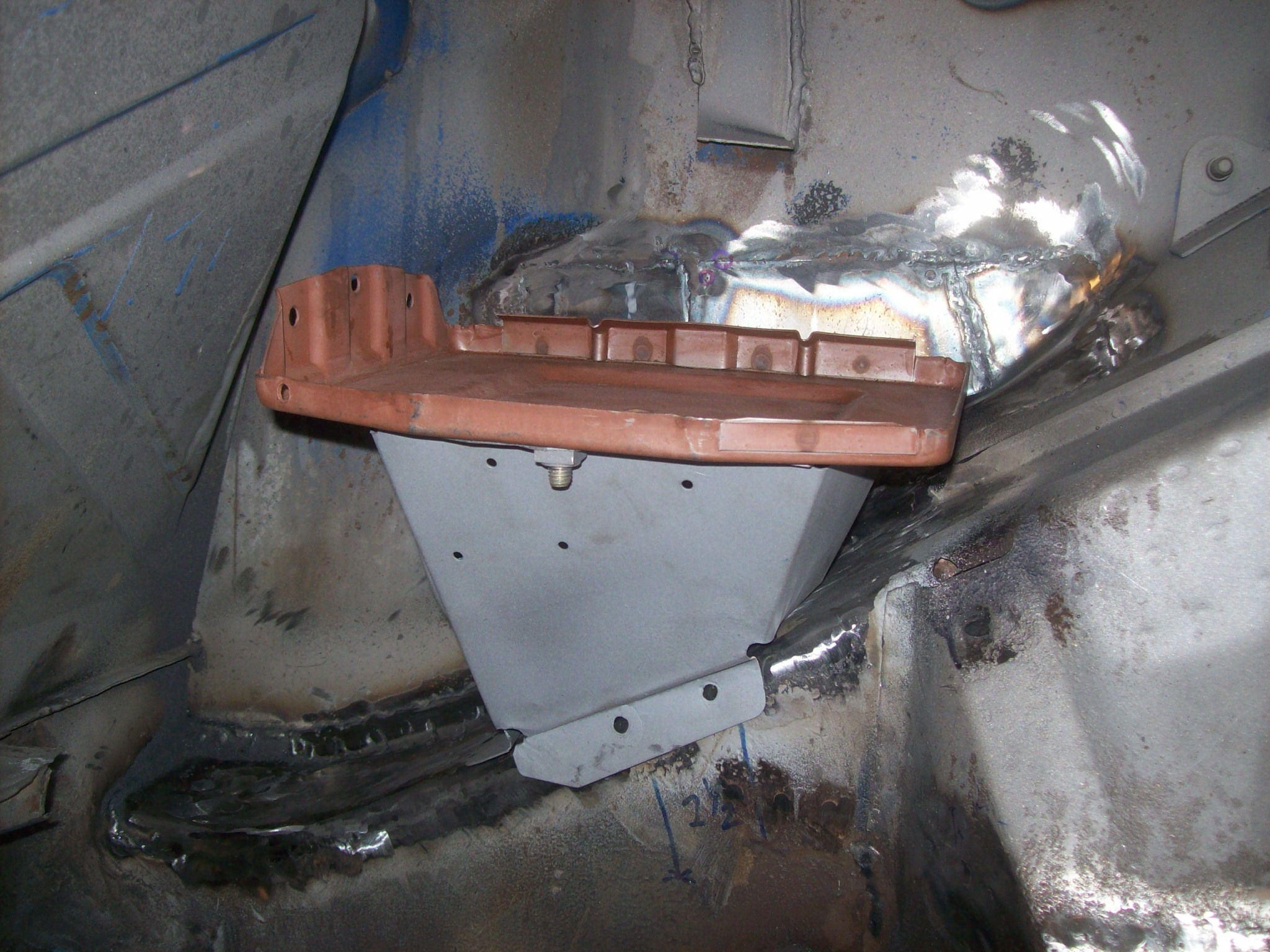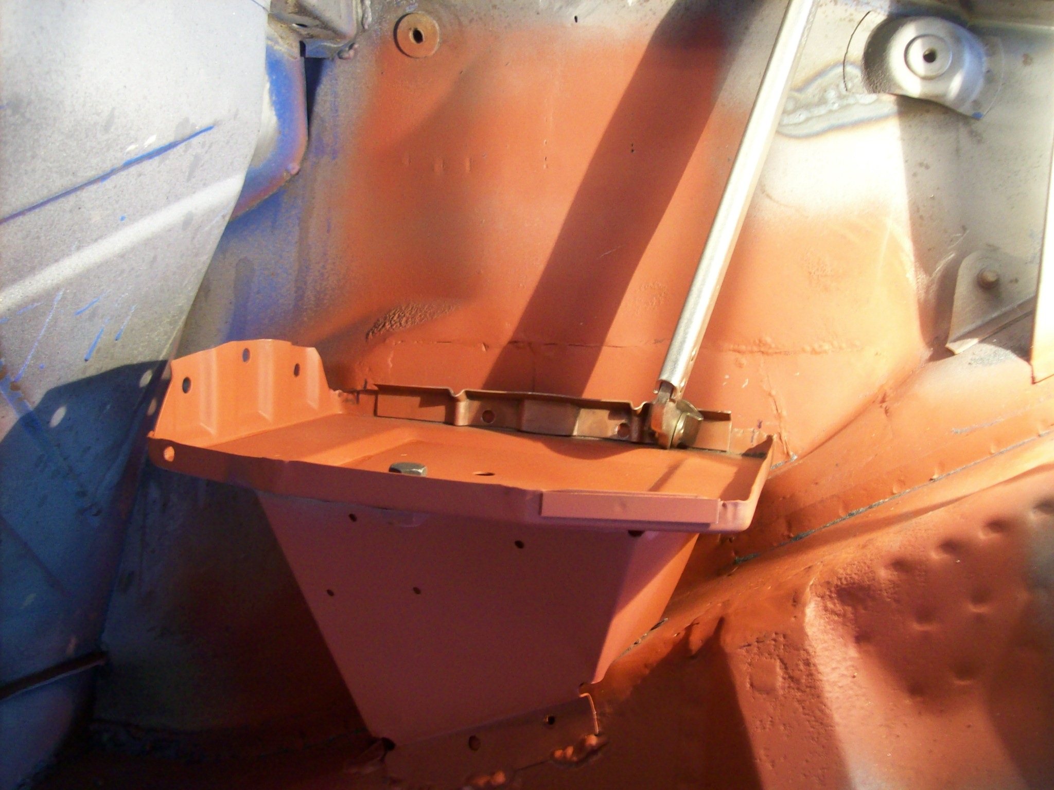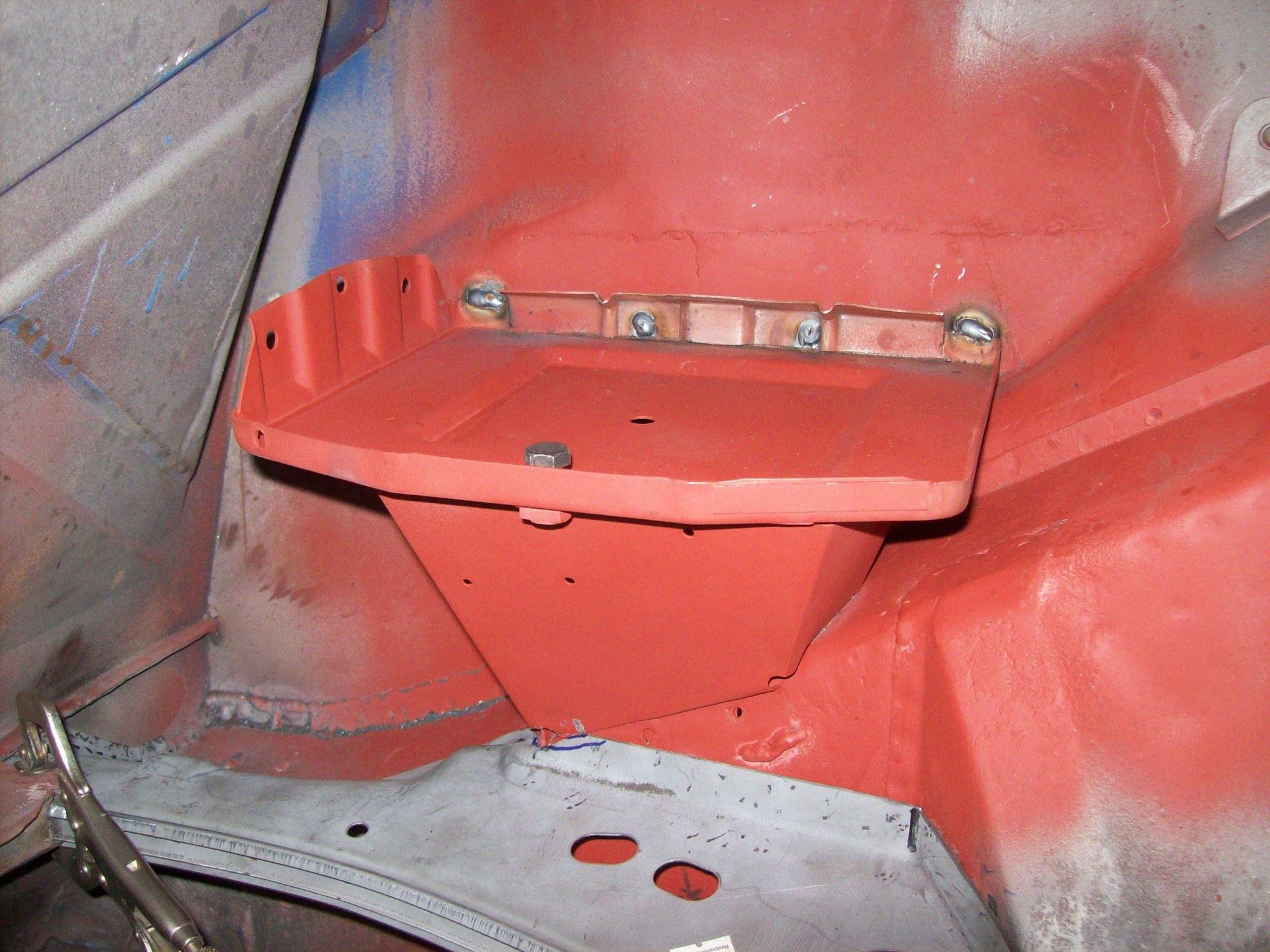 Right side engine shelf. Install looks basic. Thanks for the video link. When I removed my crusty shelf and battery box, I seem to remember the shelf had to come off first...meaning it was installed after the battery box support. But we saw how hacked up the whole battery box structure was. Does it matter which gets installed first or second? The support or the shelf. I had just planned to grind down the left corner bead weld on the support and lay the shelf over it.