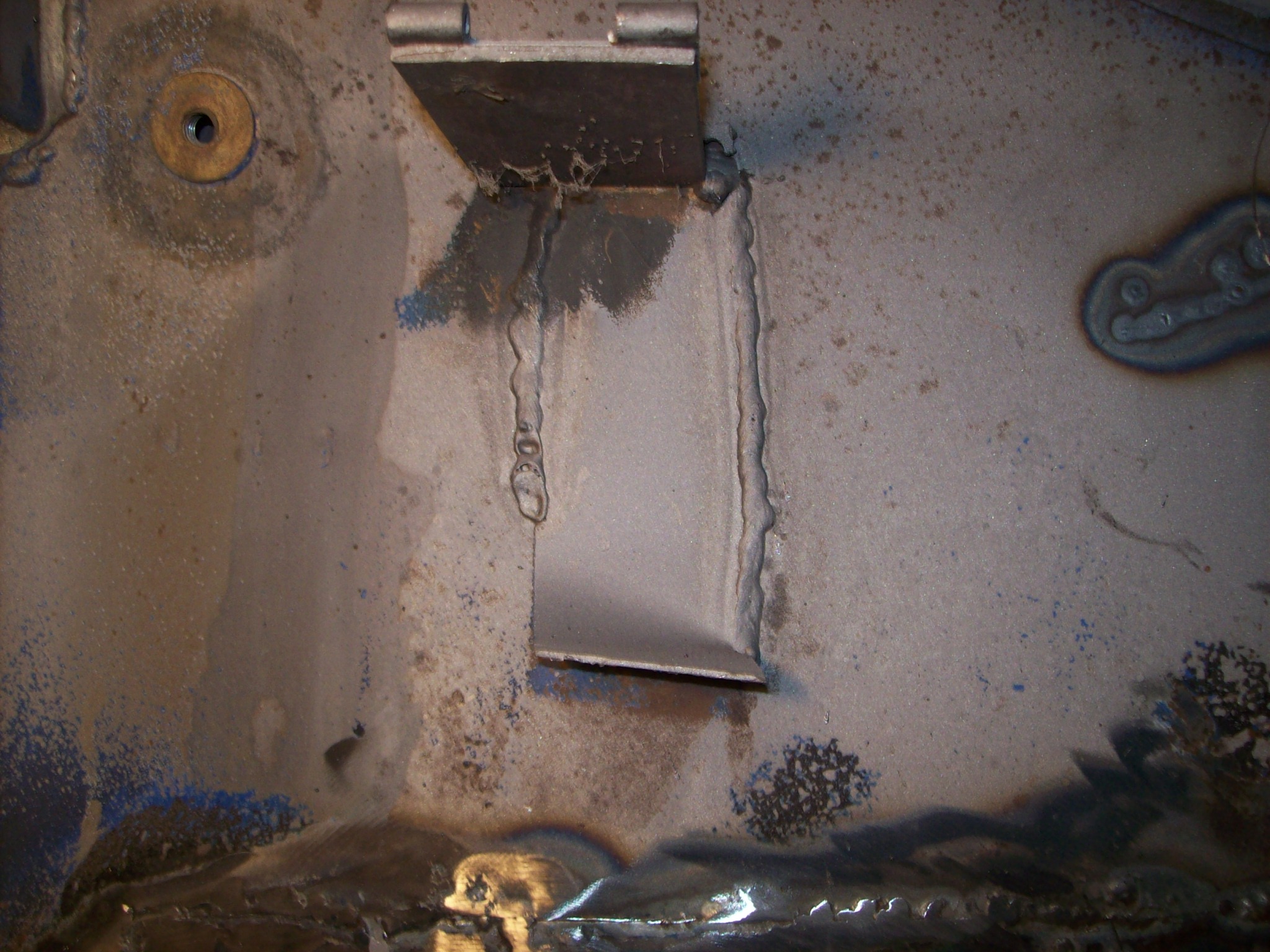 Thanks Luke! I actually already have the P315! Funny, it looks like the piece of steel that holds the floorboards down in a 911. I ordered all my steel from RD a while back, and guess I had the premonition to order that part! So I need to remove the cruelly welded after market hold-down before I do anything else. What a disaster. Yup, cut this part off and grind smooth.. Attached image(s)