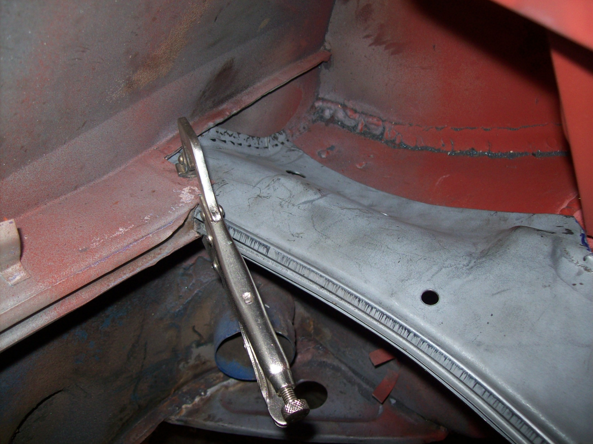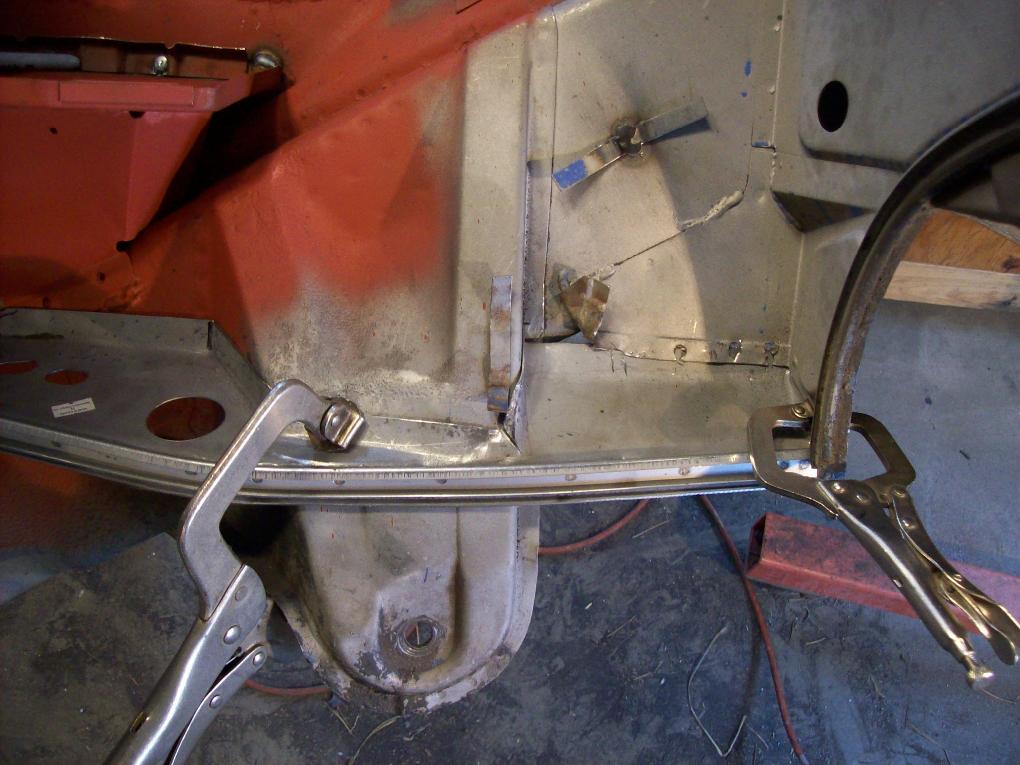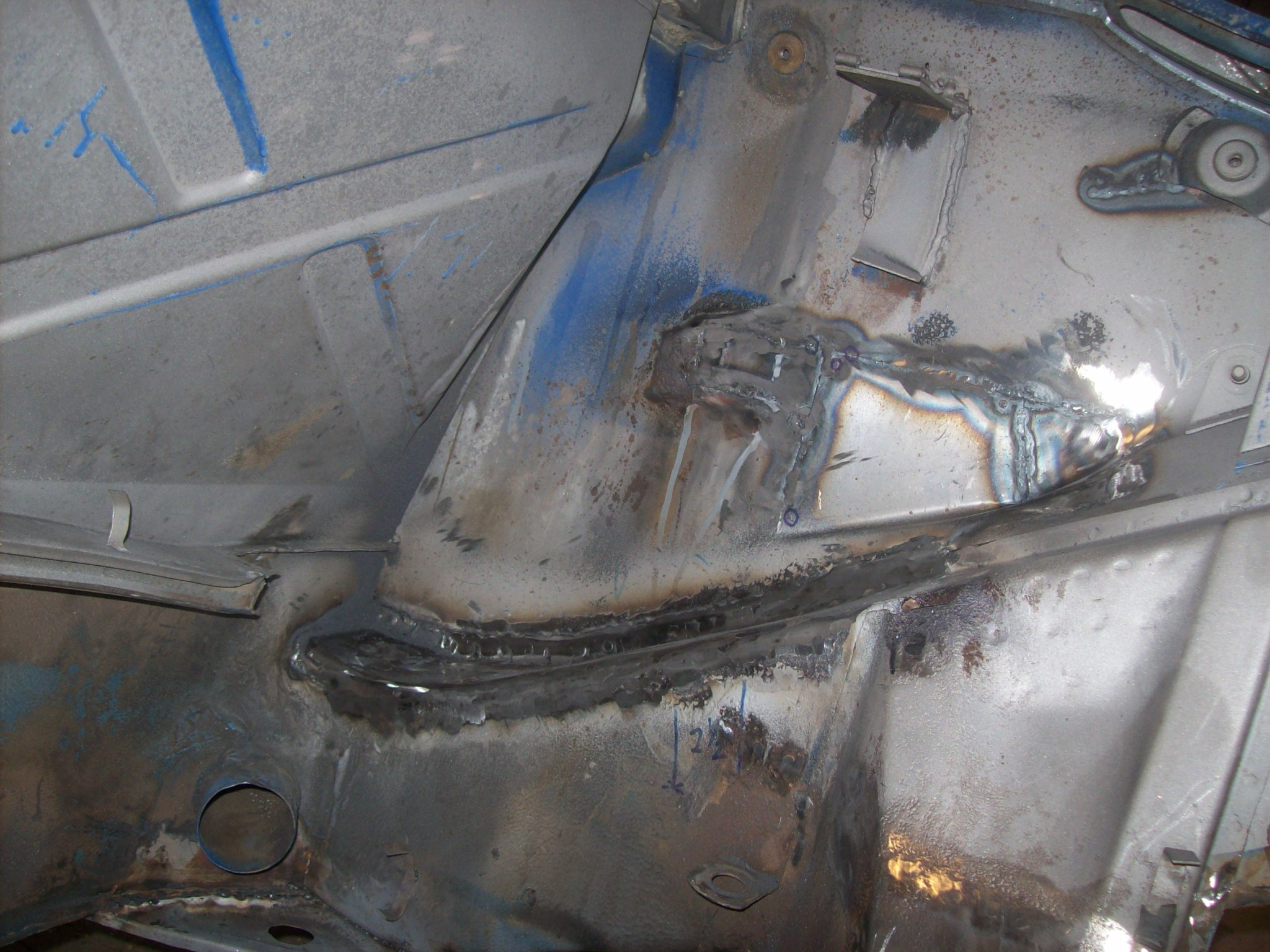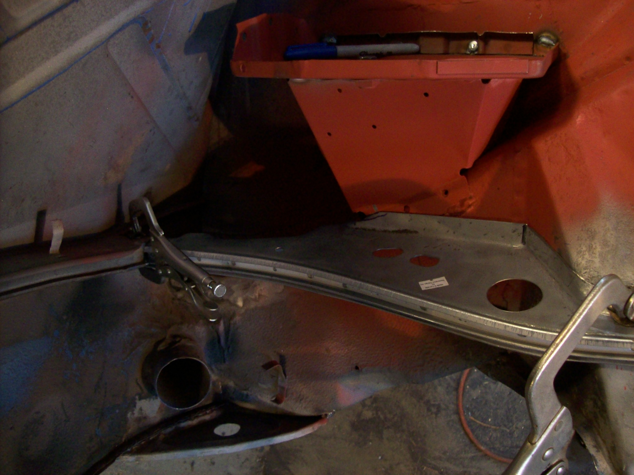 I want to get this engine compartment/hell hole done so that I can close up the quarter panel and finish the sail and lockpost repair. I am tired of this side of the car. |