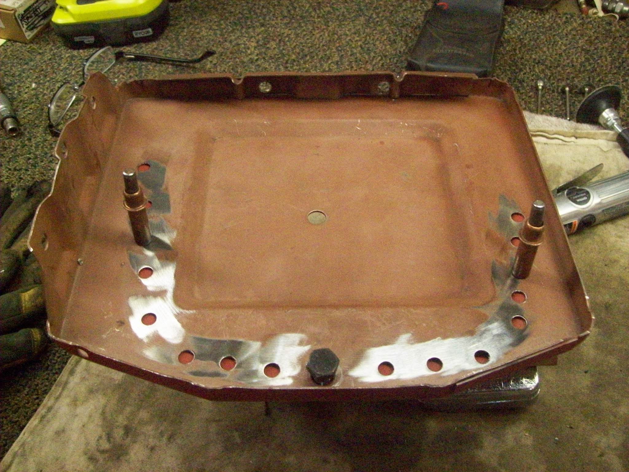 I am preparing the refurbished support to mate with the tray Ferg graciously handed me |