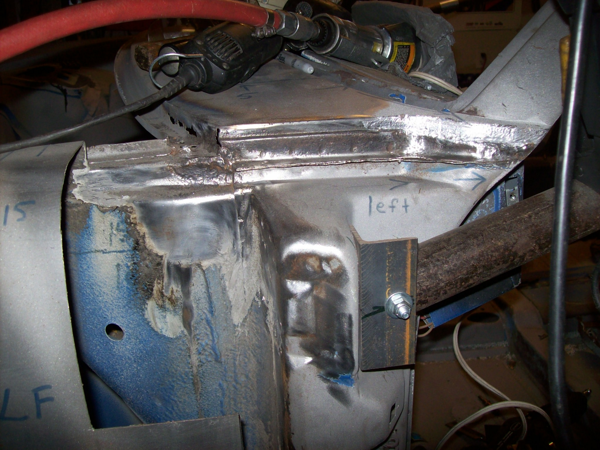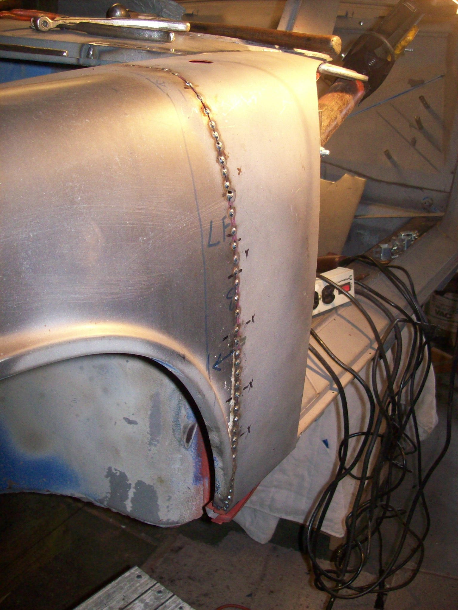 Welding and grinding plug welds...some ongoing progress. Working on shop addition for the next few weeks (weather depending). Need the space and a place for a lift.
