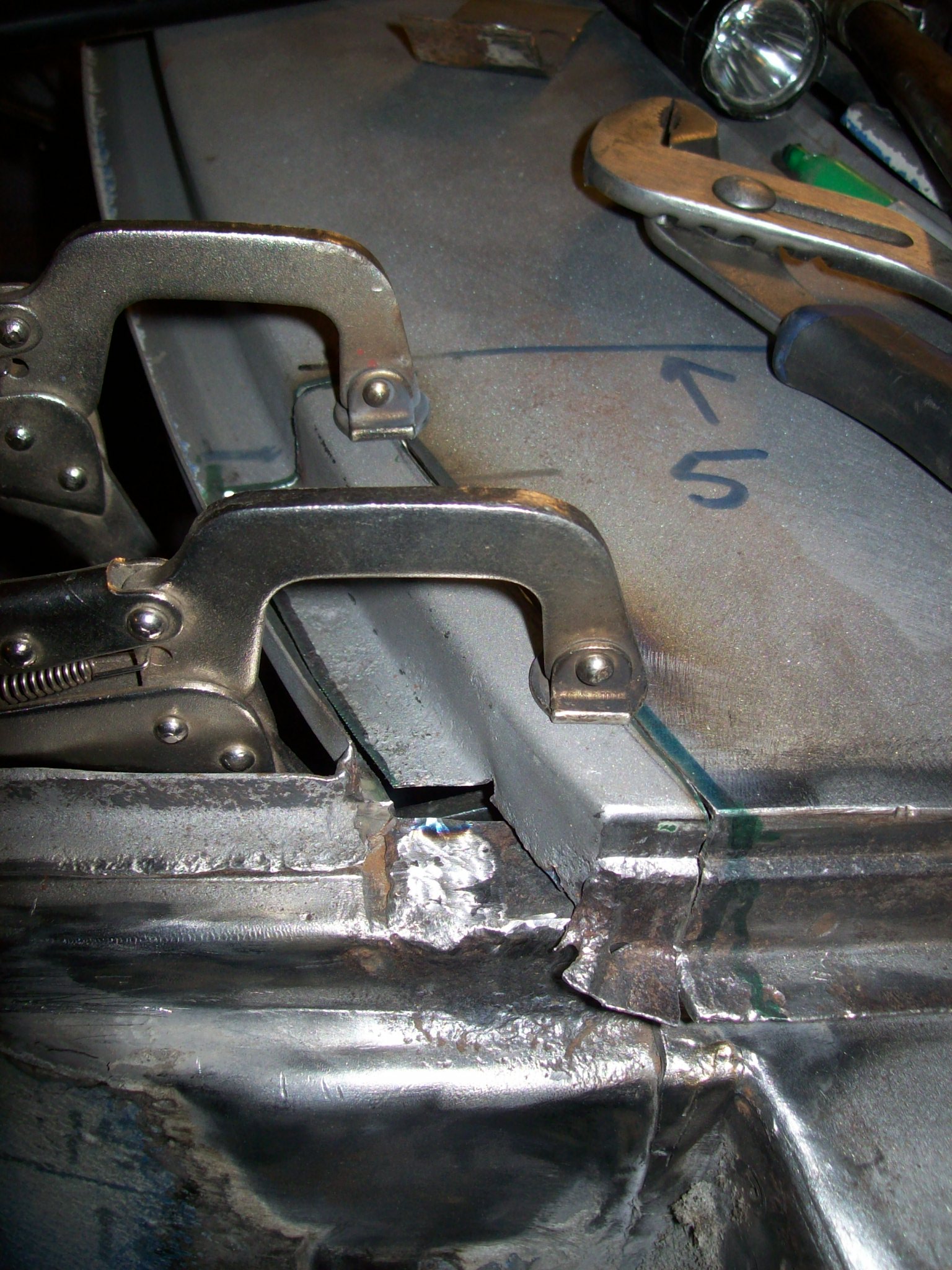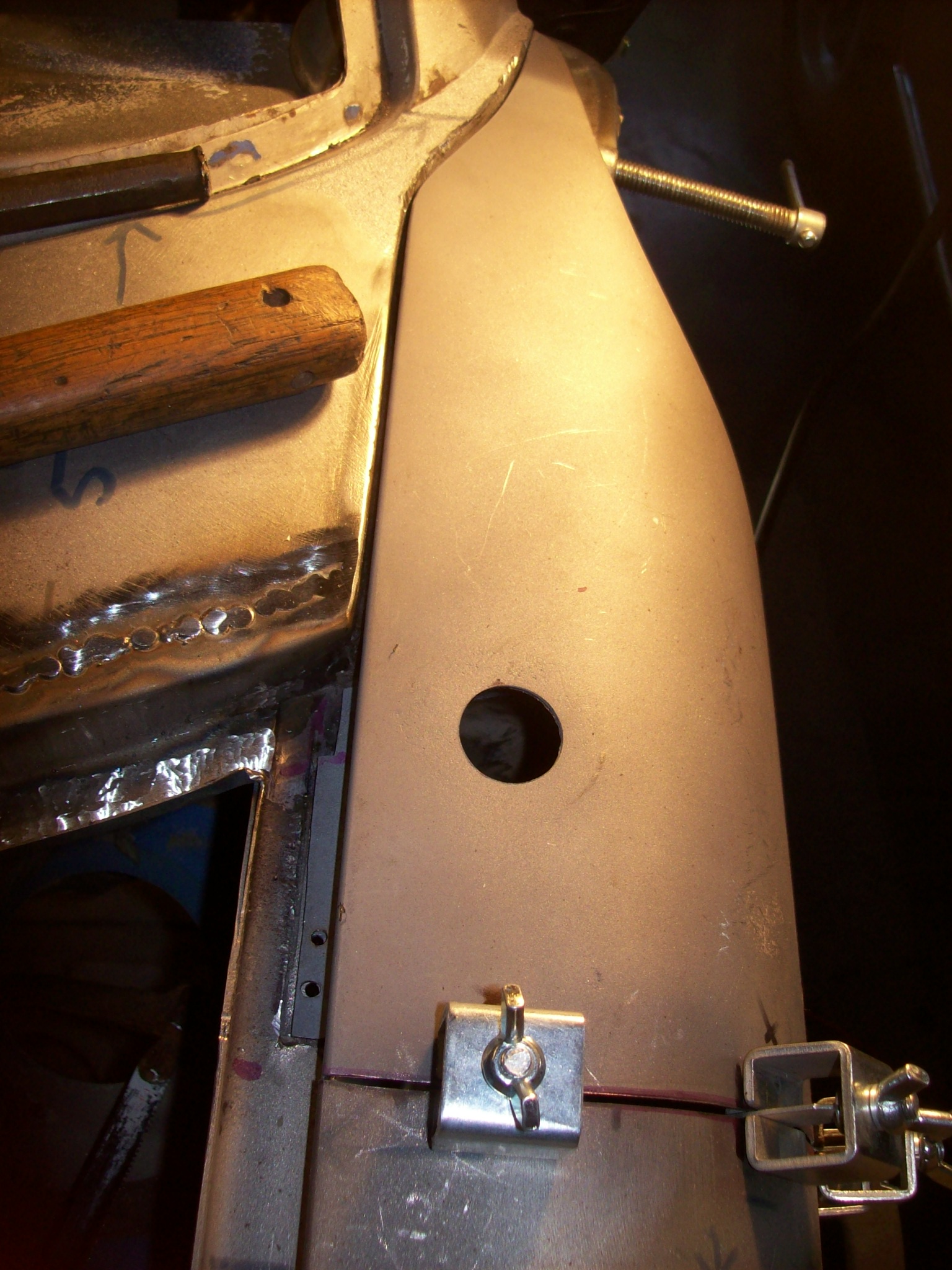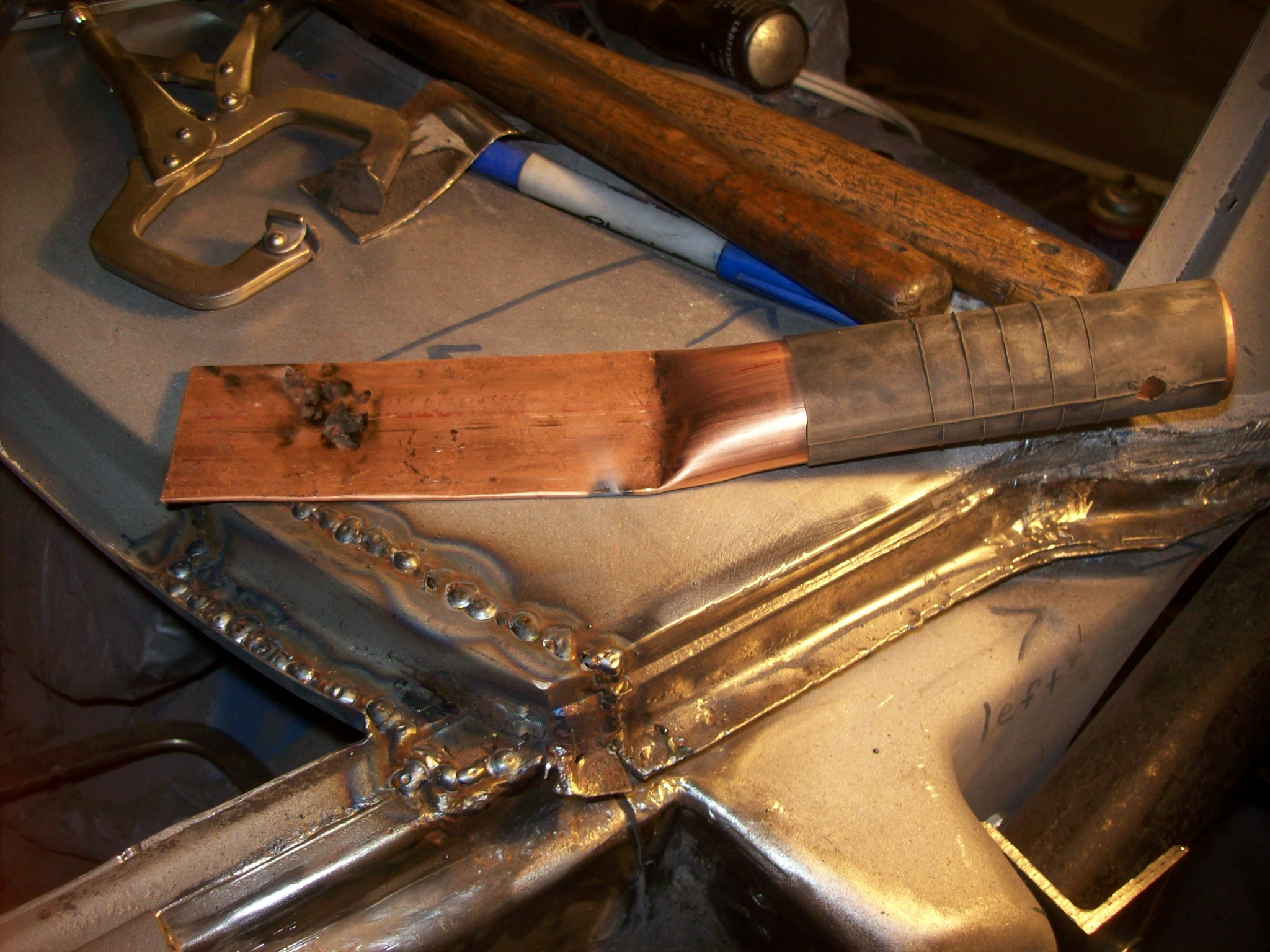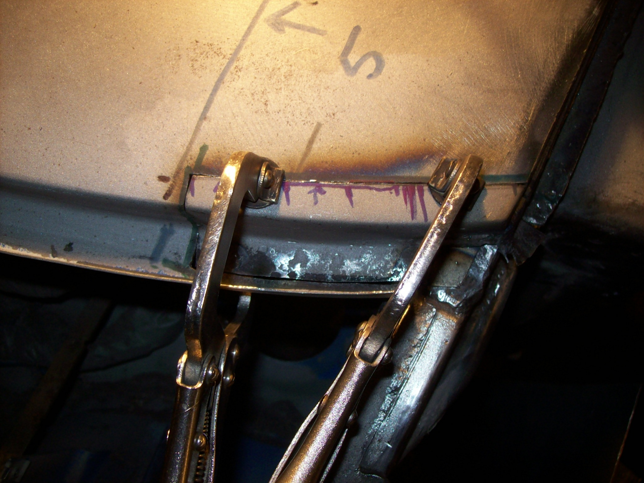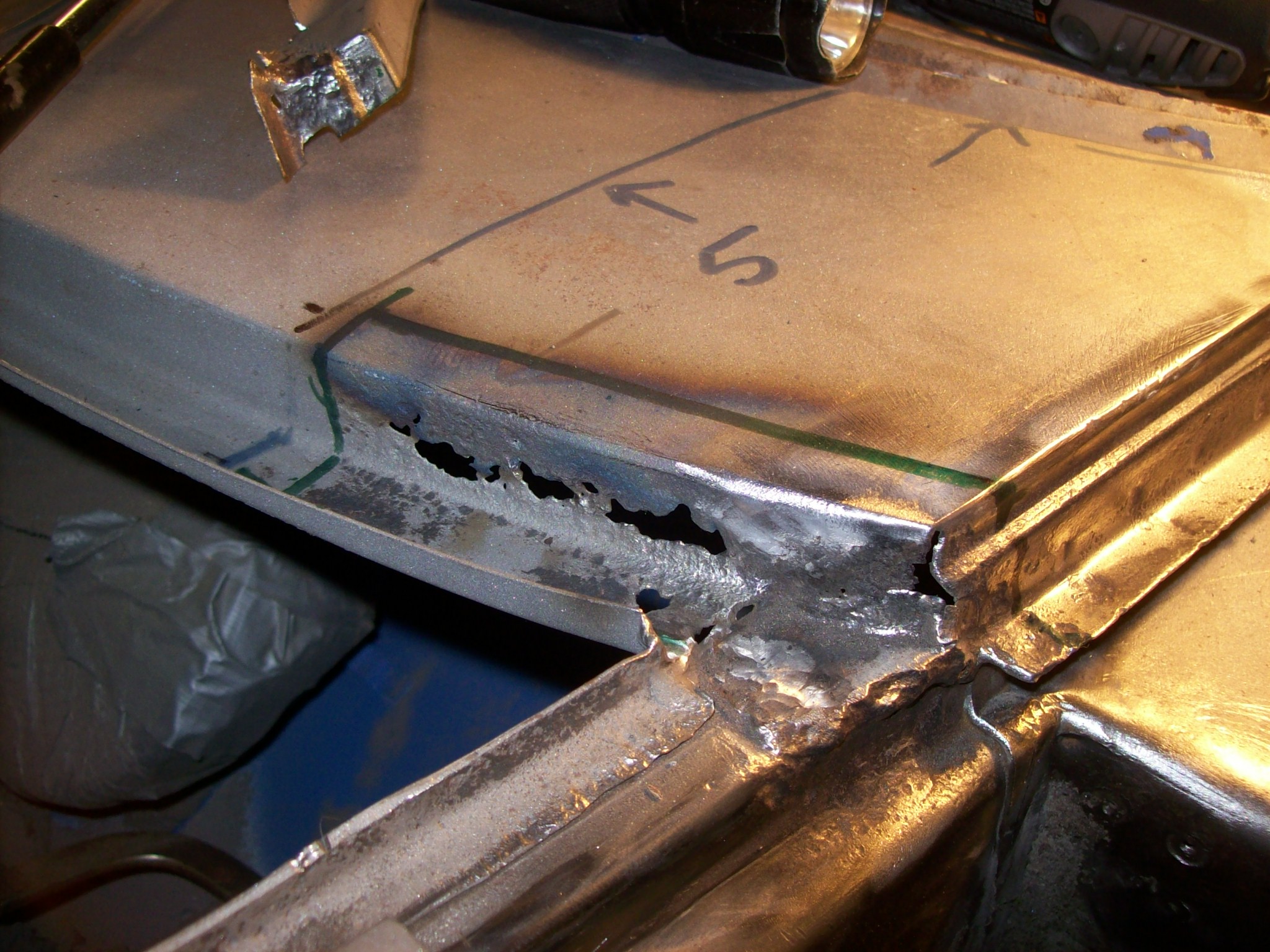 As far as the seam goes, a piece of sheet metal should work as a form or a dam. Just leave enough space to slip a piece of 36 grit sand paper in there to final shape. The one drawback with using this Archaic process is it burns the primer and any paint off the back side of the panel. If you have no access to retreat these areas you are opening the car up to rust forming from the inside out. |