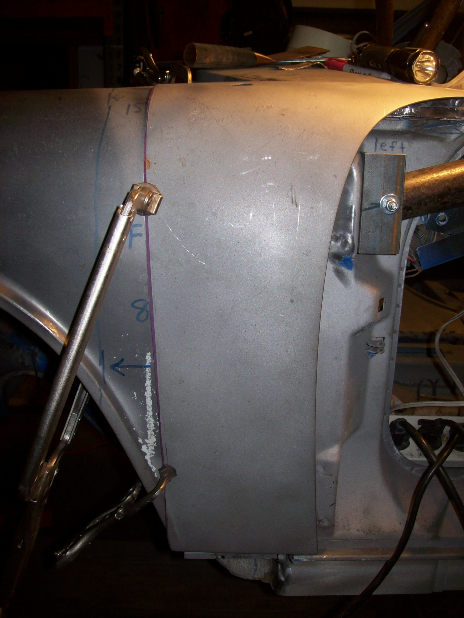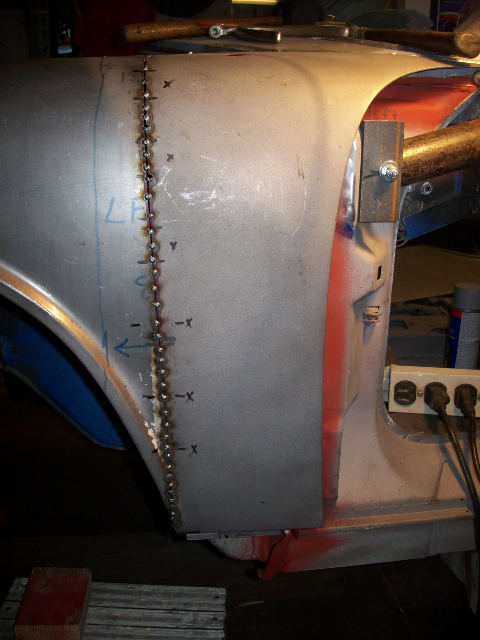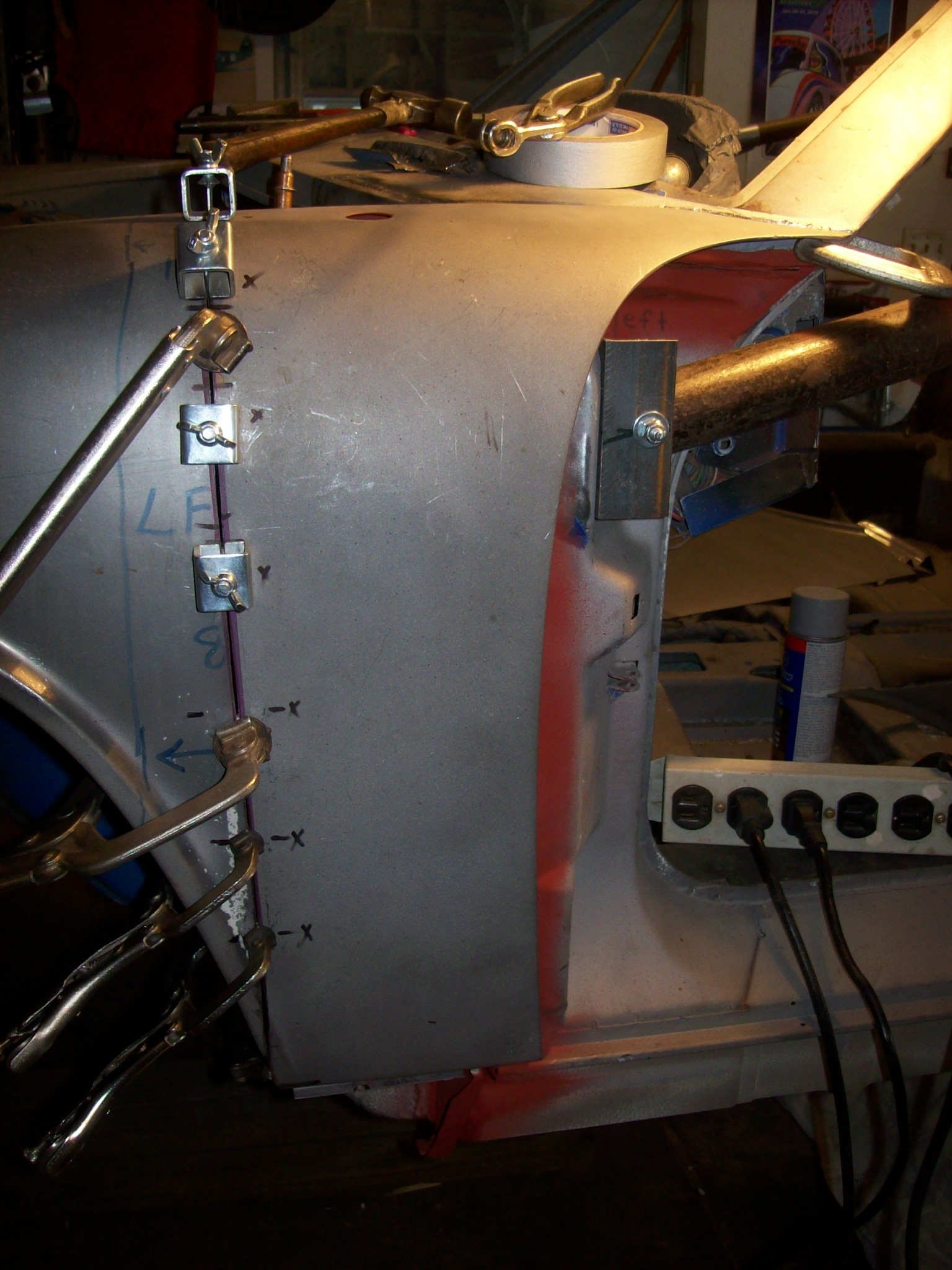 So a couple of the 914 "grand masters" came up today to see if I have totally screwed up the splice of the driver side aft fender. Word was that it looked ok to close it up. I have measured and measured...comparing the driver side opening with the passenger side.