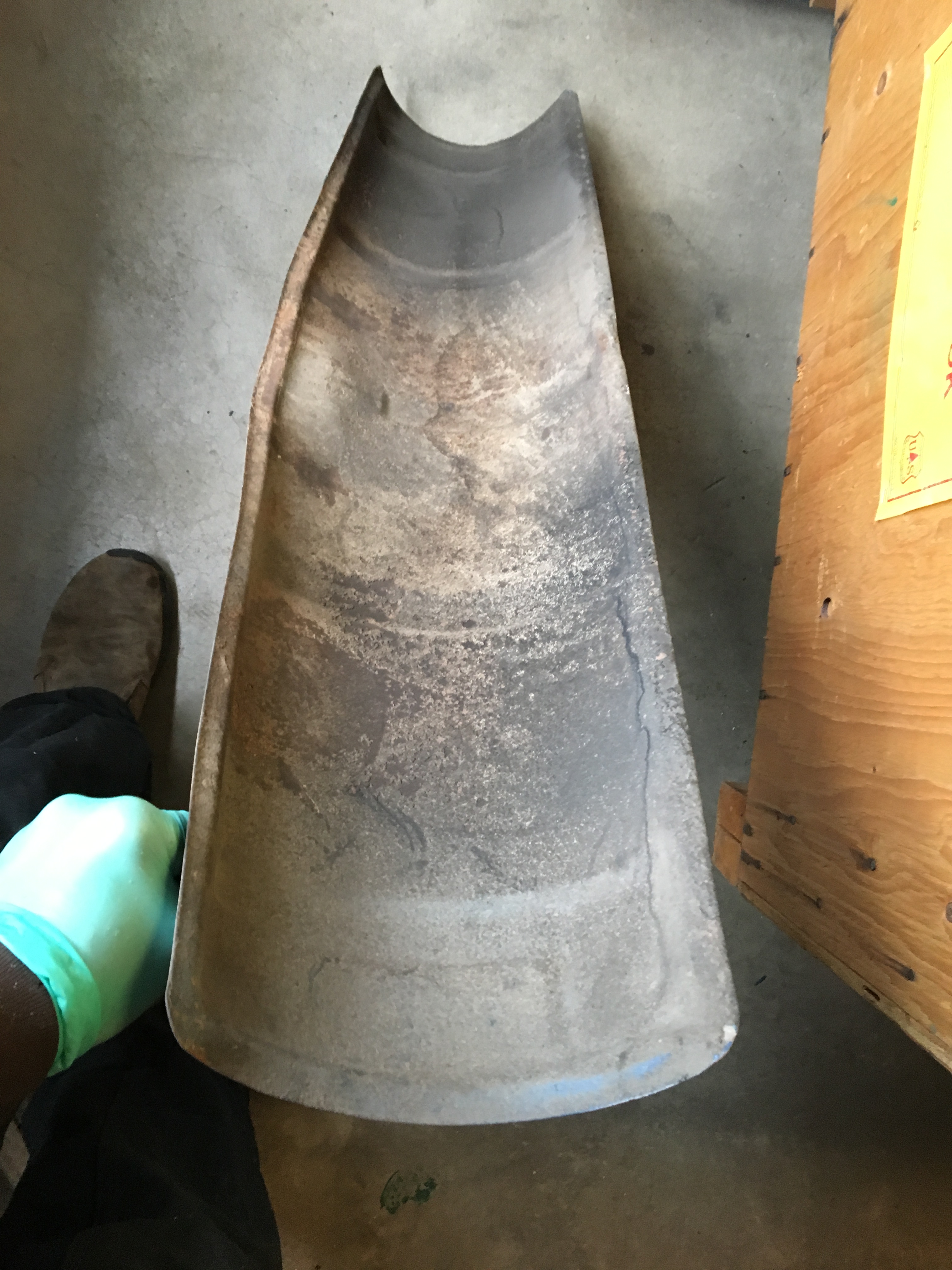 Tidying up the chassis for a hand-off. The heat shield for the muffler was impeding
