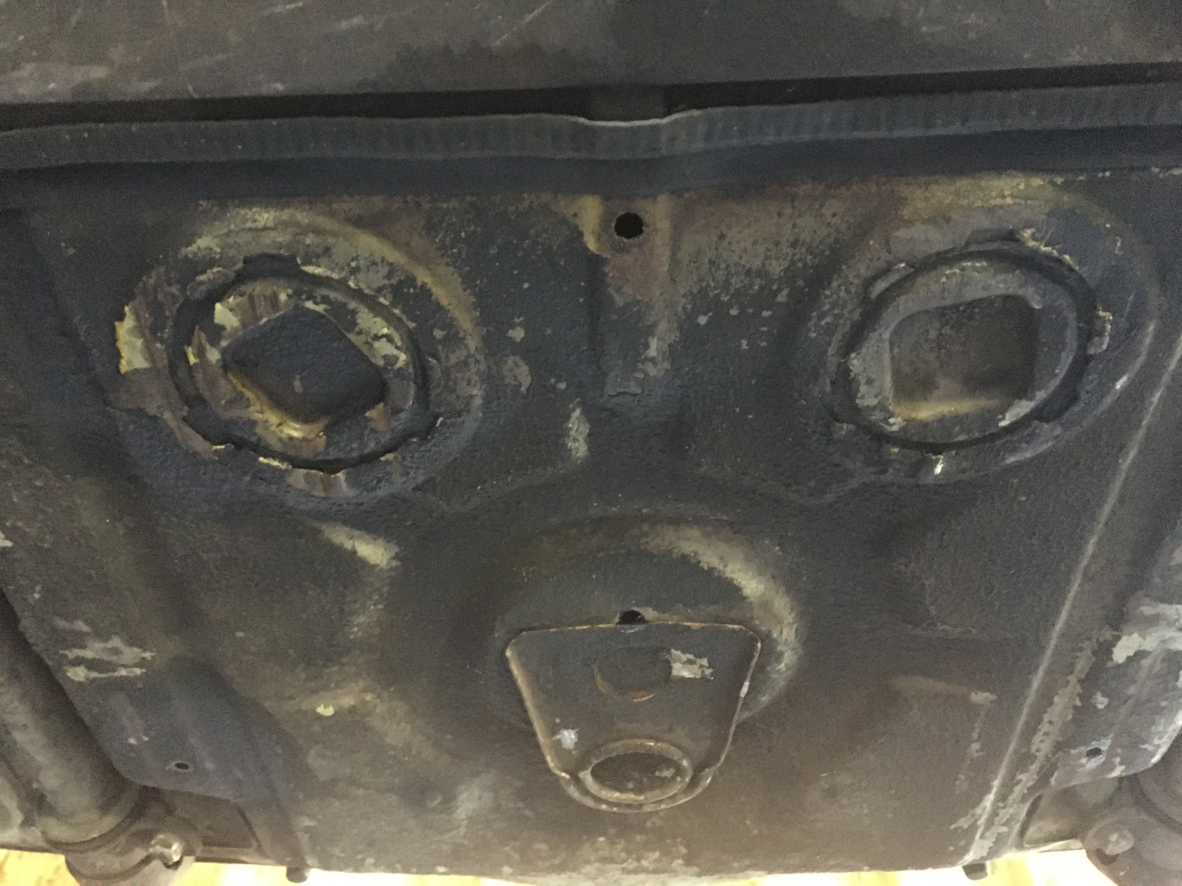 and I was able to fabricate the "hook". My new short term dilemma is sourcing the two drain plugs/plates for the front trunk. Per Porsche these are NLA so my only option is to harvest these from another chassis. My understanding is that once the old seam sealer is wire-brushed off...they can be tapped out easily. I will post in the classified section a WTB, but in the interim if anyone has these, please send me a PM. The picture is of my son's 72 1.7, and I'm pretty sure he doesn't want me to steal these from his car. (IMG:style_emoticons/default/dry.gif) |
