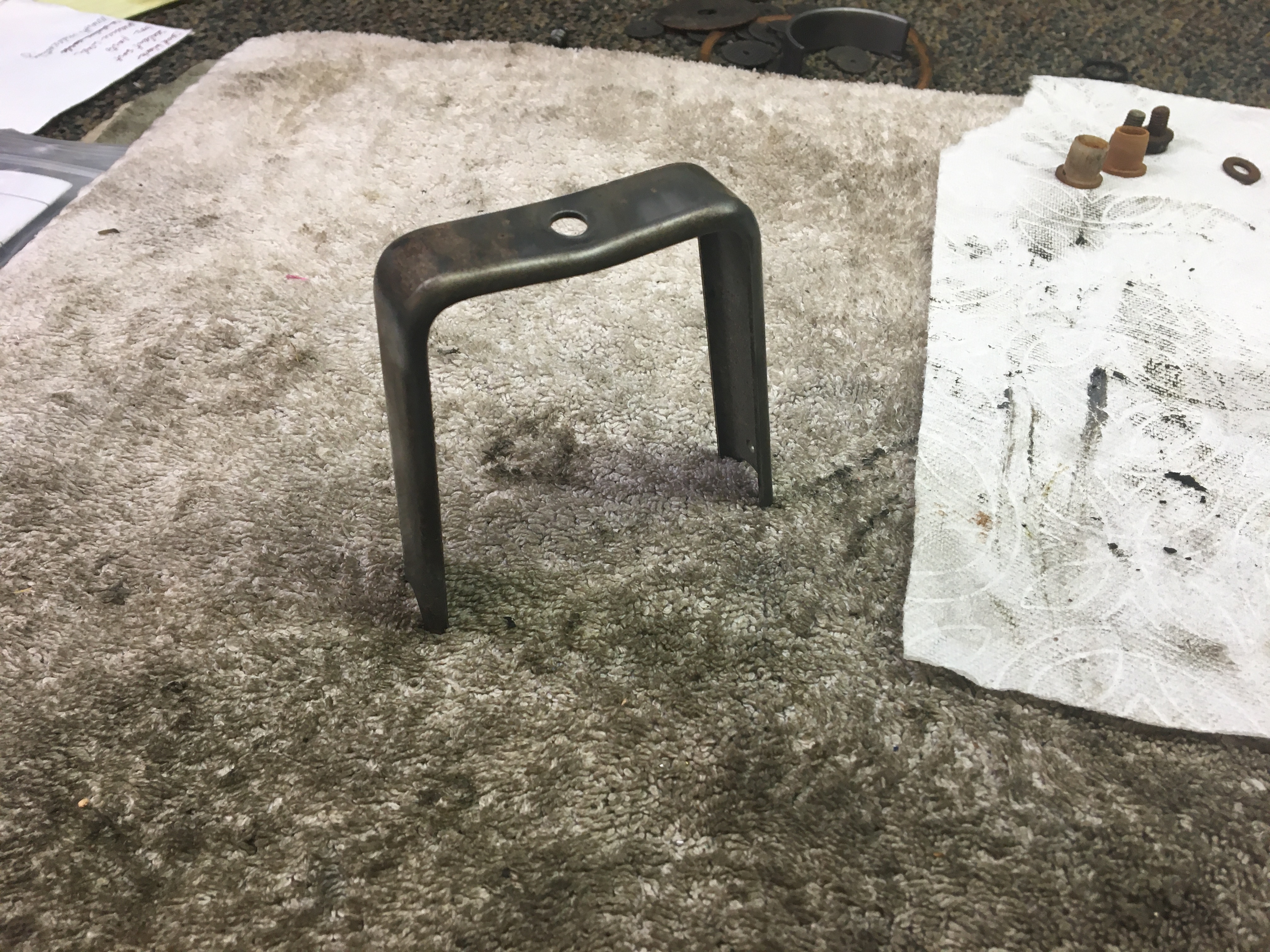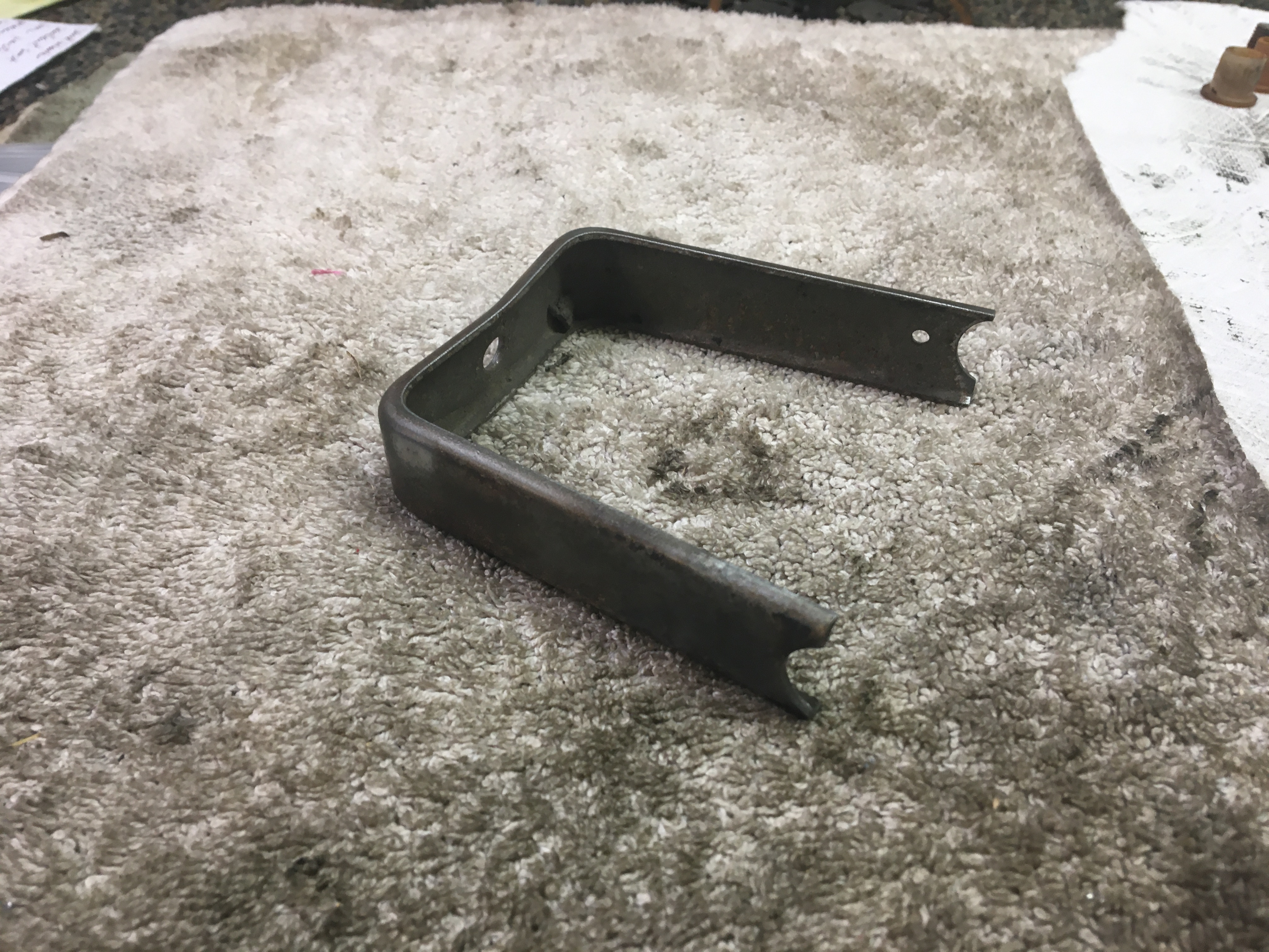 Making sure my painter has all my "bits" and starting a pile of parts for refinishing. Curious about clear vs yellow zinc...my internal door latches are obviously yellow, but it looks as though my lid and trunk latches are clear? Which is correct? Sure would be easier if all the hardware was either clear or yellow. And in one of my boxes I ran across this parts which I cannot identify (looks like it was refinished yellow). On a 911 it reminds me of a bracket that supports the fresh air vent. Can someone id this for me please?