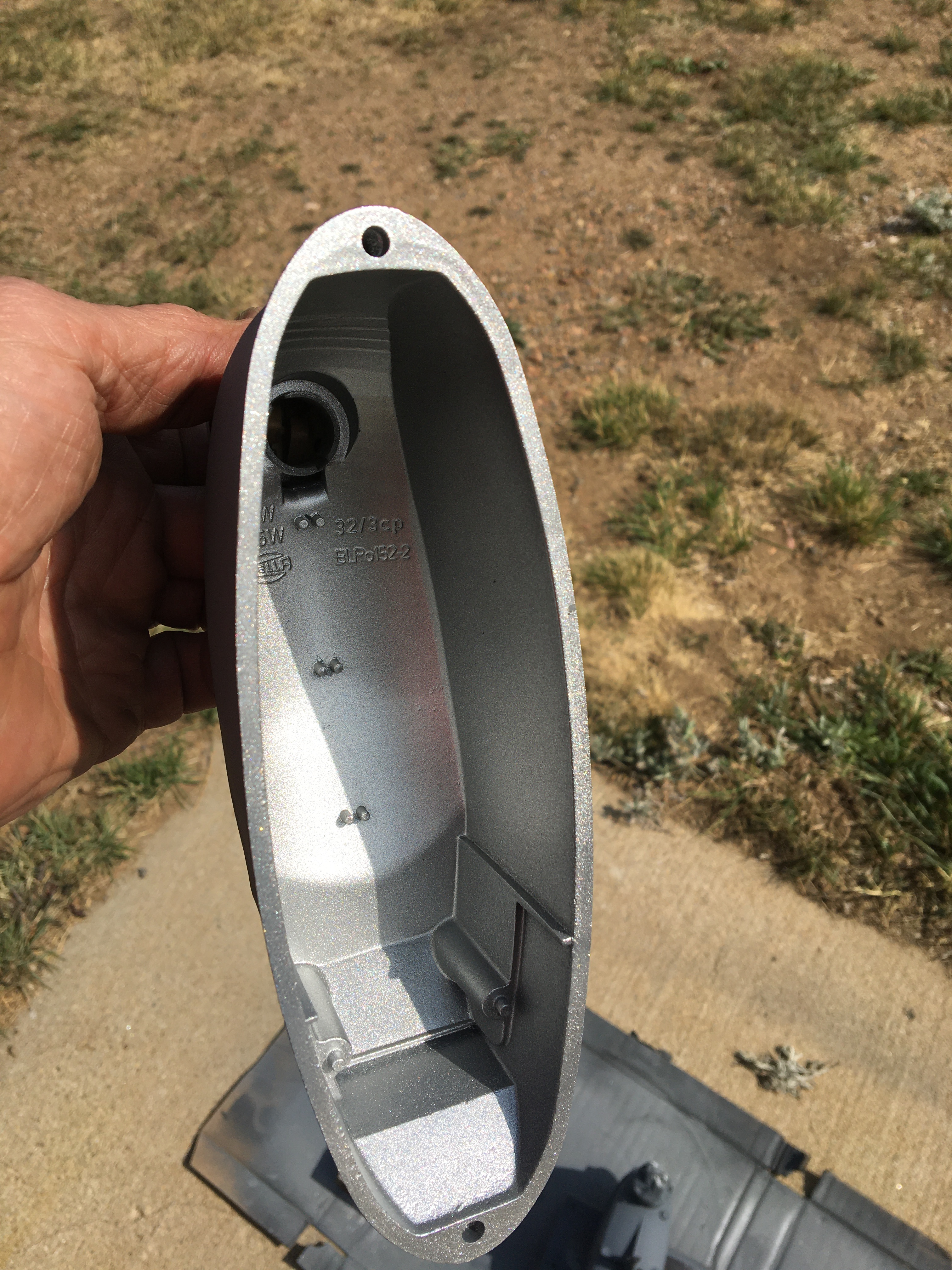 So is the gas tank a satin black or semigloss? And the sheath for the front trunk release...polyethylene or nylon? Mine shattered in several places.