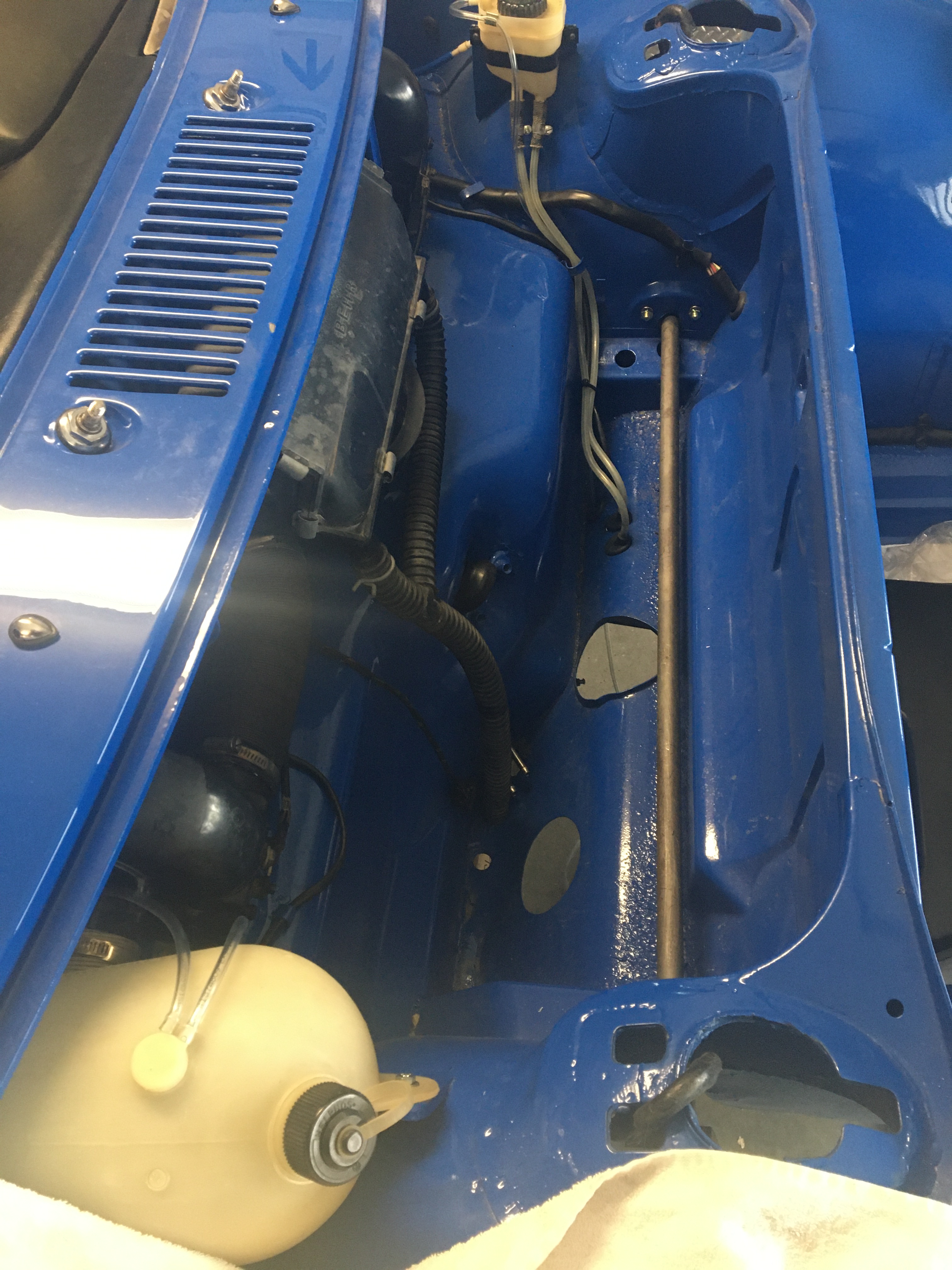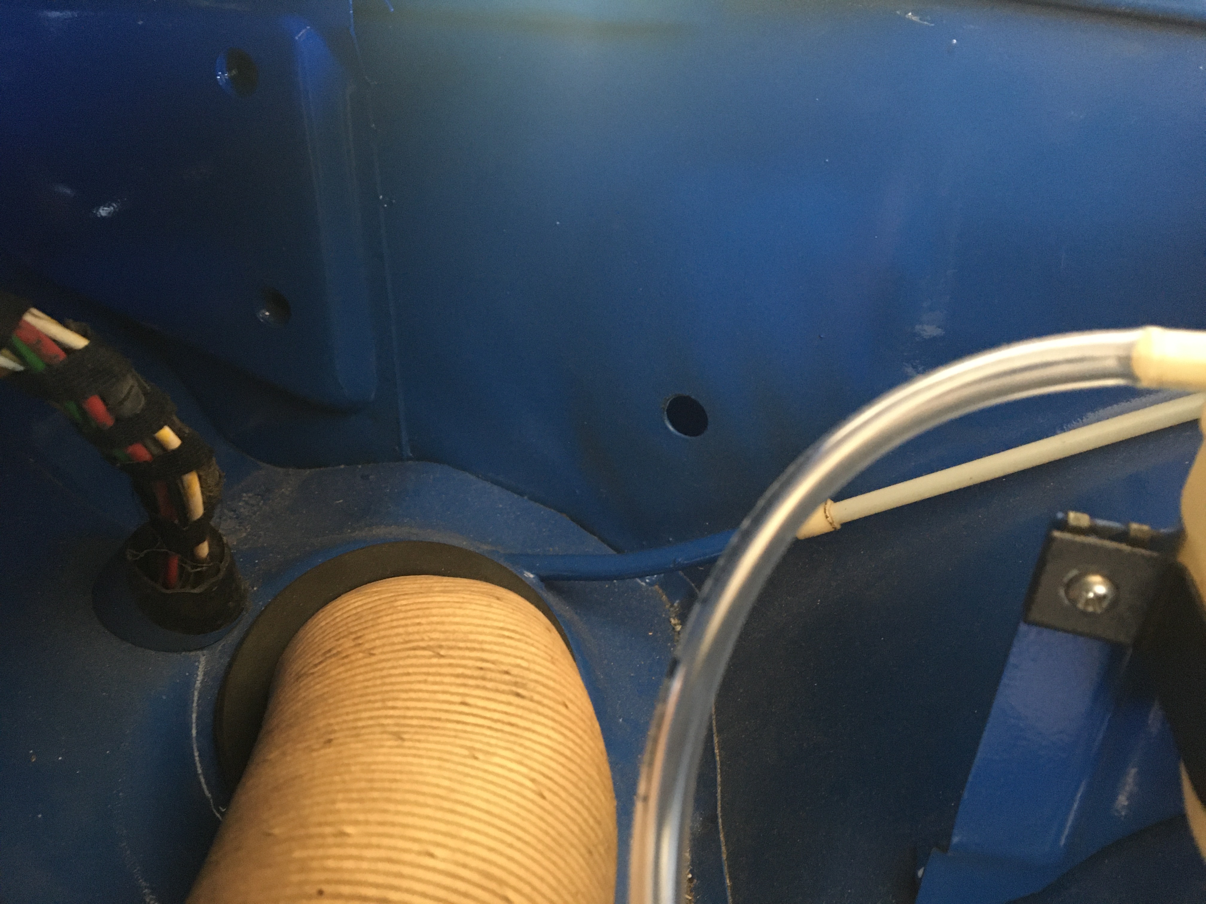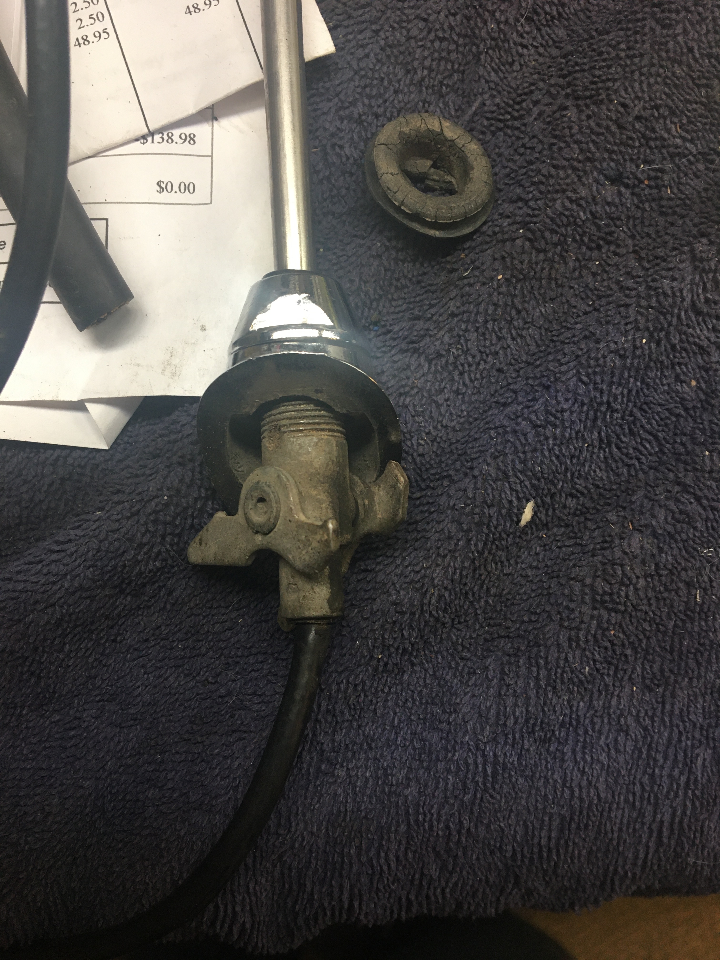 I am trying to get everything ready to install the gas tank for good. Once the gas tank is in place...nothing else is accessible. I don't plan on having a radio in the car, but the antenna will be installed and the cable will be routed to where a radio "might" be in the future. So I have the antenna cleaned up and ready to install, but I don't want it in the way of other things...hood, windshield, wiper blade etc. Does the cable disconnect from the antenna itself? I need to get the cable installed...but want to hold off on the antenna. It doesn't look like it disconnects here... |
