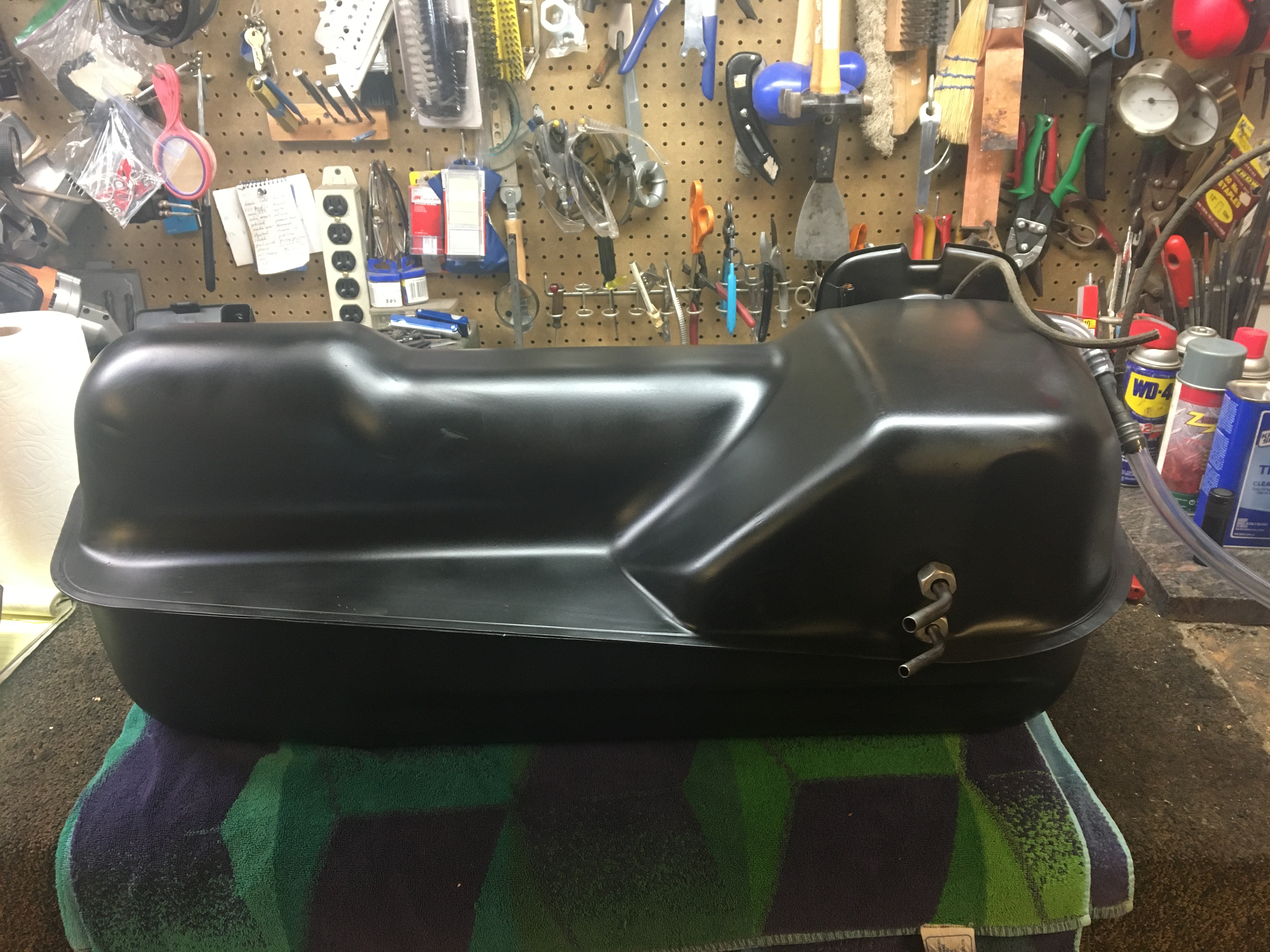 Almost ready to install the gas tank. New fuel lines, screen and clamps. I purposely am using high pressure line vs the cloth woven rubber low pressure lines. But I have a question...when we installed the gas tank in my son's 1.7, the access hole made installing and clamping the fuel lines difficult, and the line ended up with a pinch (which we had to remedy) making a tight turn from the tank fittings to the stainless new fuel lines. I have heard that a way to avaoid that hassle is to install longer fuel lines that will coil under the tank when installed. I measured the length needed and it looks like 30-32 inches would allow me to comfortably install the lines first on the tunnel fuel lines (from above), then with the tank supported, bring those lines up and install on the tank (easy access), and then sit the tank in place with the lines coiling up underneath. This sounds like the way to go. And in the event I need to un-install the tank, I just lift it out with the lines not needing to be disconnected through the access hole. Thoughts...suggestions?