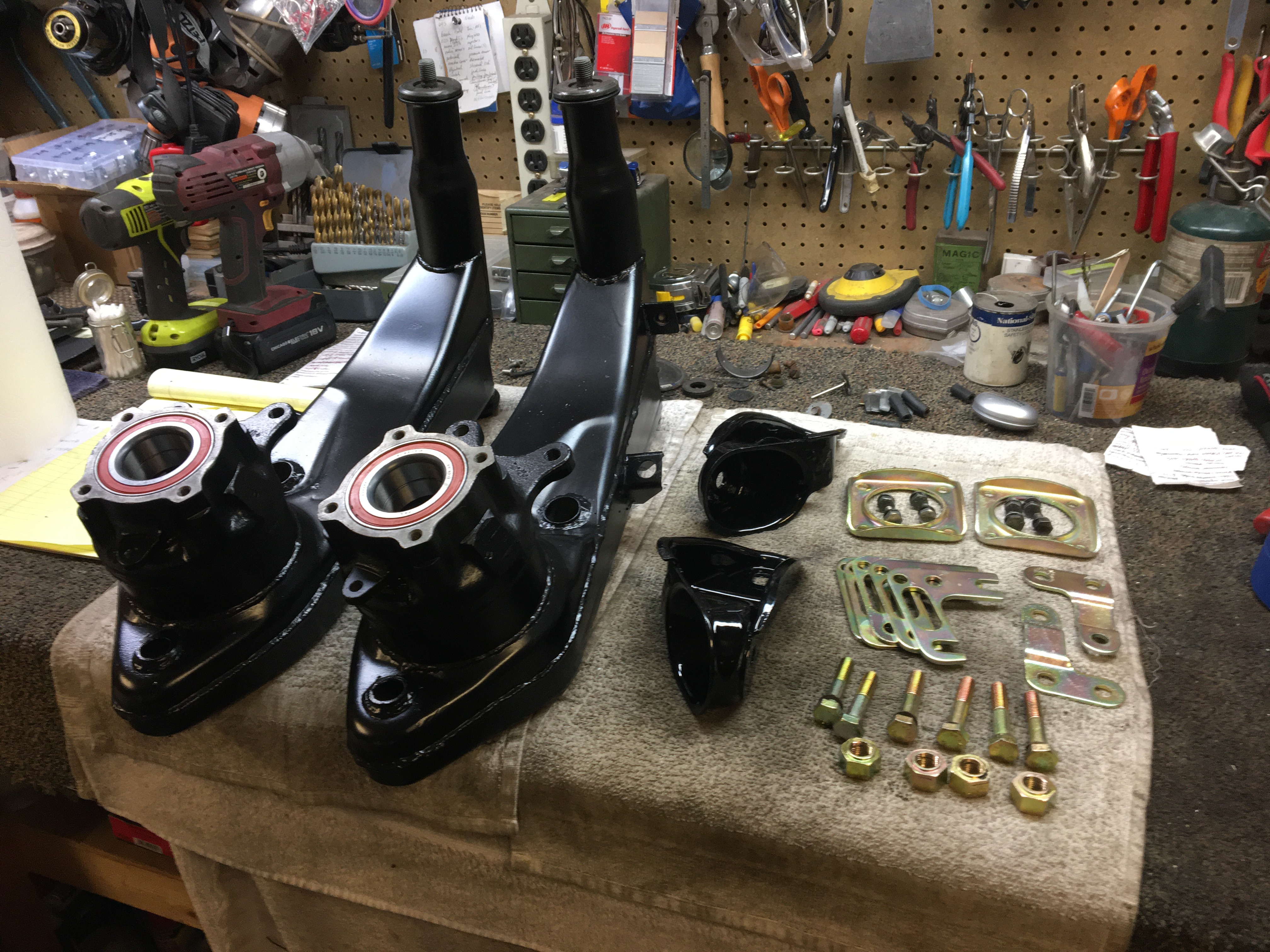 Ran into some trouble with the rear axles. Inner CVs were nasty but acceptable. Outer rubber boots were solid but the CVs were filled with crud...a mix of dirt and sand that made me wonder how they could have turned. Once everything was de-cruded, the inner race on the left side outer was badly pitted. I started a new thread on options and found that early 911 axles have the same diameter and splines as the 914-6. I had an extra 911 axle and stole the inner race from the CV. I am waiting for new boots and clamps to re-assemble.