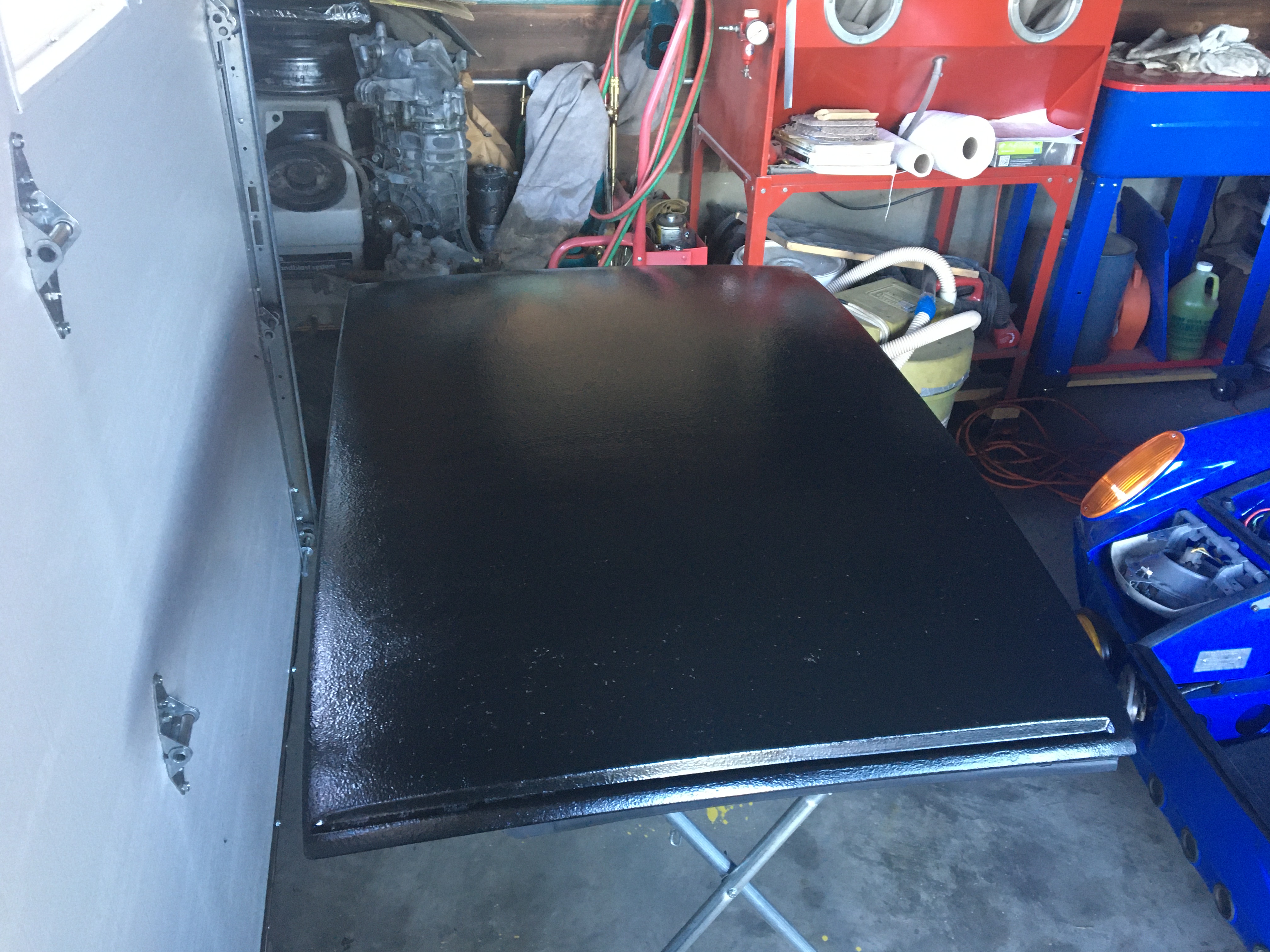 [/quote] Looks good Lars. Do you have the rear trunk spring tool ? This tool will help make the install easier and safer. https://914rubber.com/rear-trunk-spring-pre...-relieving-tool Won't be too long.... (IMG:style_emoticons/default/driving.gif) [/quote] I don't have the tool. When re-installing the springs in my son's car we realized that that tool works to un-hook the springs from the rollers when everything is installed in the car. Nothing was installed in the car so we were able to use a deep 1/2 drive socket and ratchet and four arms to tension the springs onto the rollers. It was sketchy but nobody died. We'll probably do the same for my springs. Wait till you see the tool I used to stretch and secure the hood springs...it was perfect, and only used one arm! Oh yeah...not driving too soon as the original 2.0 is pickled on the shelf. The 2.4 S engine gets built this fall. (IMG:style_emoticons/default/w00t.gif) |