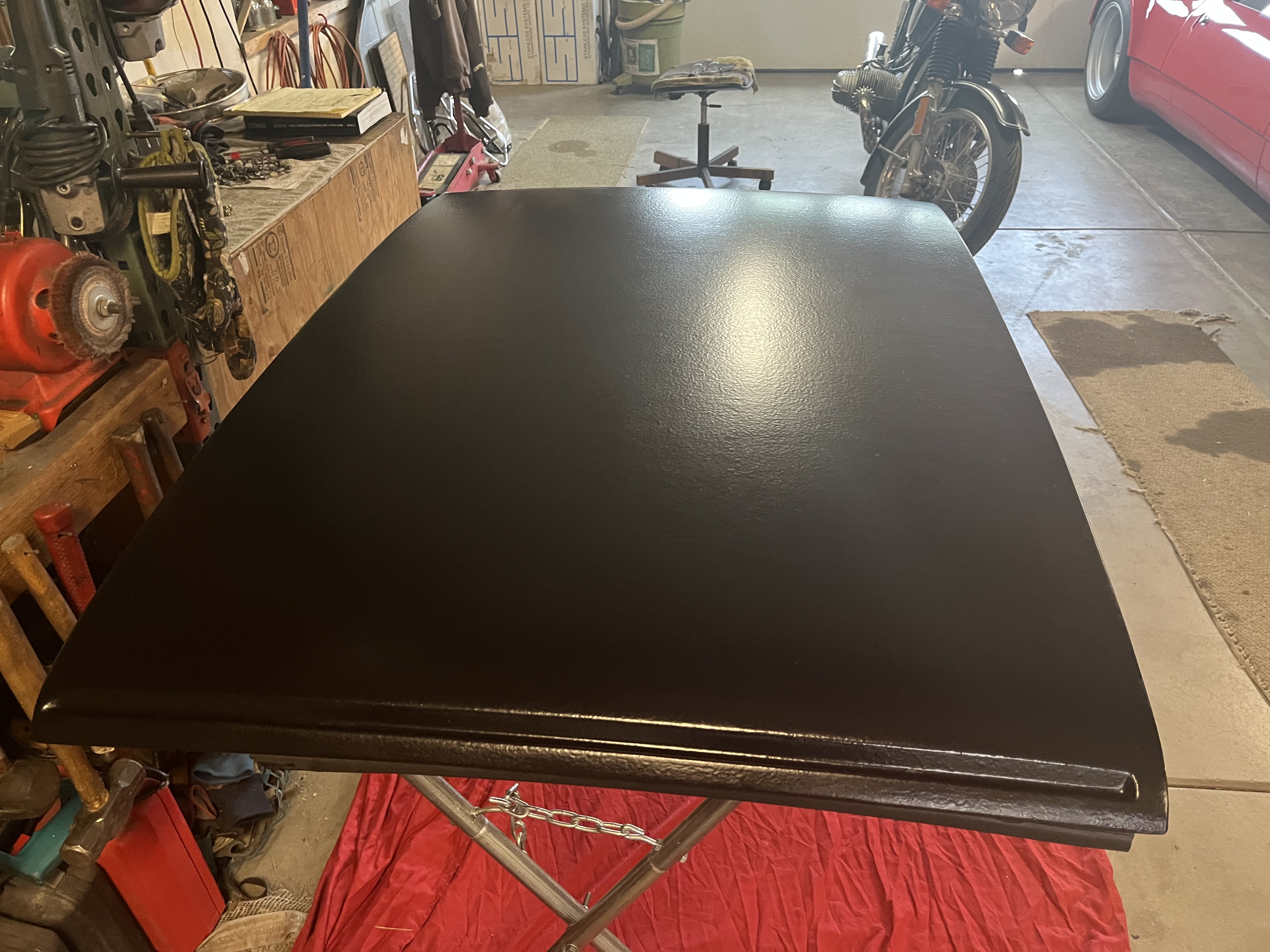 My fourth attempt on the targa top. A little bit of dust found its way to the top as the paint was drying... (IMG:style_emoticons/default/mad.gif) ...again. This will suffice.