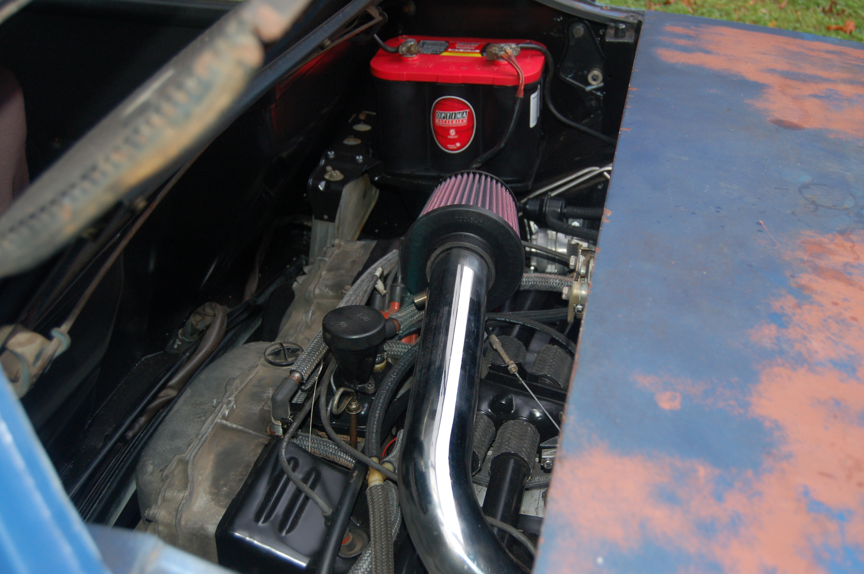 I haven't posted anything in about a month but I have been tinkering when I've had time. The gas tank has been 1 of my hold ups, but its fixed and installed now.It has been boiled out, a rusty spot patched. and re-lined. But the big news is I started it today!!!!!!!!! It seems as though I have injectors not wanting to work on the 1/2 side. I have spark and signal to the injectors so I guess my next move is to soak those 2 injectors in some carb cleaner and/or a few other tests to figure out whats goin on. But it runs and idles ok for only 2 cylinders. I wish I had video of it running but I don't, yet. Its running in these pics so just use your imagination.