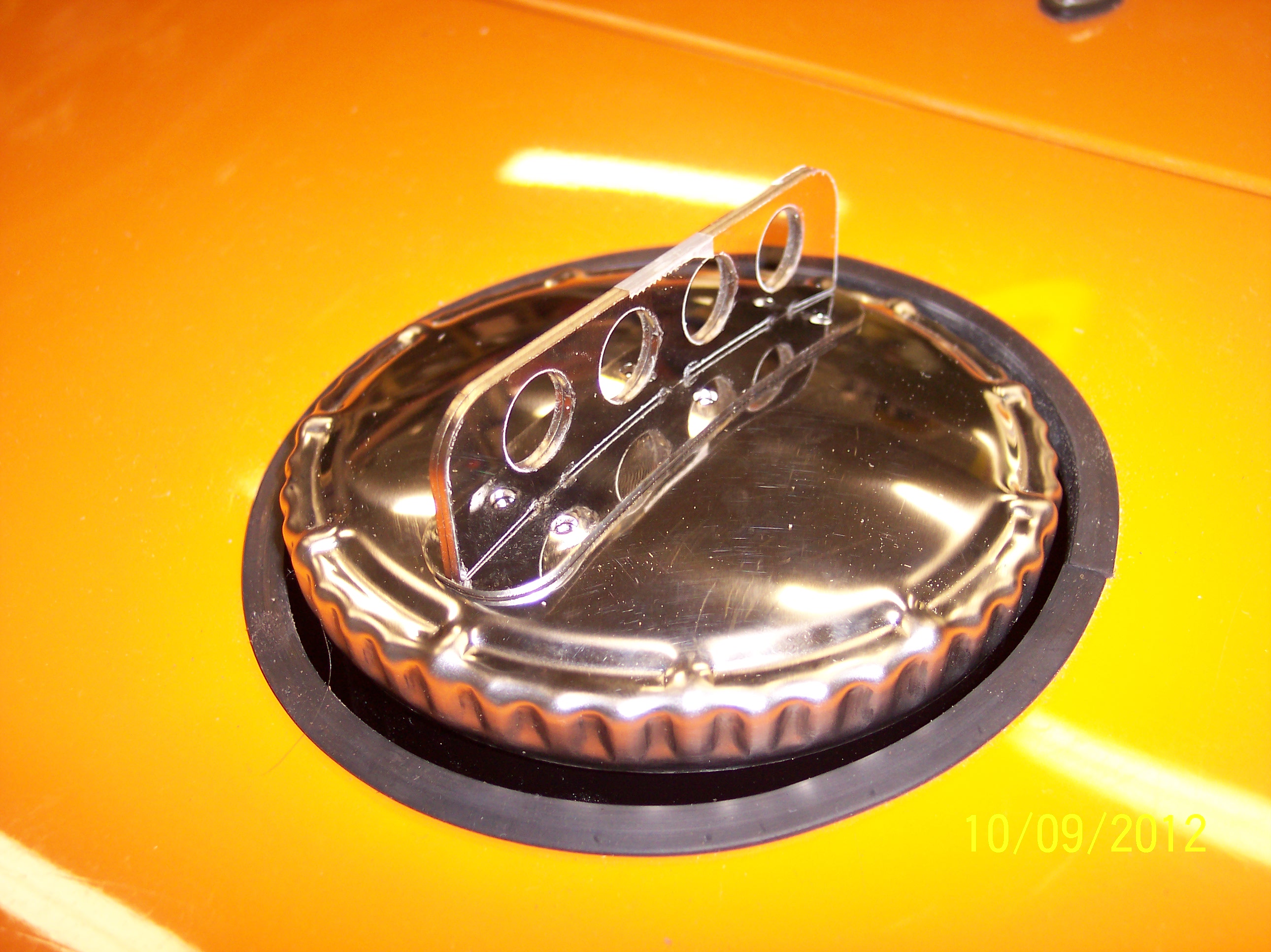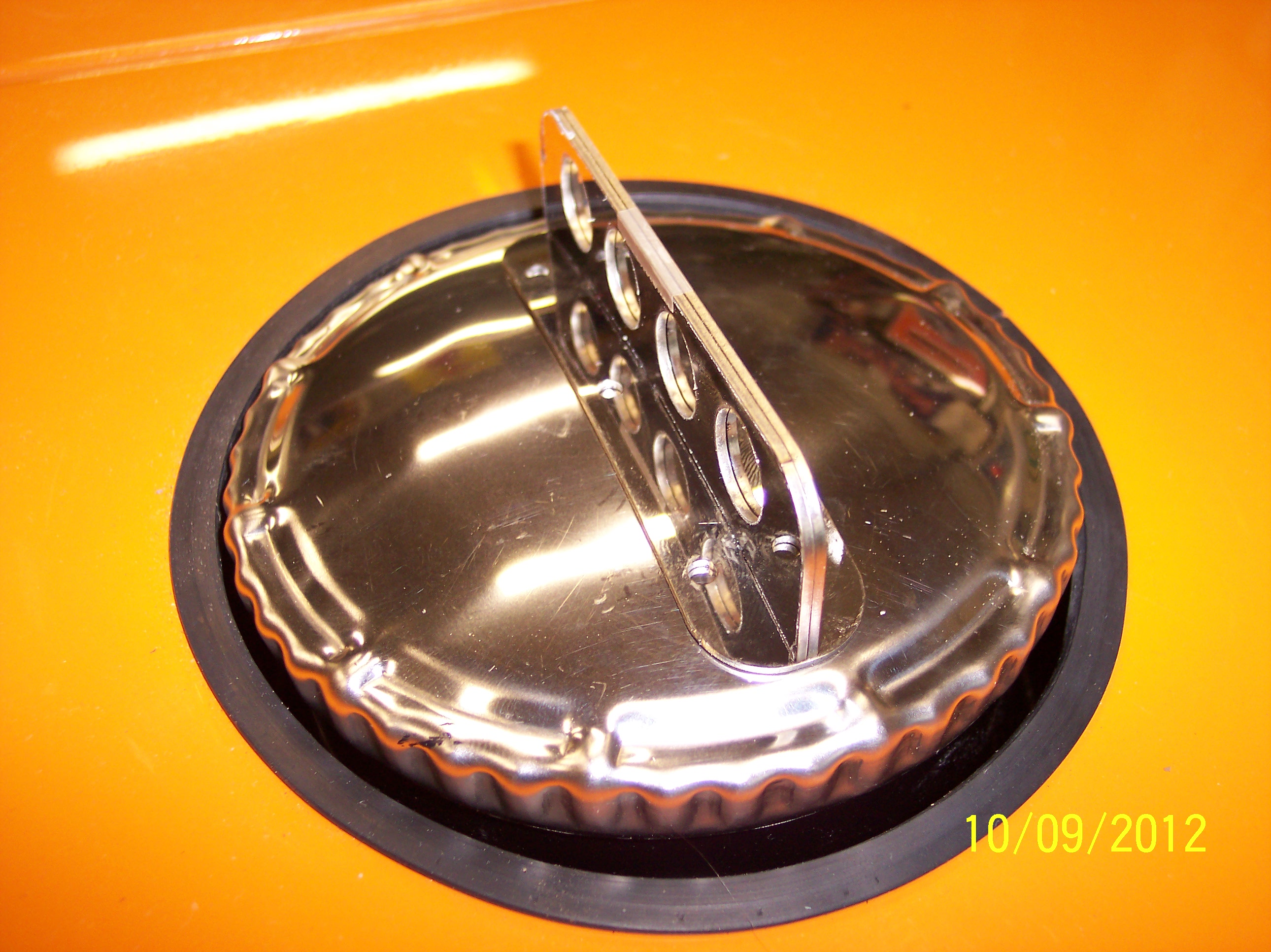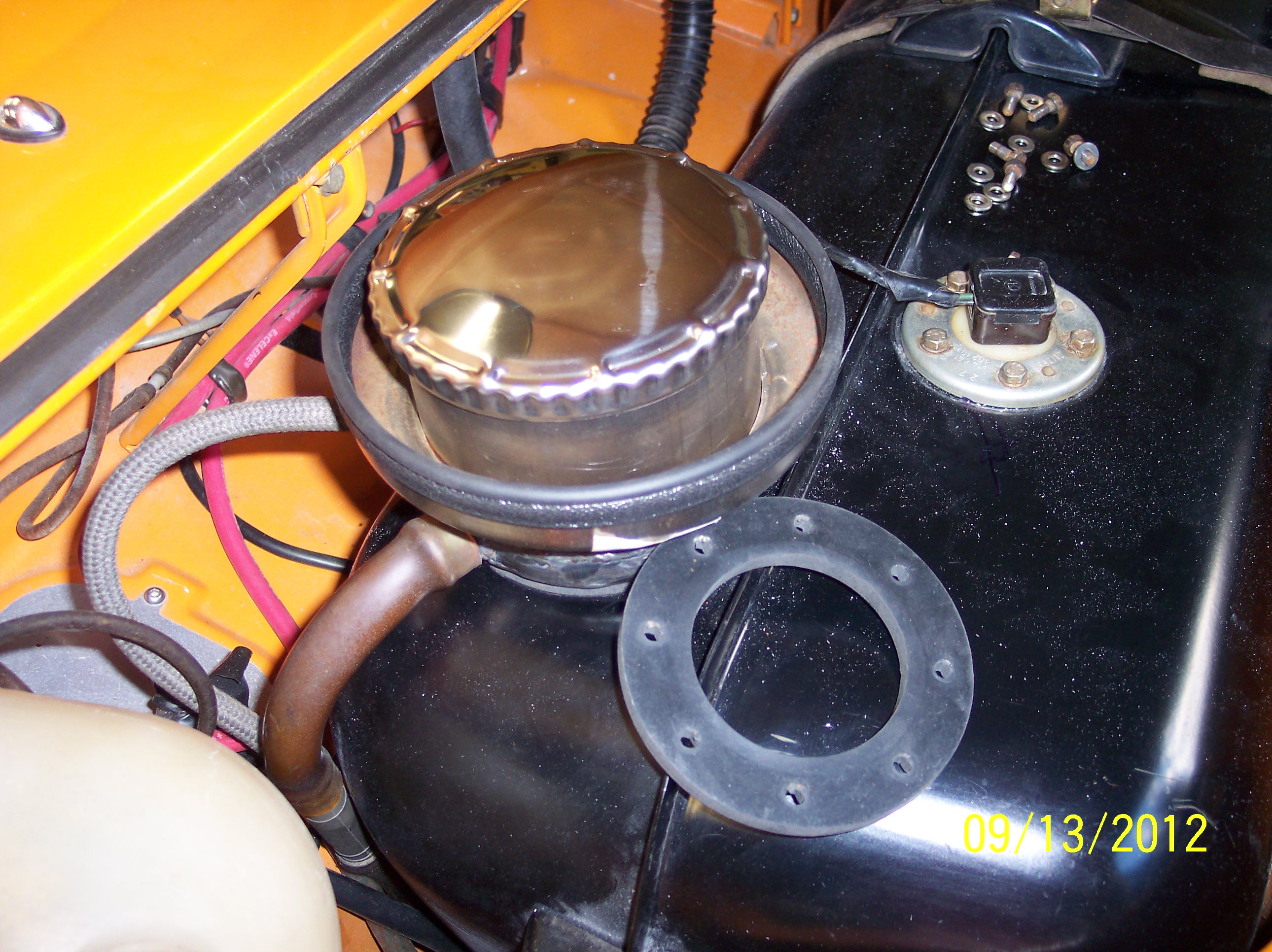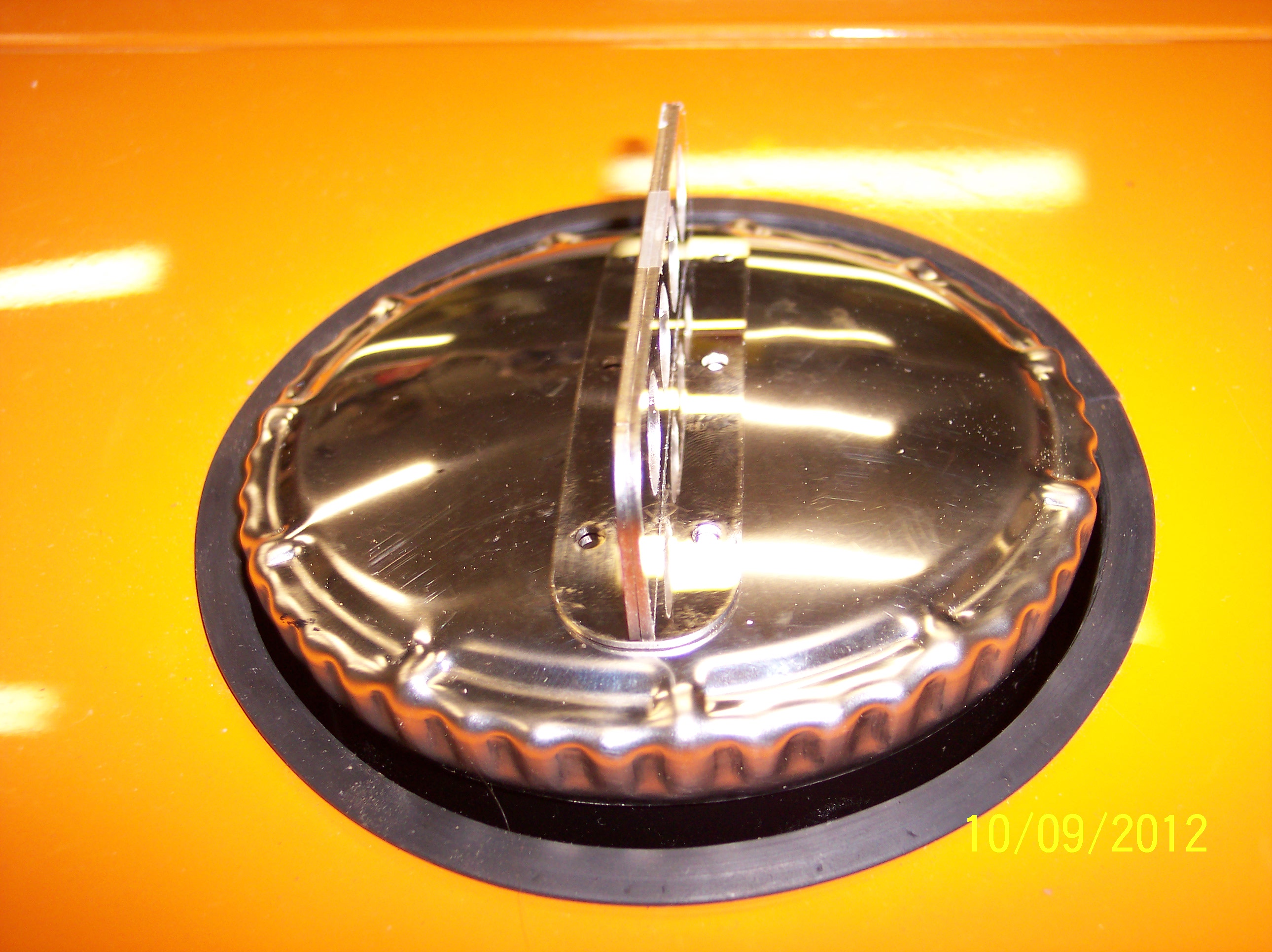 I thought I should post some pics of the finished filler.. Sorry if they are Blurry.... You can't see it, but I also took a stainless steel sink strainer from Lowes, and modified it to fit below the bottom gasket. I put it there to stop anything from falling into the tank with the cap off. Attached thumbnail(s) |