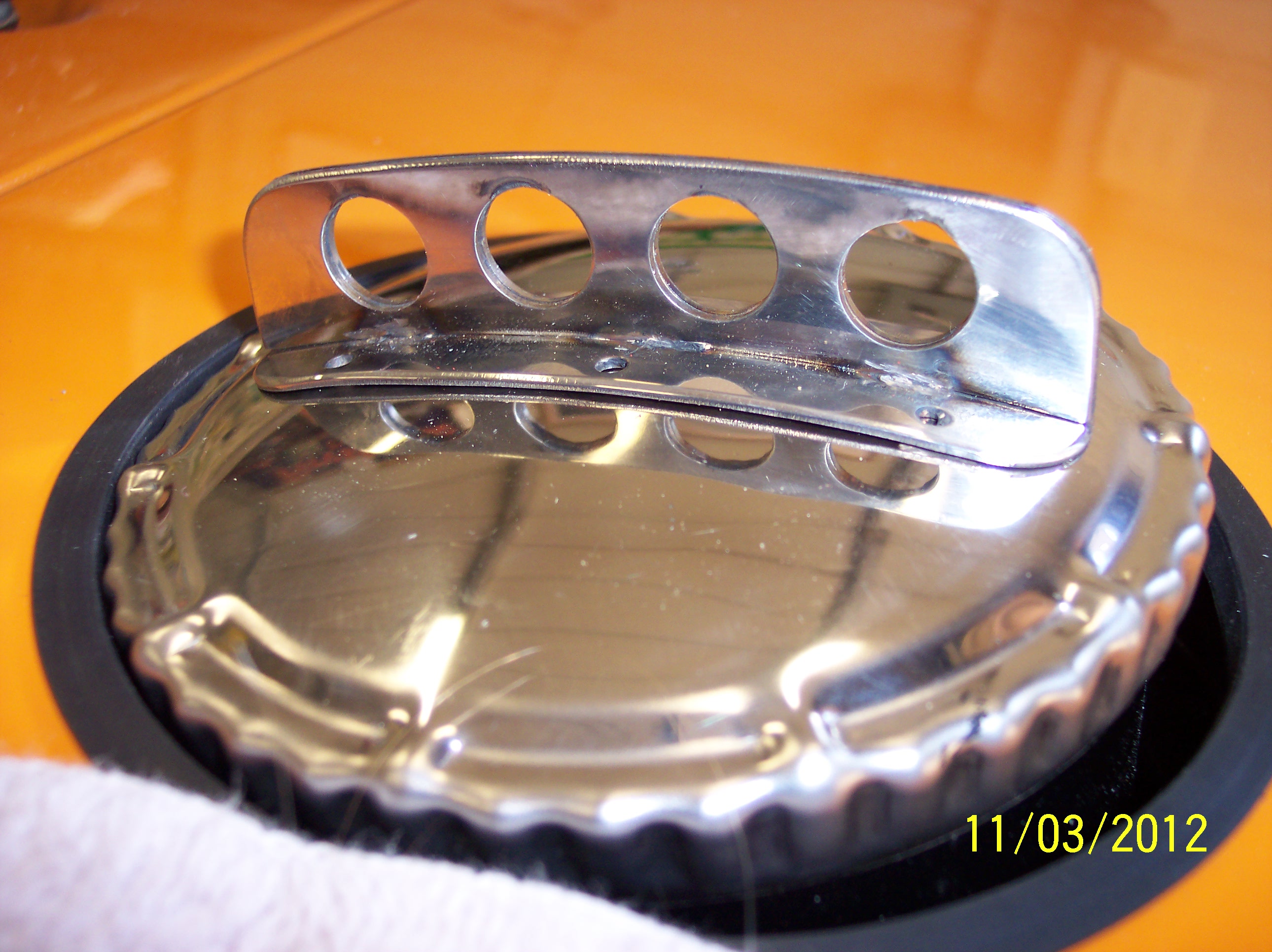 I also got my 1st sample piece back from my Tig welder. No real warpage, and not much burn through either. The handle on the cap is welded together, but not welded to the cap yet... Next week, I'll drop off all the extra parts to my Tigger (IMG:style_emoticons/default/welder.gif) for final welding. Then to finish it off, I'll send my completed cap out to a polisher to buff it to perfection.... Attached thumbnail(s) |