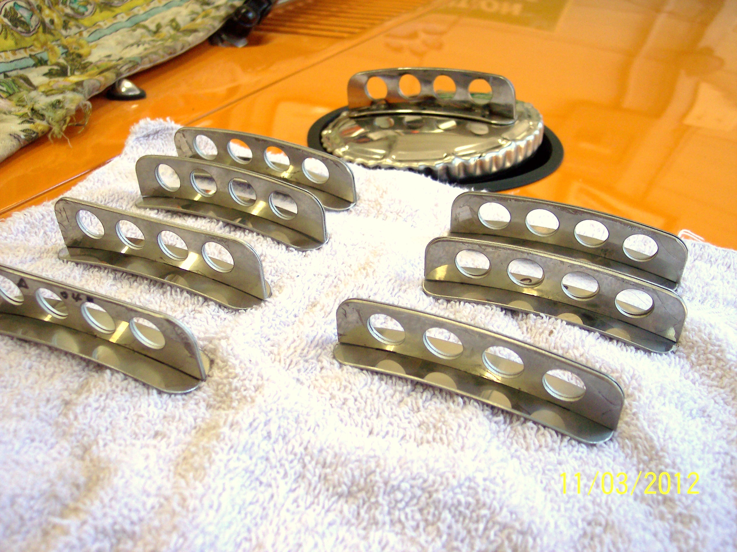 One design is a curved top, and the other design has a flat top. Both are 4 hole designs. The material is .048 thick stainless, came mirror polished on one side. Please give me some feedback, good or bad. Does it look to weak??, too heavy?? In the pics, nothing is welded up yet. Pieces are just sitting there loosely. I also will post pics soon of 2 of the standup parts back to back, sitting on the base for more feedback. Ron Attached thumbnail(s) |