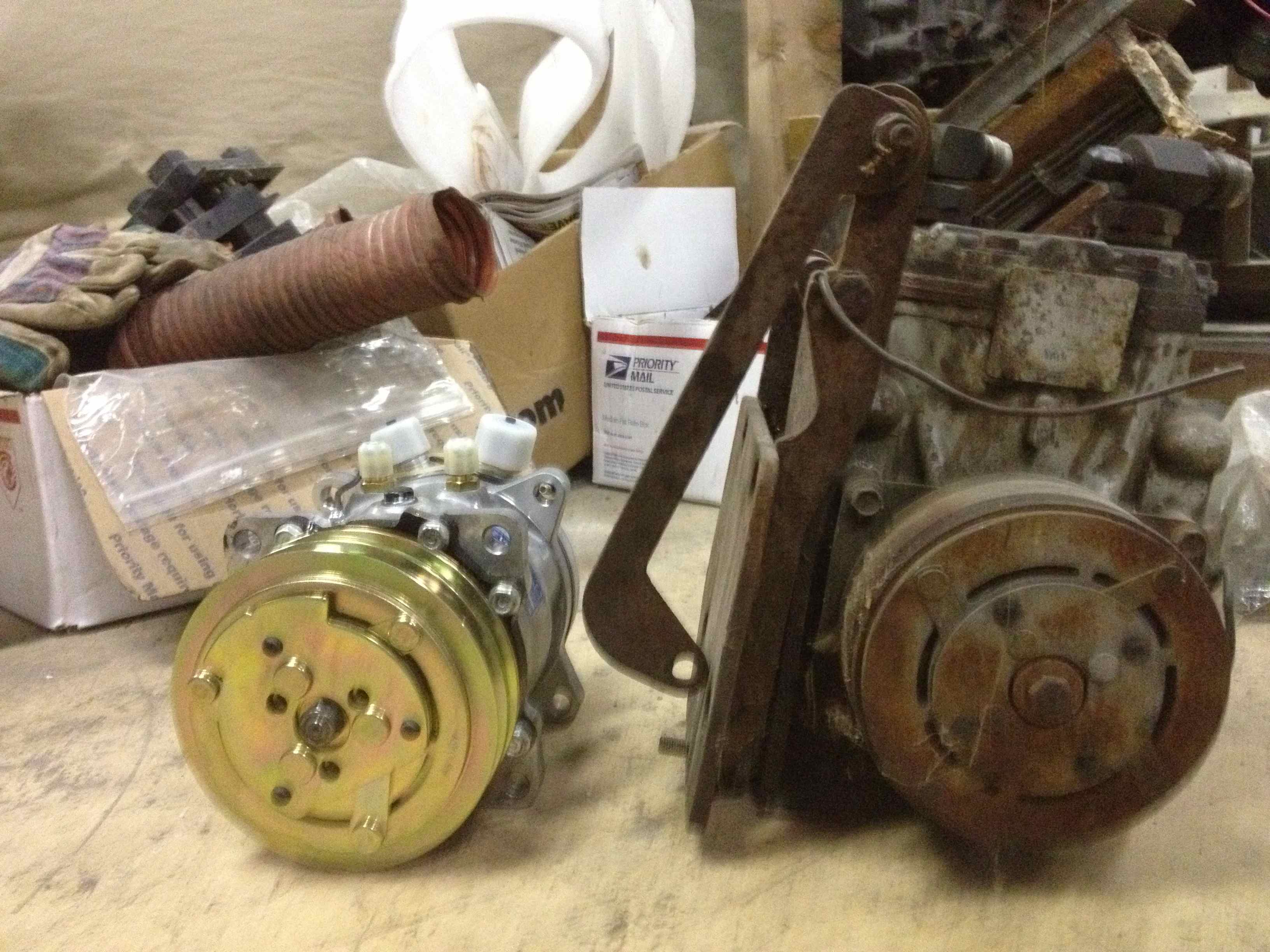 To begin things off here is one of the better overviews of an A/C system. Follow the link and you can see a breakdown of the whole system. ![]() http://www.movacs.com/How%20it%20works/index.html Anytime I refer to the stock system I will be referring to the dealer installed VPC system mostly because the only A/C cars I had came with this system and I have plenty of parts around. I also borrowed some photos off this site so if I used any of yours... Thanks. (IMG:style_emoticons/default/smile.gif) Compressor: The compressor that came on dealer installed A/C systems was a York Piston style compressor that had a capacity of 6 cubic inches/Rev. From what I could find it used about 7-10 horsepower from the engine. You can still use this compressor however there are better, more efficient options out there. When choosing a new compressor it is a good idea to find one with a similar capacity. In this case going bigger does not mean better. An A/C system works as a whole unit and if you dramatically change one aspect of it, you will likely see negatives effects elsewhere. Choosing a compressor that’s too big will overwork the system, yielding no little to no benefit, and create a not-as-efficient system. During my search I looked mostly at Sanden style compressors so that's what I'll be referring to in my build. Using a modern compressor like the Sanden will only use about 3-4 hp from the engine. I have heard quite a few people use the Sanden 508 compressor with good results. It has an approximate displacement of 8 cubic inches/rev, which IMO is slightly more than I'd like to make a jump to. I'm not saying it wouldn't work, it obviously works, however I think I will get slightly better results and pressures using the Sanden 507 (approx. 7 cubic inches/rev). The SD507 is also slightly smaller in size than the 508. Here is a picture of the York Compressor A side by side with the SD507 And here is a SD508 ![]() |