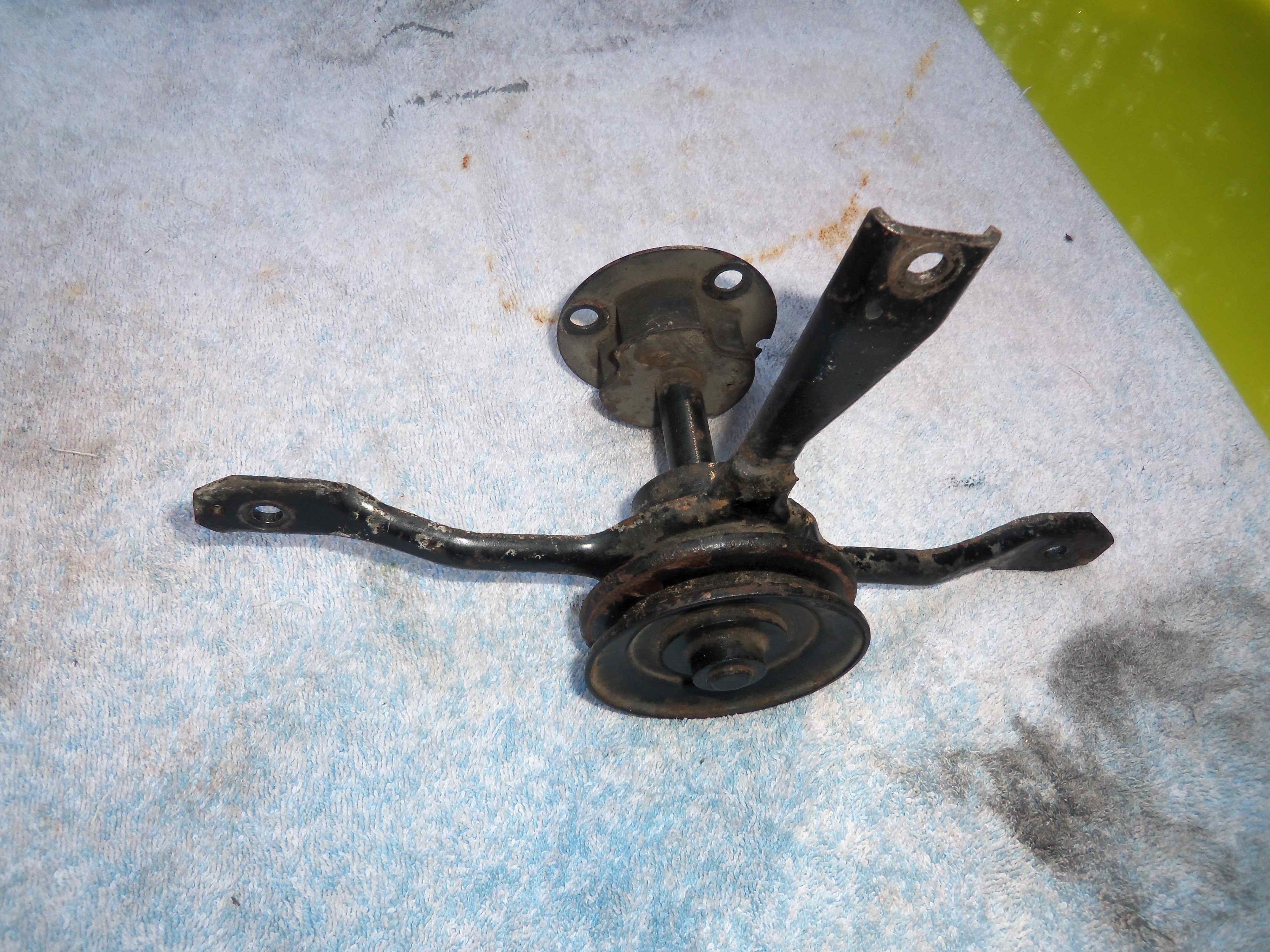 Here is the setup I came up with. Here is the mount. It might not look like much but its solid as a rock. The adjustment piece The pulley assembly |