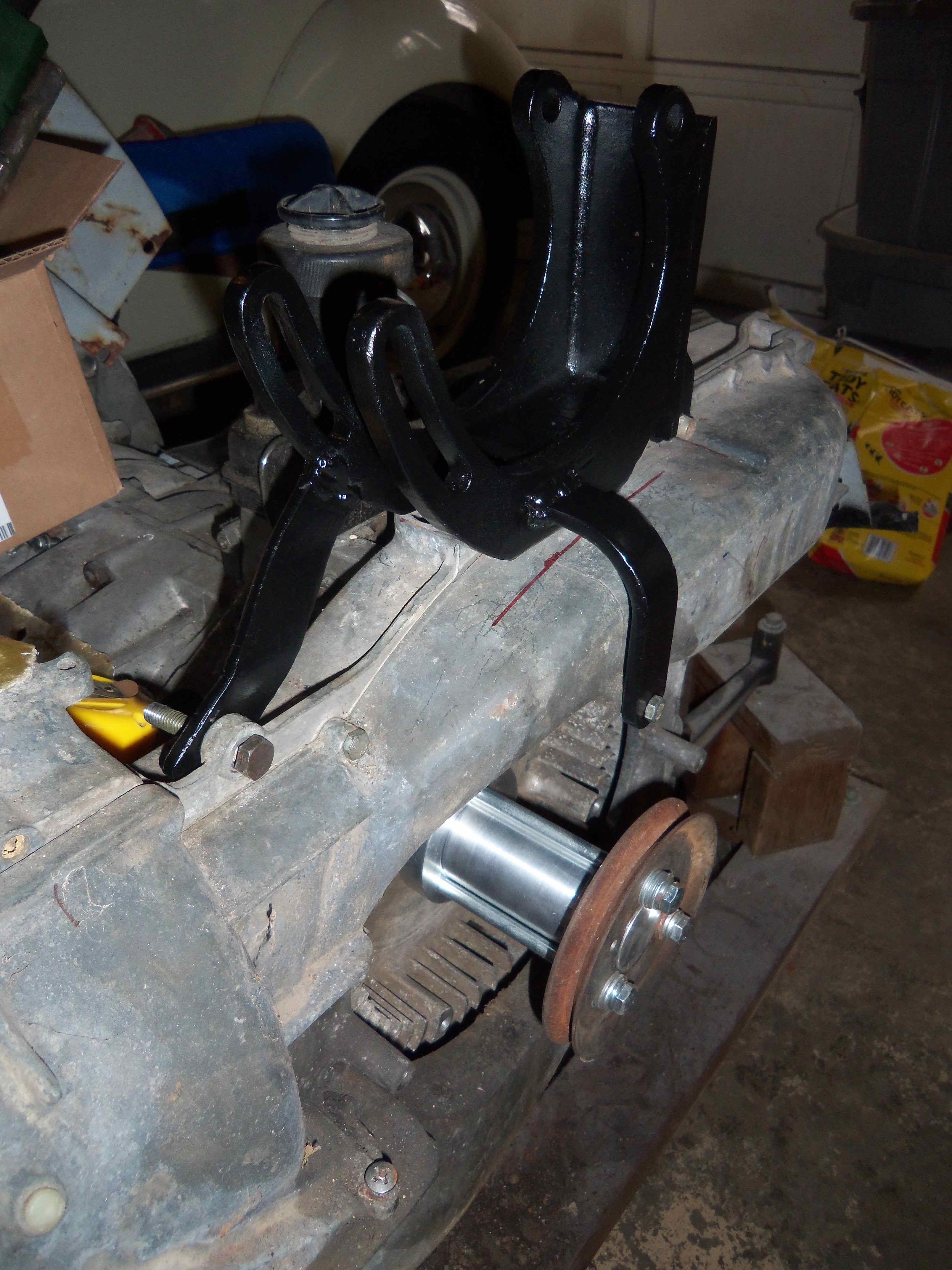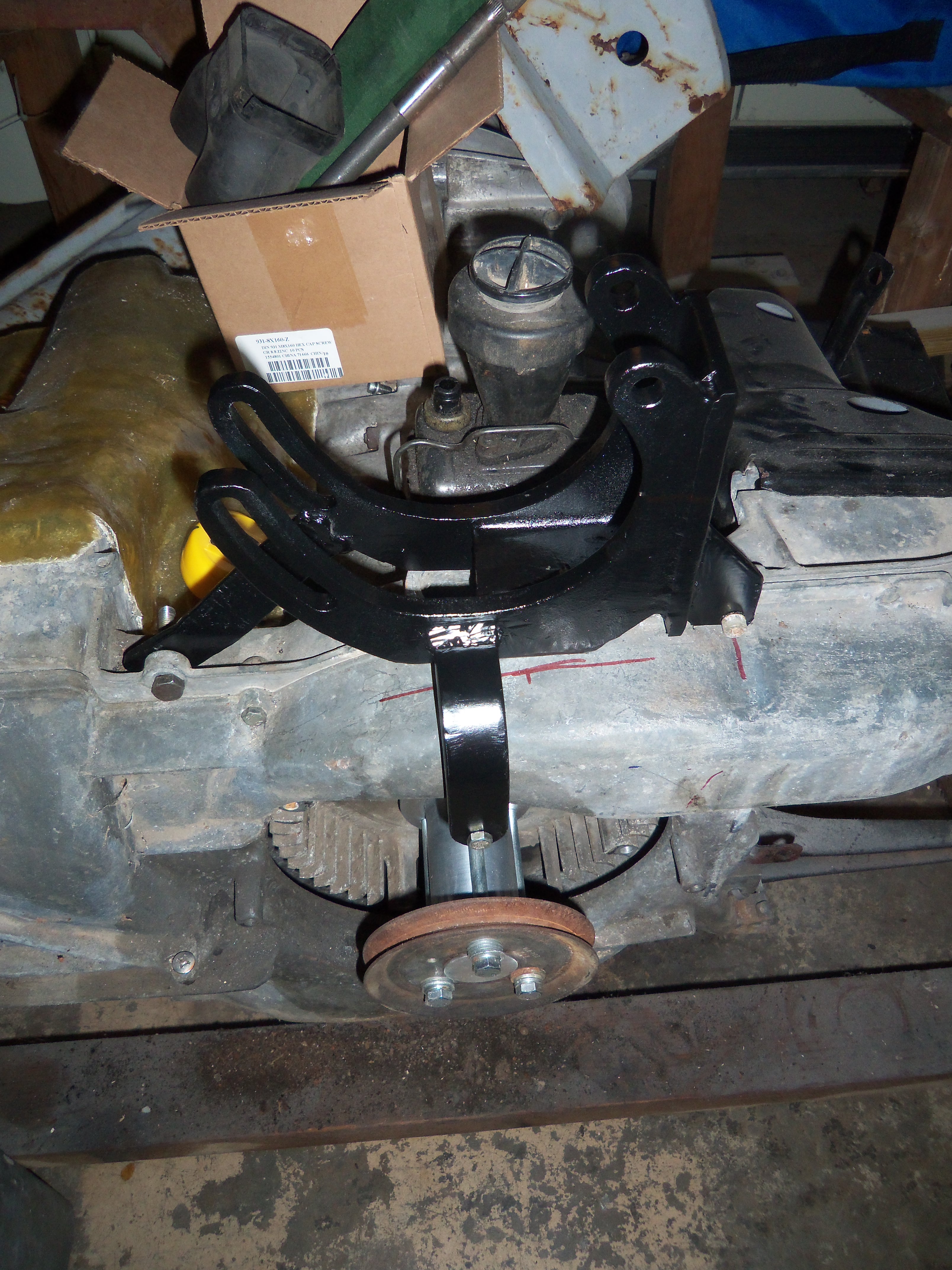 Here is my bracket. Here is my turnbuckle adjuster (left and right hand threads). Here is the turnbuckle mounted The other side of the mount My oil filler modification. |
