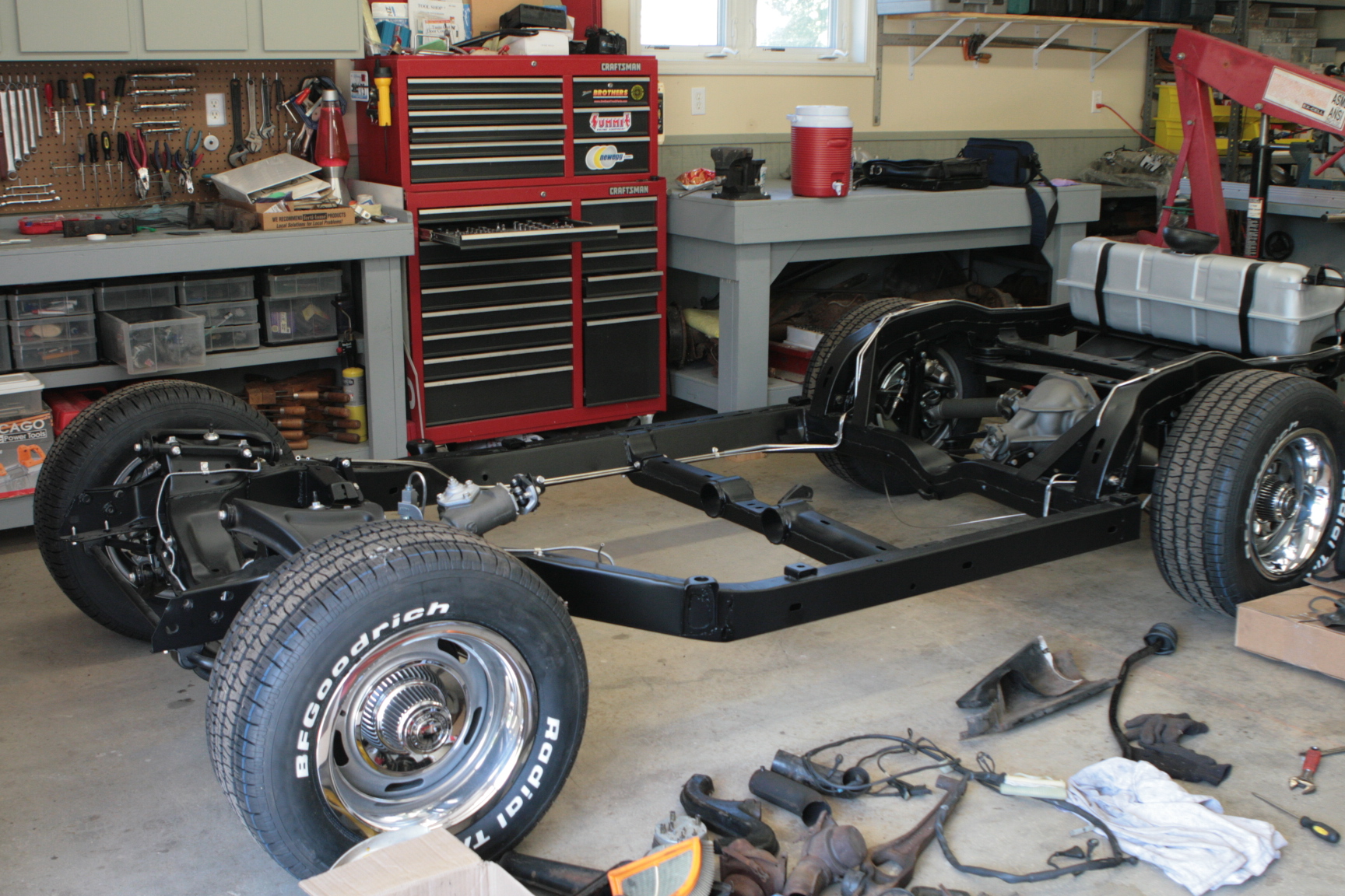 Since purchasing my LE in the spring of 2010, I have slowly restored/replaced/upgraded items as time and money allowed. Yesterday, I drove 600+ miles to central Illinois to visit my cousin for a few days of marathon wrenching and reconditioning. I arrived around 5:30 local time and after going over "the plan", started cleaning and blasting some miscellaneous parts.