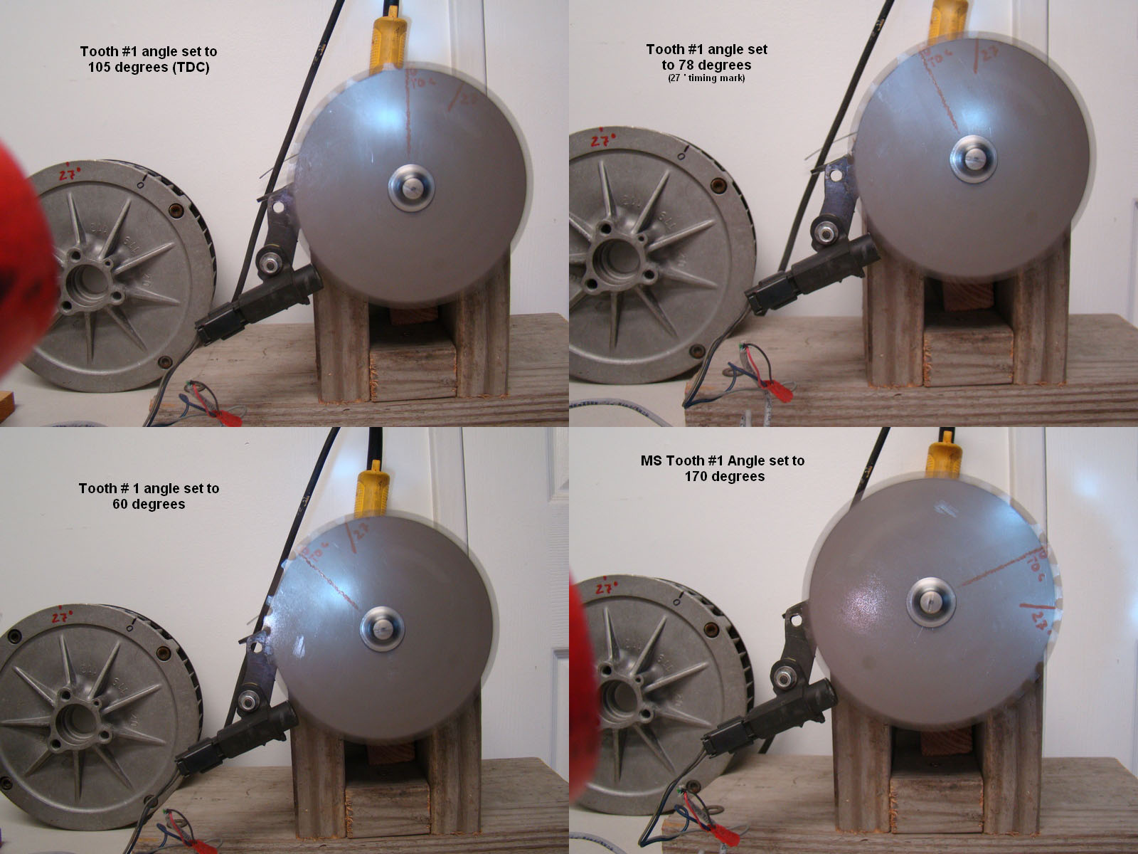 Yes, I confirmed tonight that the Tooth #1 angle adjustment is VERY flexible. I took some photos of the timing wheel (that I marked up with TDC roughly same spot as Mark's wheel) with my test setup. I fee comfortable with this now (IMG:style_emoticons/default/smile.gif)