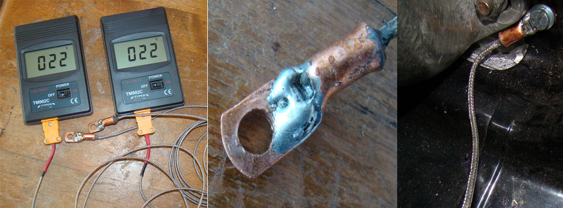 Here is a photo of the temporary coil setup and look the distributor wires are gone. and some photos of my head temp sensor setup....lest than $25 for both on ebay! |