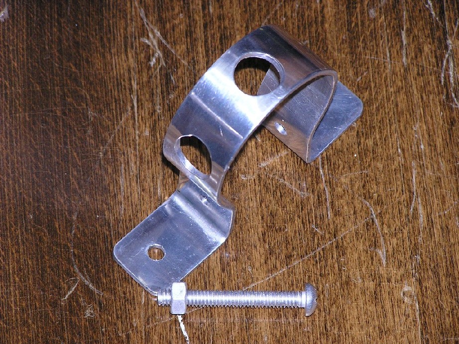 Here is another pic. Its a coil bracket that dad made up from aluminum. Also pictured is the aluminum bolt and nut that will pinch it tight...