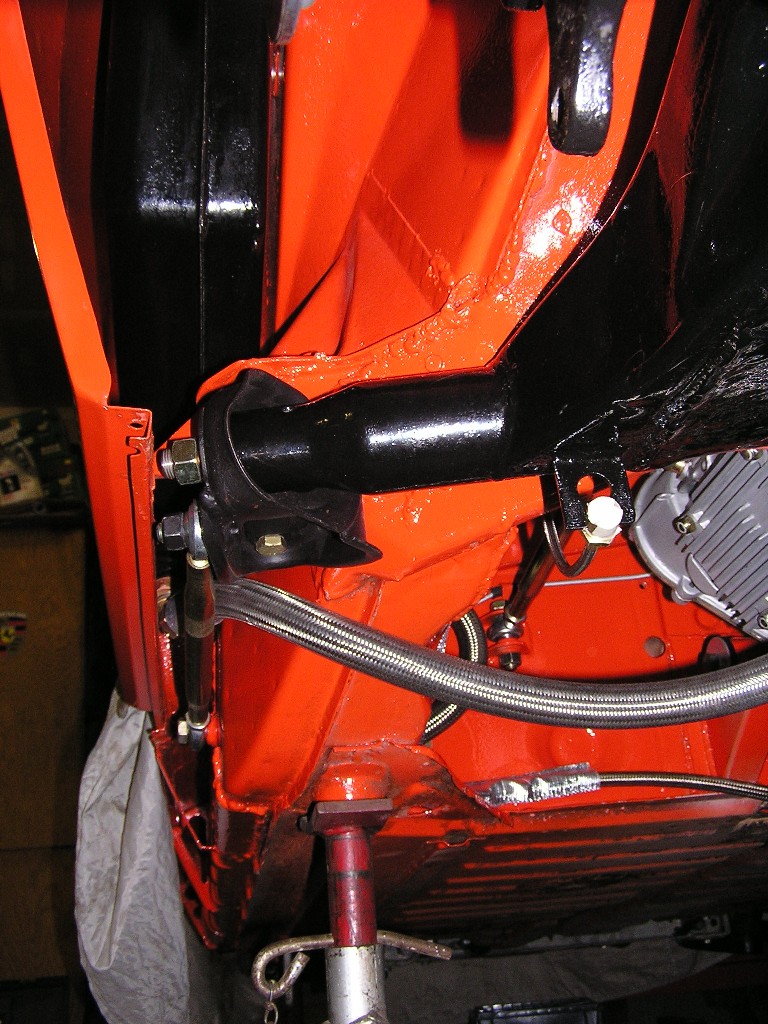 The rear shock bolt is modified for the rear sway we used to run on our old car: