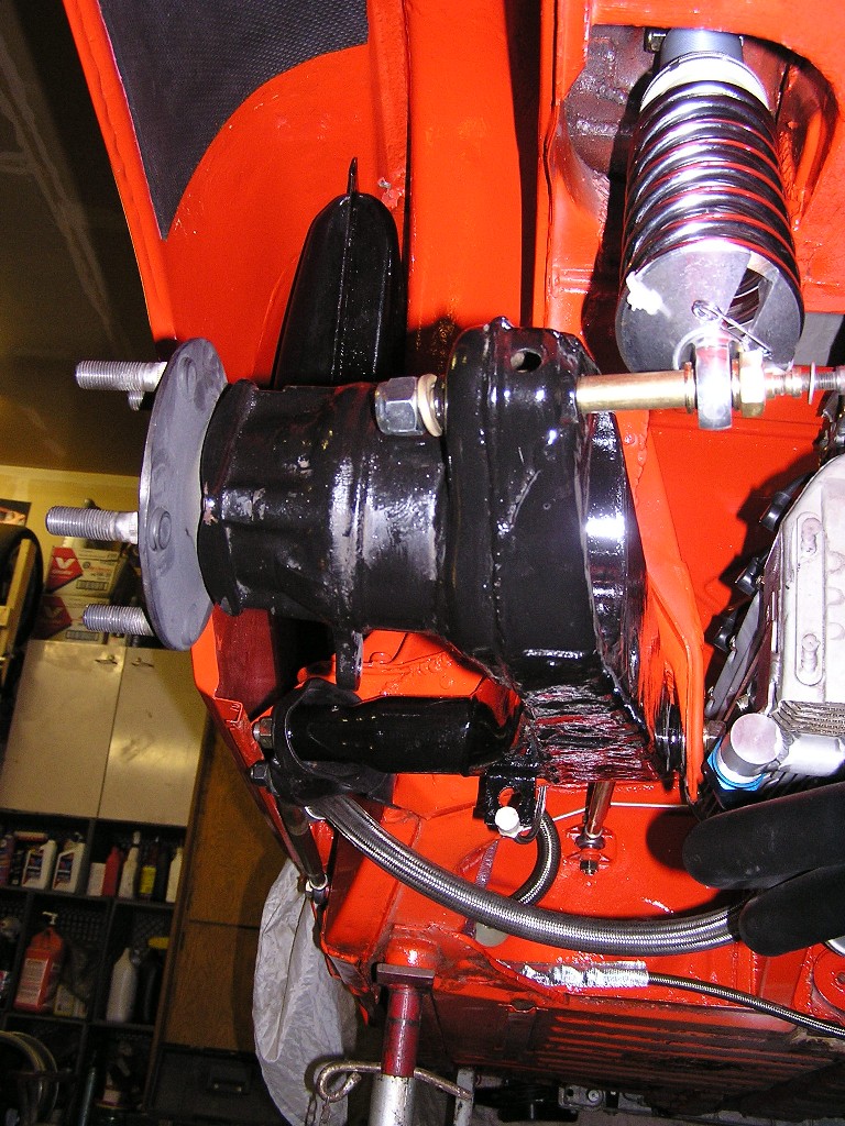 Ok we also got the rear suspension hung. I particularly like this shot as it shows the inboard and outboard braces at the same time and in the same plane of direction....