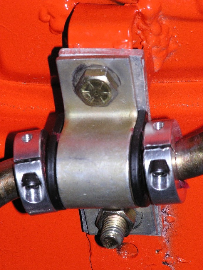 Here are the aluminum spacer blocks that dad made up for the rear shock bolts. The notch is for the trailer tie downs (very convienient) Attached thumbnail(s)