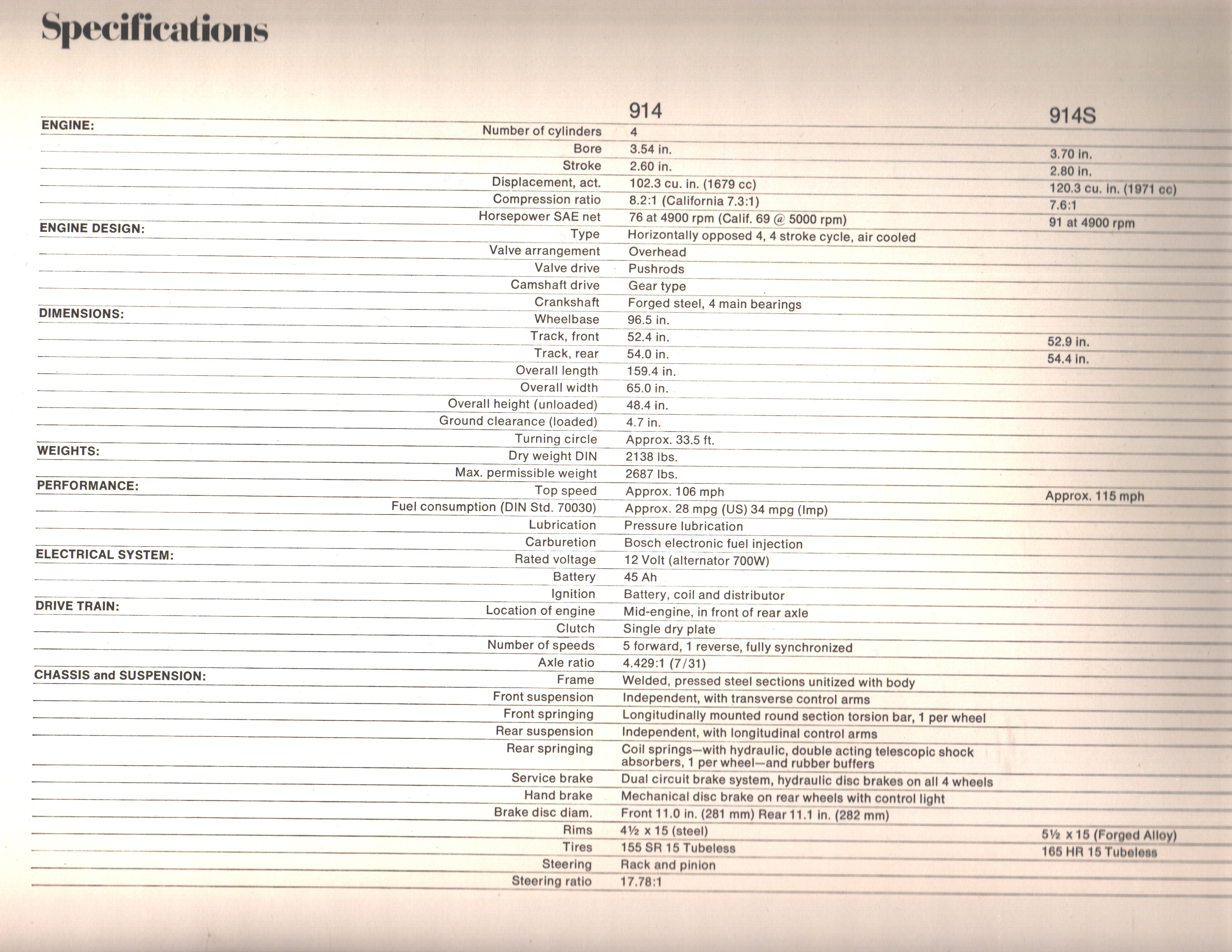 I have one of those brochures too....and this ad - ![]() . More on the 914-S story here, & comments from the p-nut gallery on it... http://www.914world.com/bbs2/index.php?sho...=107851&st= (IMG:style_emoticons/default/shades.gif) |
