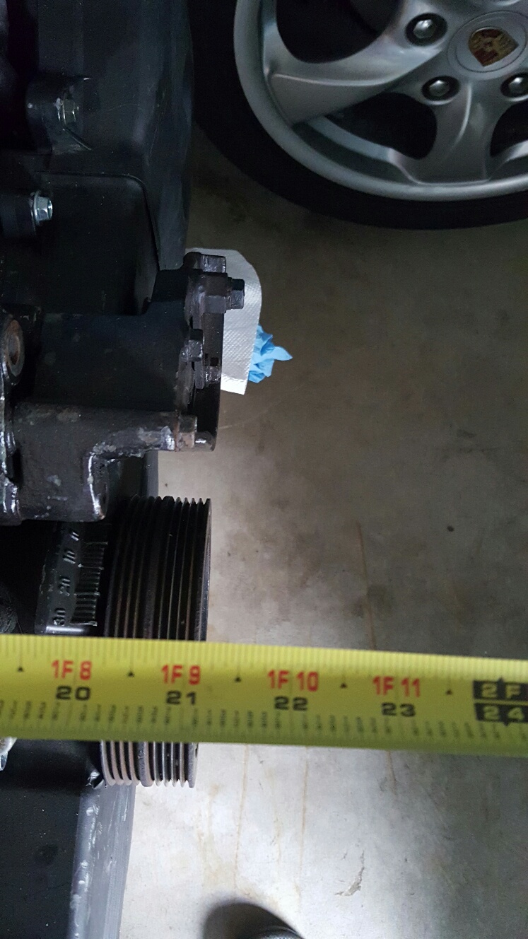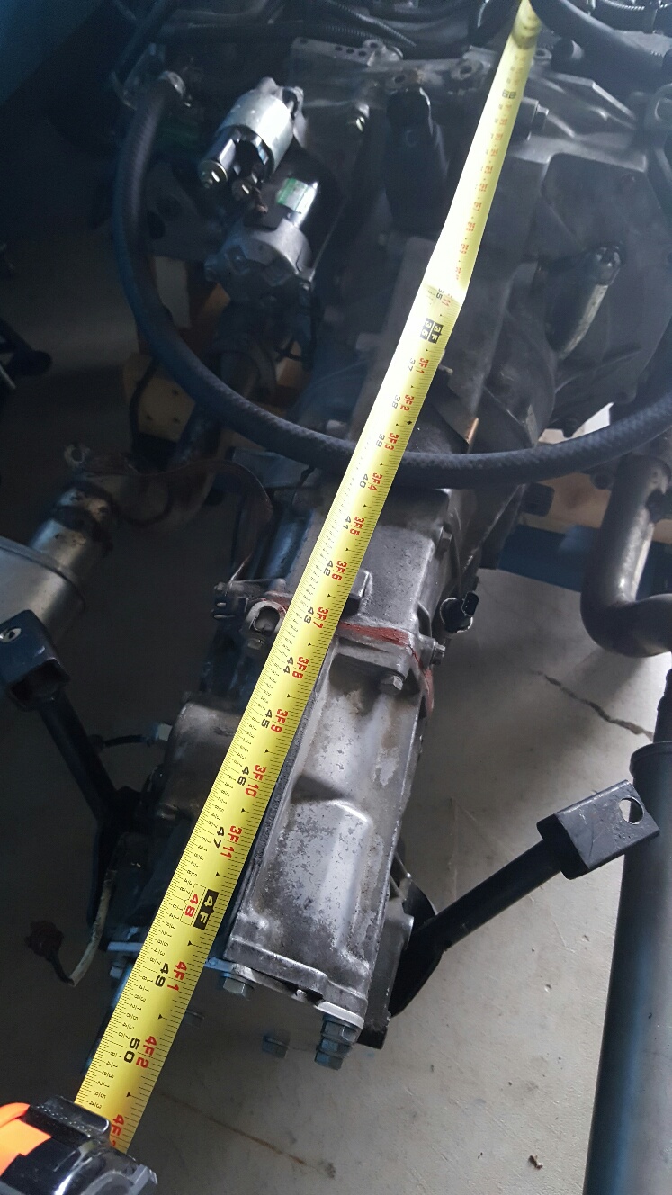 About 28" wide The engine itself is just under 22" deep, then you have to add the snorkel for the stock intake manifold, which would add about 4" or so The engine and trans are about 48.5 front to back, again, add 4" or so for intake. The height of the engine is tough because I pulled the manifold off but I would guesstimate it at about 26" from oil pan to the top of the manifold. |