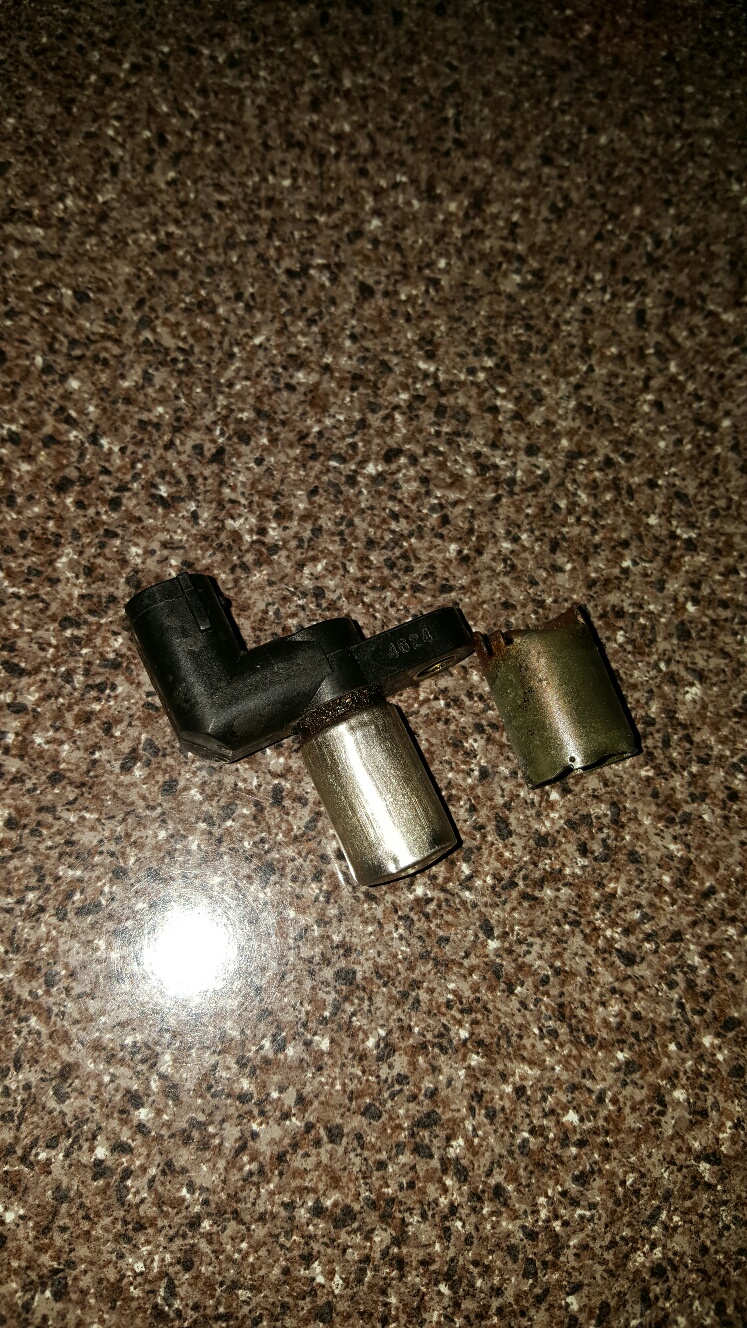 There are two Crank Angle Sensors that are located on top of the oil pump right under the alternator next to each other. I was removing them to take the oil pump out and one of them just didn't want to budge. The outer metal sleeve had come loose and was stuck inside the hole. I tested it and found the sensor was bad so I manhandled it out. Looks like a small amount of water must have gotten between the sensor and the pump housing: That's the one area I didn't mess with when I resealed the engine (of course). When you test these using an Ohm meter it should read ~2600. The other two are very close... The bad one...nothing... These are very simple magnetic sensors, they are technically all interchangeable. The only difference is the angle of the plug. Of course the one I need is #1, and the plug end is pretty unique. Just need to do some searches to see what other Subaru sensor is close enough. You can find these for $20 -$30 each. Tempting to replace all 3. Definitely not spending ~$250 for the SVX one. |