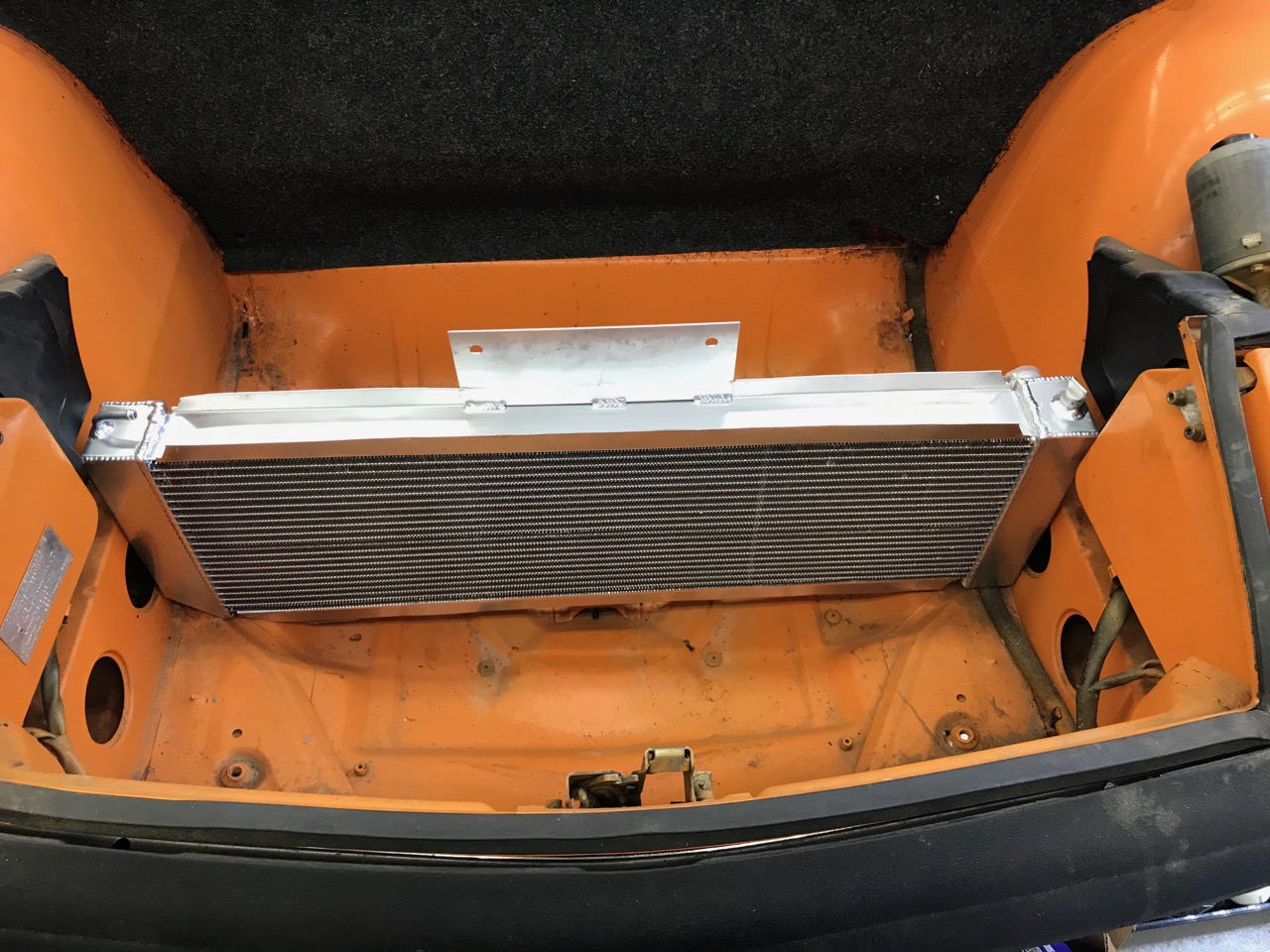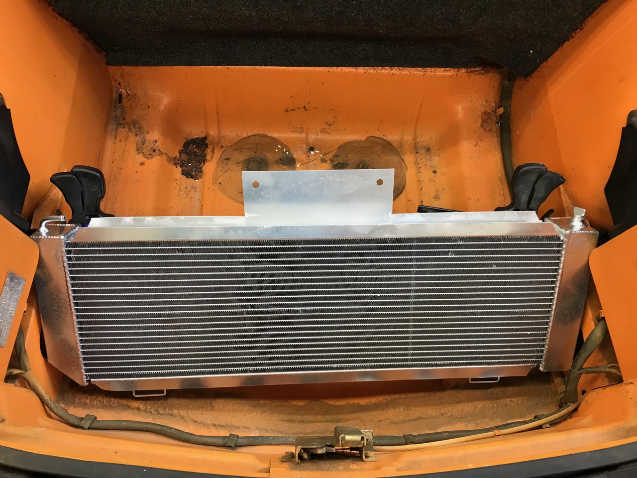 I was planning on using a notch, but not the head light buckets. Where it sits now, should be good for my setup. I will be adding a notch in the support to allow the rad to slide down into it. A couple of U's with foam to support the rad and let it float separate from the chassis, and still be sealed. Another U up top to seal the deal, build the duct work front and rear and then a fan shroud and the rear ductwork. I will still have a bit of the Frunk to use. My biggest challenge now is finding a A/c Condenser that fits. Have not found one for a Renault Alpine. So off to get one custom made, and well that will equal $$$, and once I started looking at dollars I looked at Restomod Air system, and (IMG:style_emoticons/default/idea.gif) very bad (IMG:style_emoticons/default/idea.gif) came about. Stephan, you get a universal one that is a close to the radiators size as possible. I say this to maximize airflow, not to improve AC cooling.They come with "L" brackets so you can hang them in front of your radiator. (IMG:style_emoticons/default/beerchug.gif) |