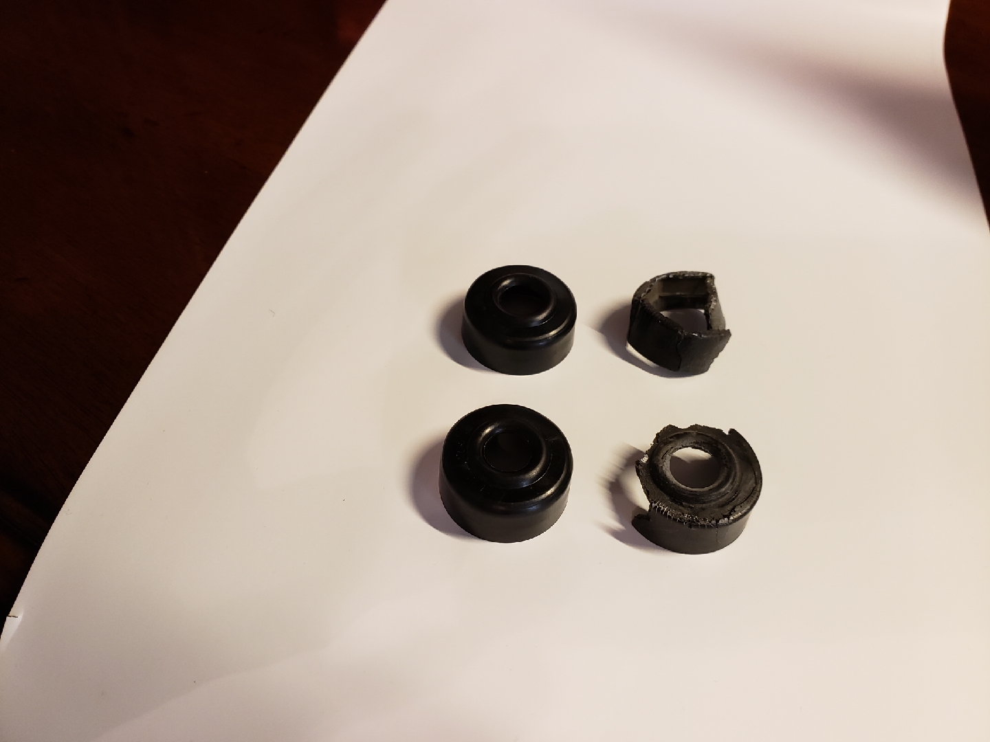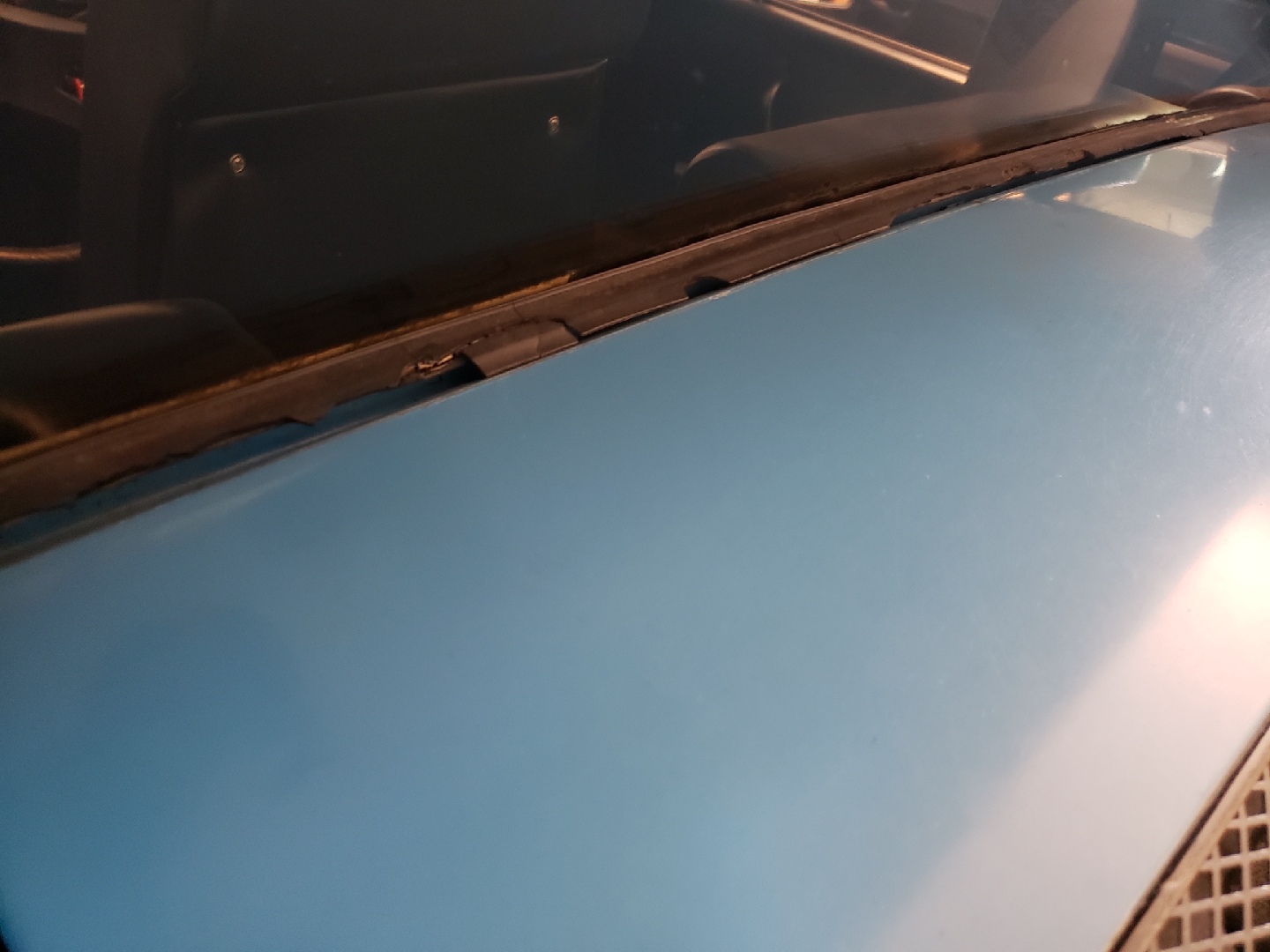 Check out my engine lid-to-body seal. It was so brittle it was breaking off in huge chunks. And the new purty one: Think maybe I needed new wiper caps? The new ones are on the left...just FYI (IMG:style_emoticons/default/biggrin.gif) . Next I reinstall my rubber bumper tops with new rubber base spacer things. They should fit a lot better. All this satisfaction for less than $40. You just can't beat it. |