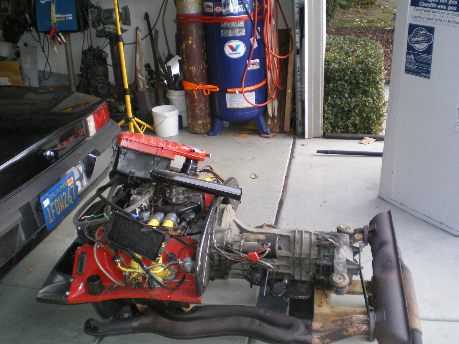 What's it been? A year since I got Blackie running. I finally get it tuned to a daily driver status and should have been happy as a Lark then but what do I do? I sold the engine (w/90 hour's on the Hobbs) on the last Dawn Patrol GMR run. So I pulled the engine and began preparing Blackie for her transformation.
