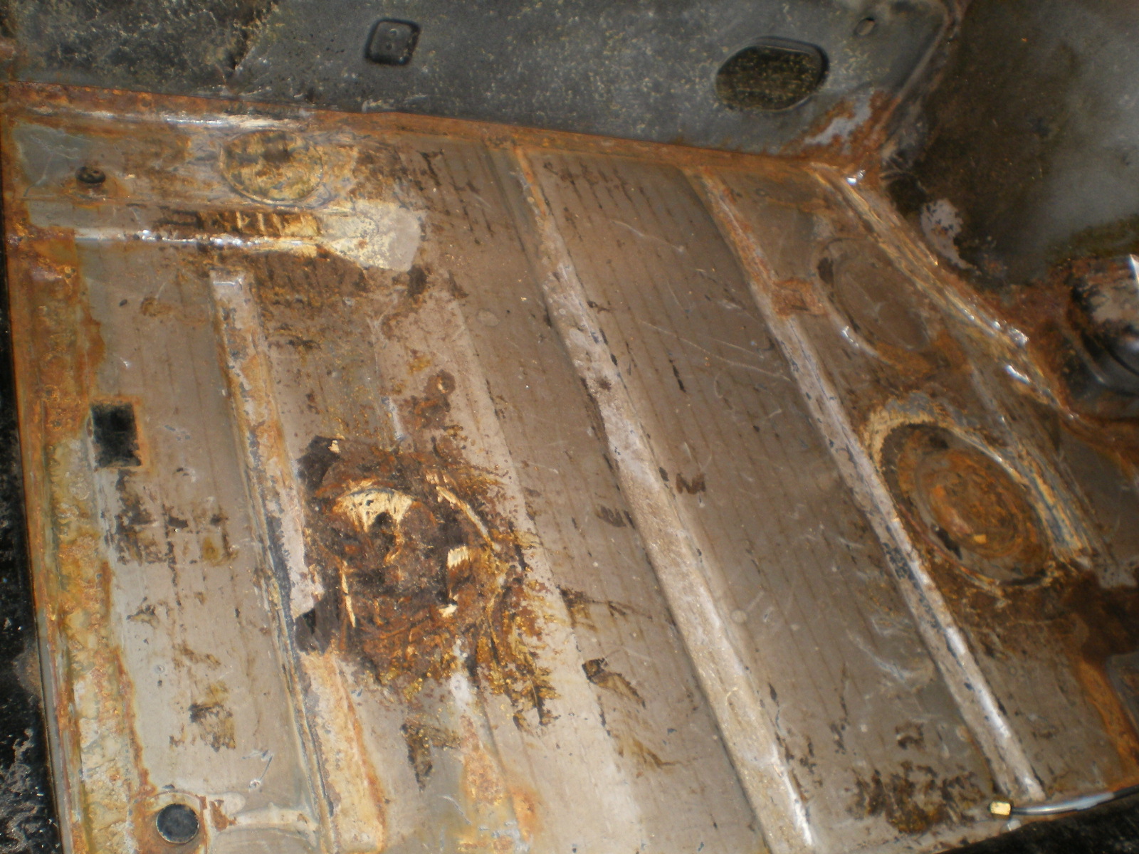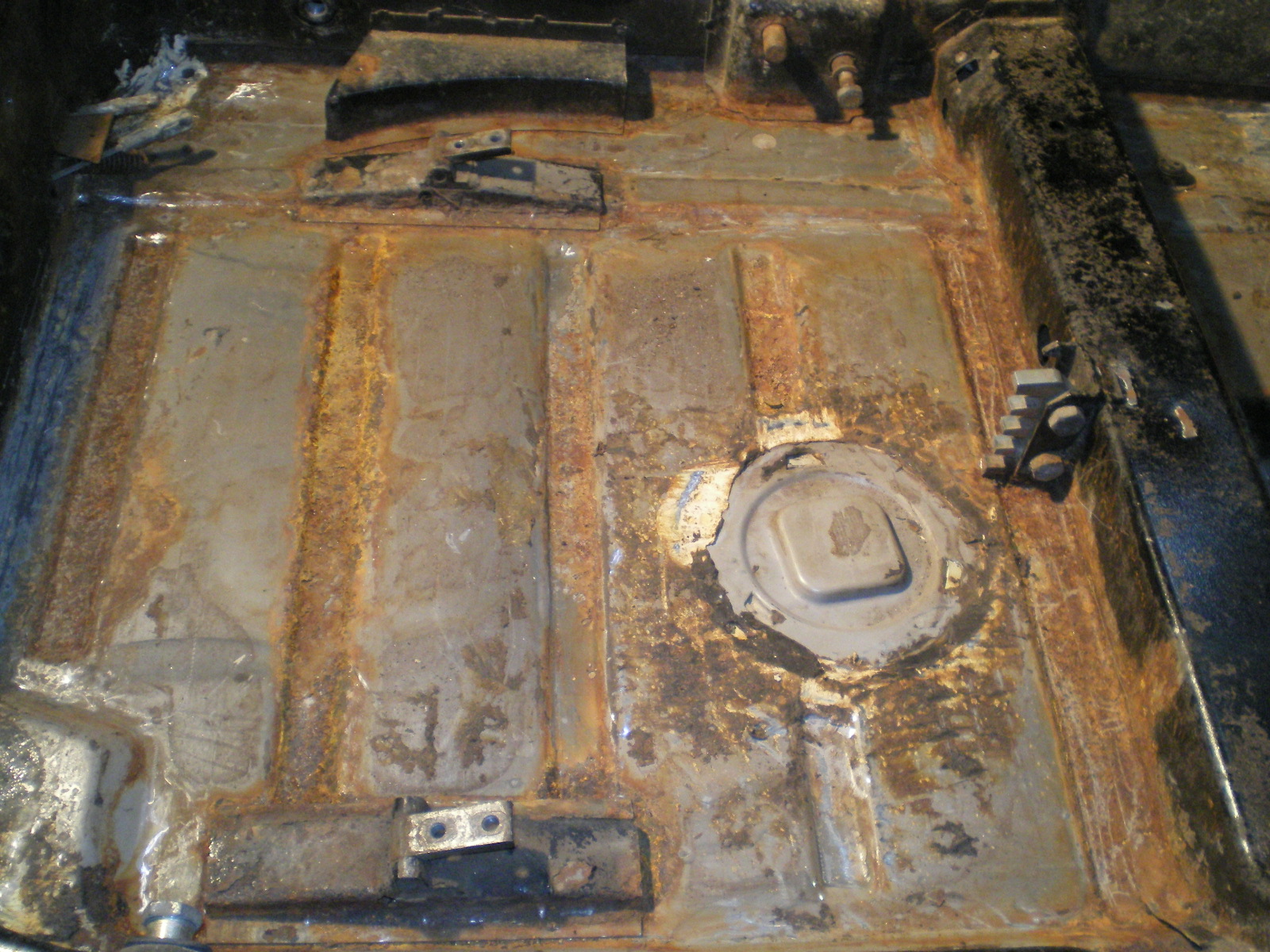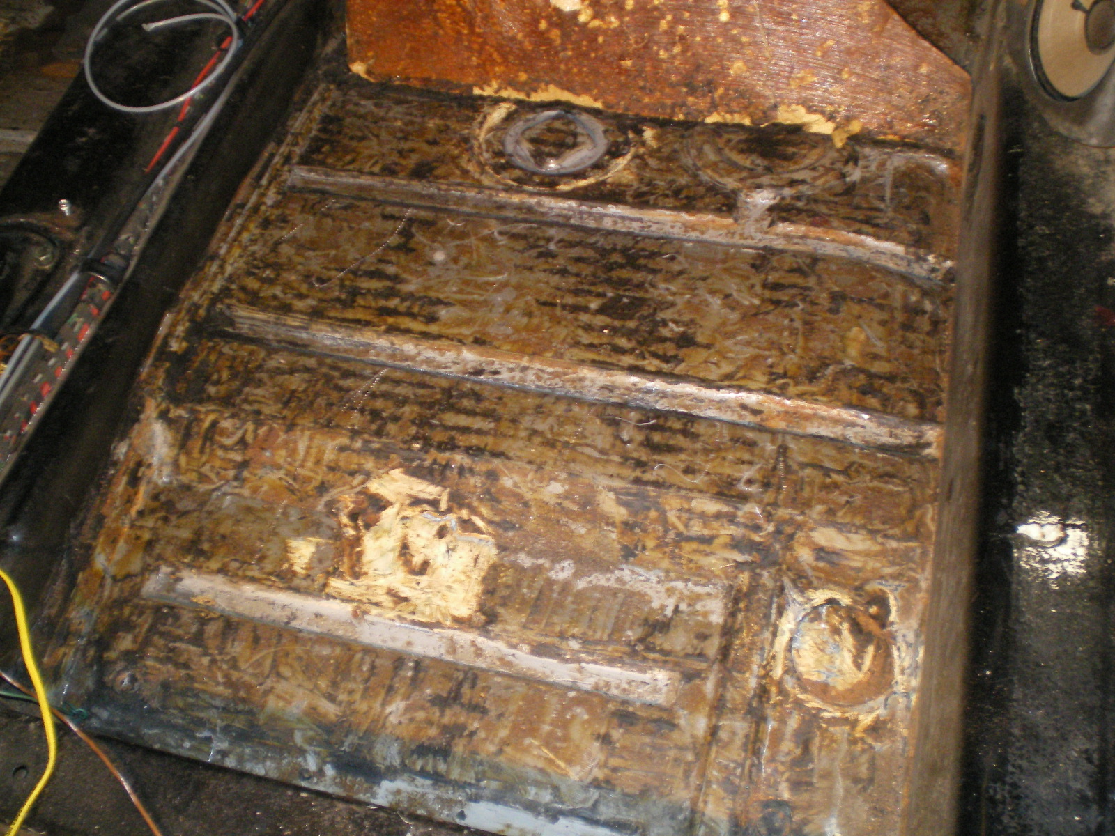 So after a couple of hours this is what I found beneath the tar. (IMG:style_emoticons/default/biggrin.gif) A little surface rust that should brush off with a cup brush. I did not skin the tunnel as it is above any suspect areas and I have looked inside the tunnel before with a camera. The two floorboards together yielded 9.8 lb's of tar.