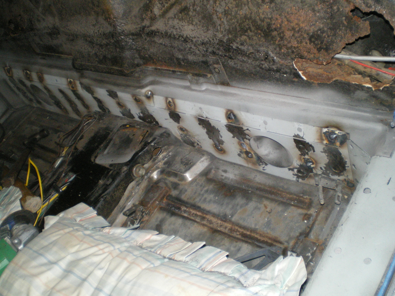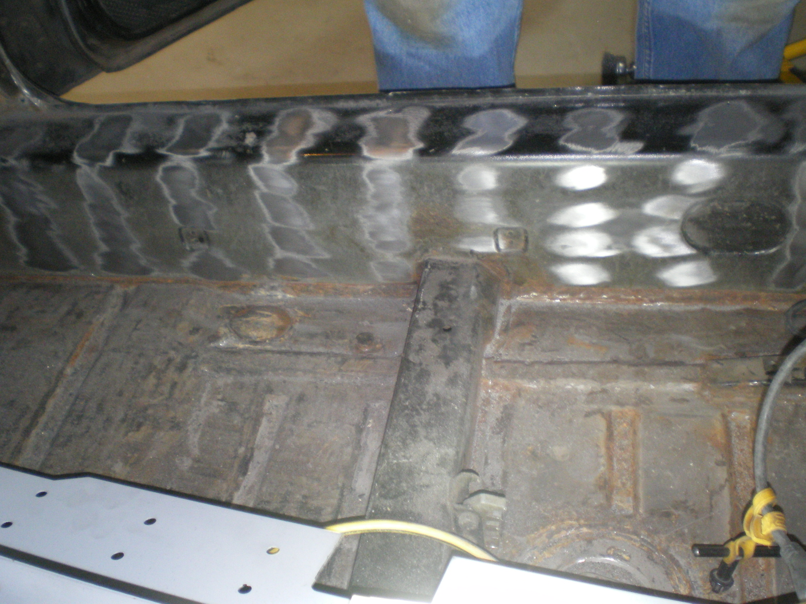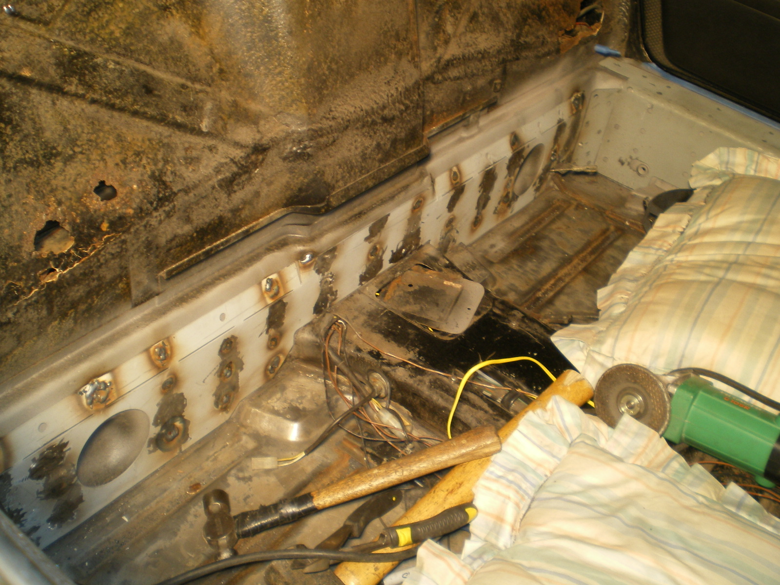So the pans look great but look what I found. I had heard that these engine/firewall blankets were nothing but a water trap and now I'm a believer. I guess I should be happy that this is as bad as it gets. Just a little more (IMG:style_emoticons/default/sawzall-smiley.gif) (IMG:style_emoticons/default/smash.gif) (IMG:style_emoticons/default/welder.gif) . BTW, is the firewall 16 or 18ga? Here are 2 pic's of the R side: