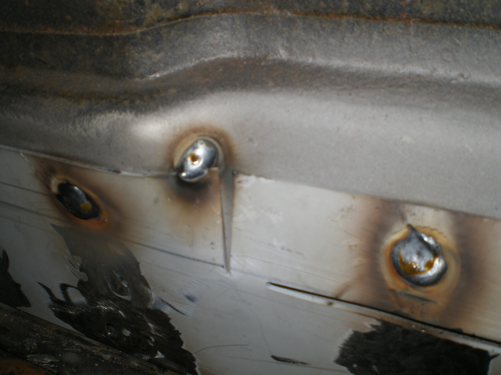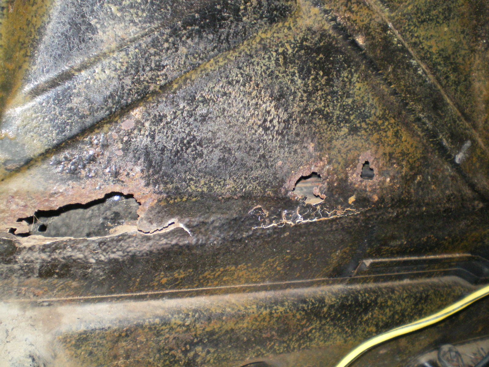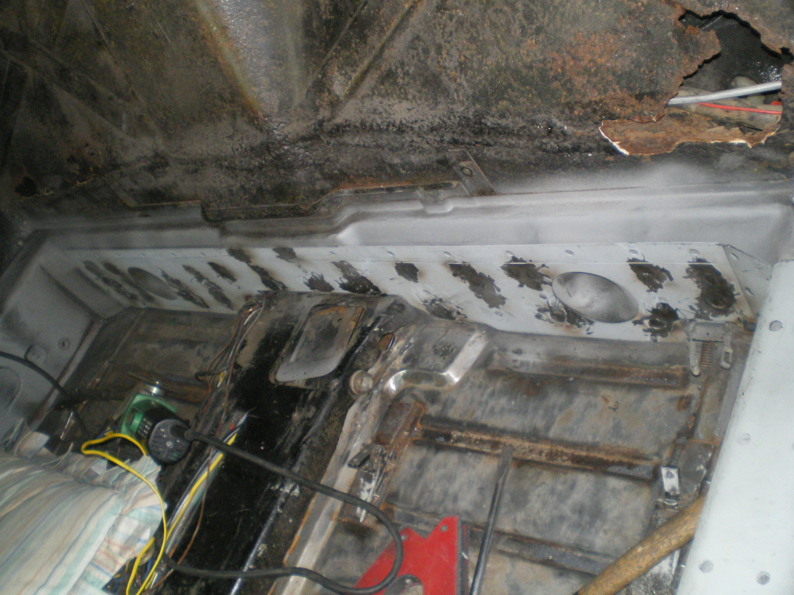 So the pans look great but look what I found. I had heard that these engine/firewall blankets were nothing but a water trap and now I'm a believer. I guess I should be happy that this is as bad as it gets. Just a little more (IMG:style_emoticons/default/sawzall-smiley.gif) (IMG:style_emoticons/default/smash.gif) (IMG:style_emoticons/default/welder.gif) . BTW, is the firewall 16 or 18ga? Here are 2 pic's of the R side:
