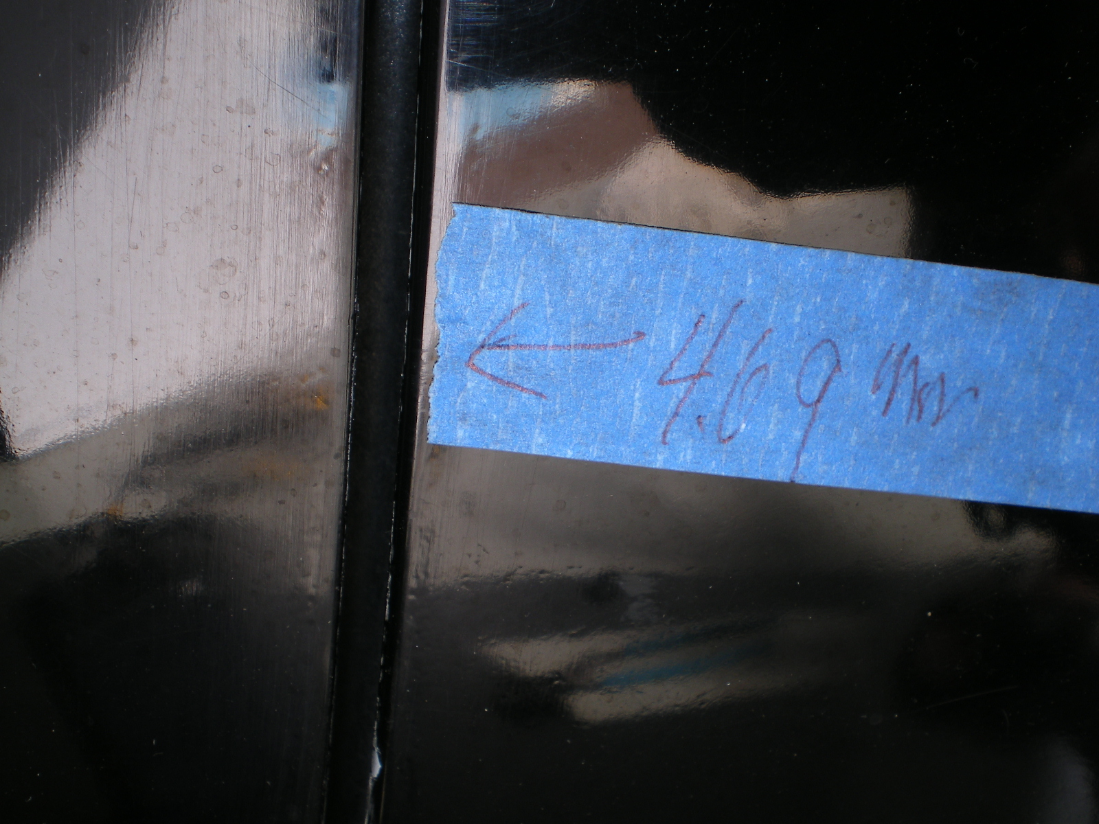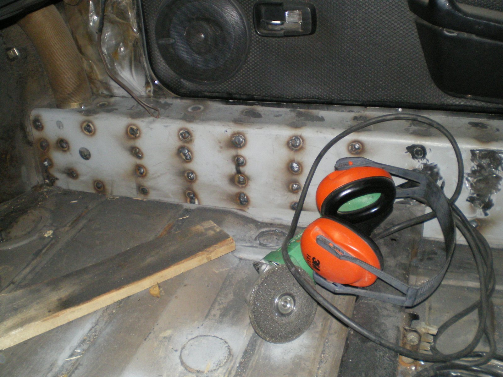 Just got off the phone after discussing metal shrinkage with Ceasar (phatt911) and realized that this might be of some use to those considering a stiffner kit. As shown in an earlier pic, I measured the door gap at 3 equidistant locations on both doors prior to any welding on the long portions. I did NOT brace the door but did this instead. After leveling (and that is a trick) the car I would weld 3 spots (front, middle and rear to keep the weld spots spread out) on one side and then move to the other side and repeat. Never welding any area unless the metal was cool enough to place my dinkus upon. If additional time was needed I would do some grinding instead. After 6 or 8 welds on each side I would check the door gaps again. I welded all of the vertical spots (or sides) before doing the tops. The shrinkage that I experienced was .37mm after welding the sides. After welding the top portions the shrinkage increased to 1mm nominally. Or .63mm. Amazing! Half the area and half as many holes as the sides, yet twice the shrinkage. I had suspected this might be the case and had therefor left the top on during construction just in case. I think that bracing the door is the more prudent action but I like to test the water for myself from time to time and these are my results. Disclaimer: Your results will probably vary. (IMG:style_emoticons/default/smoke.gif)