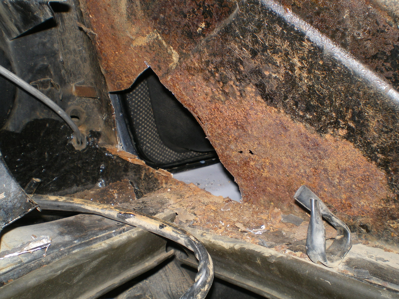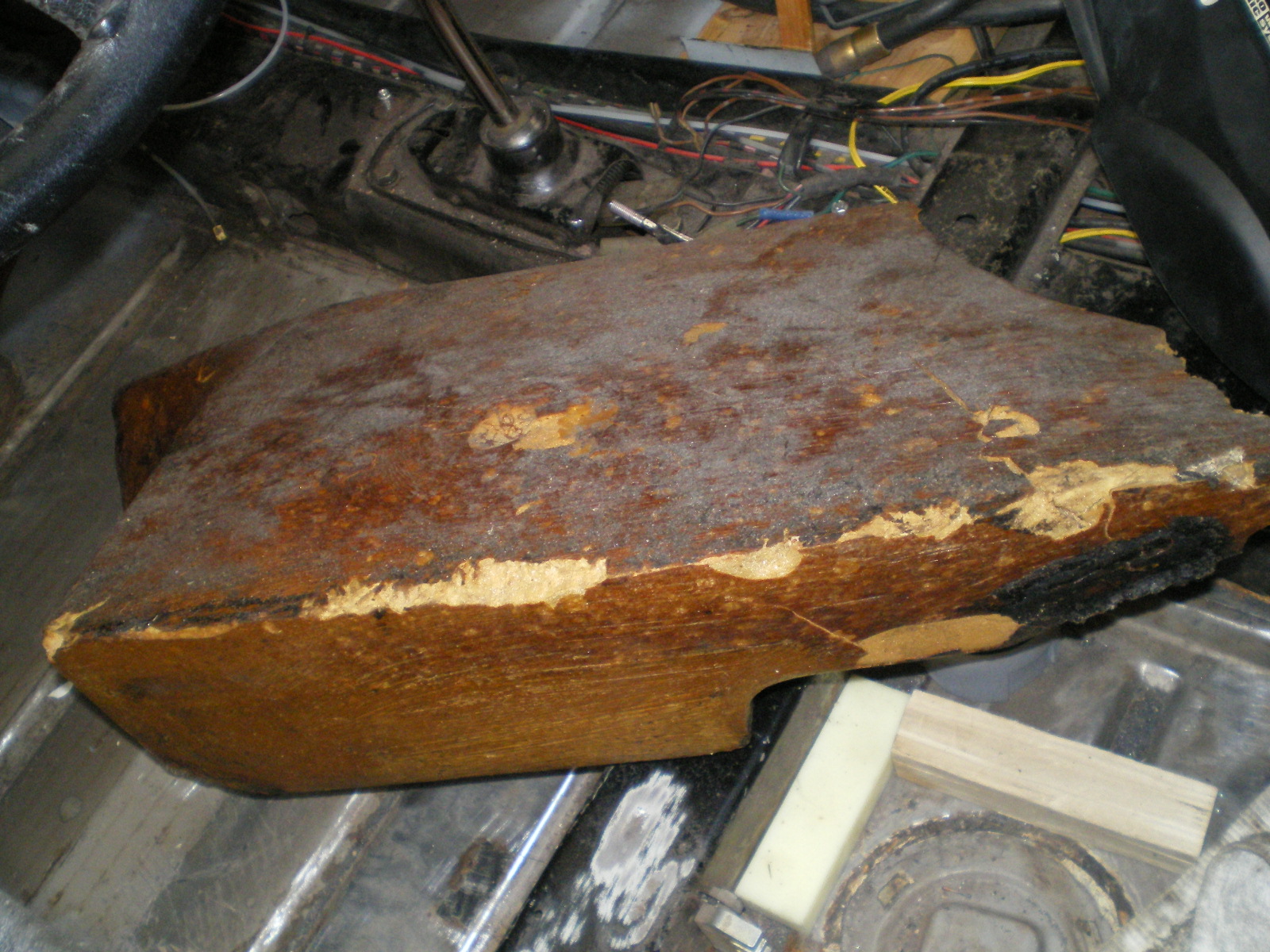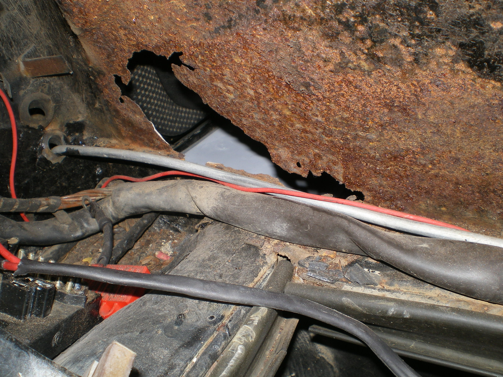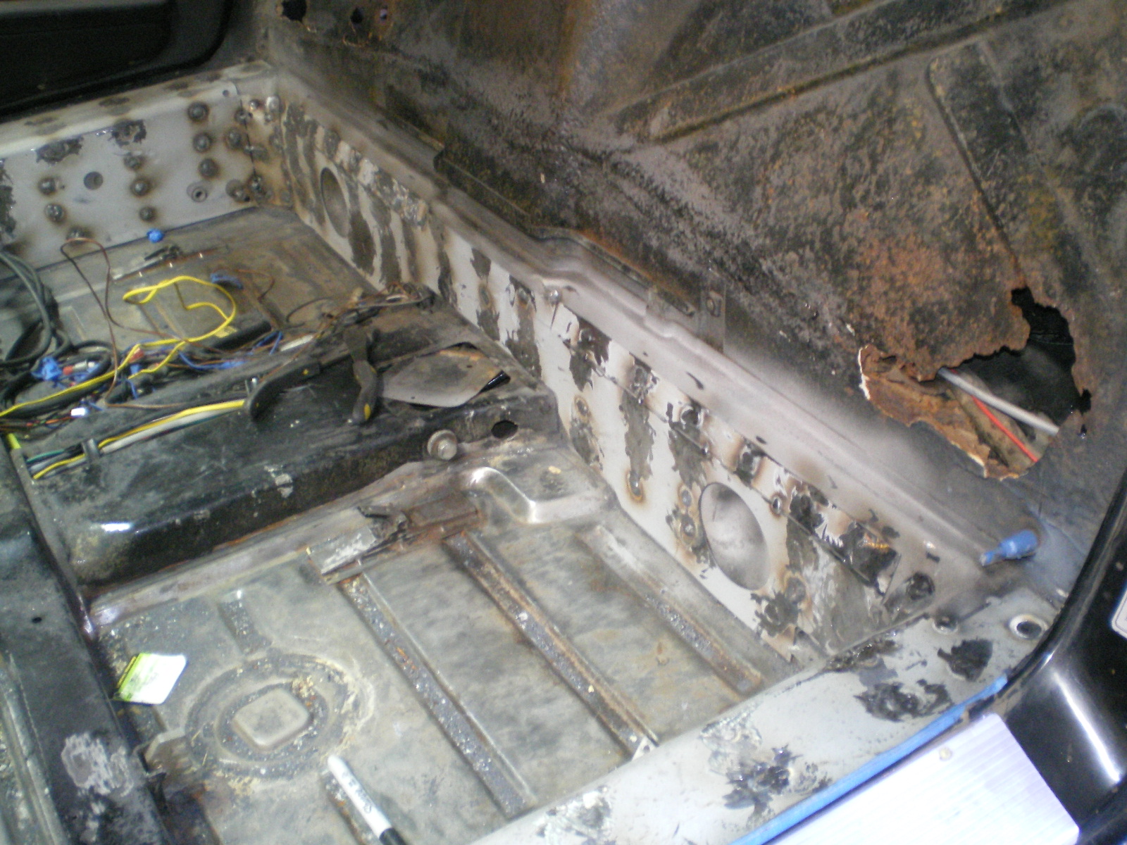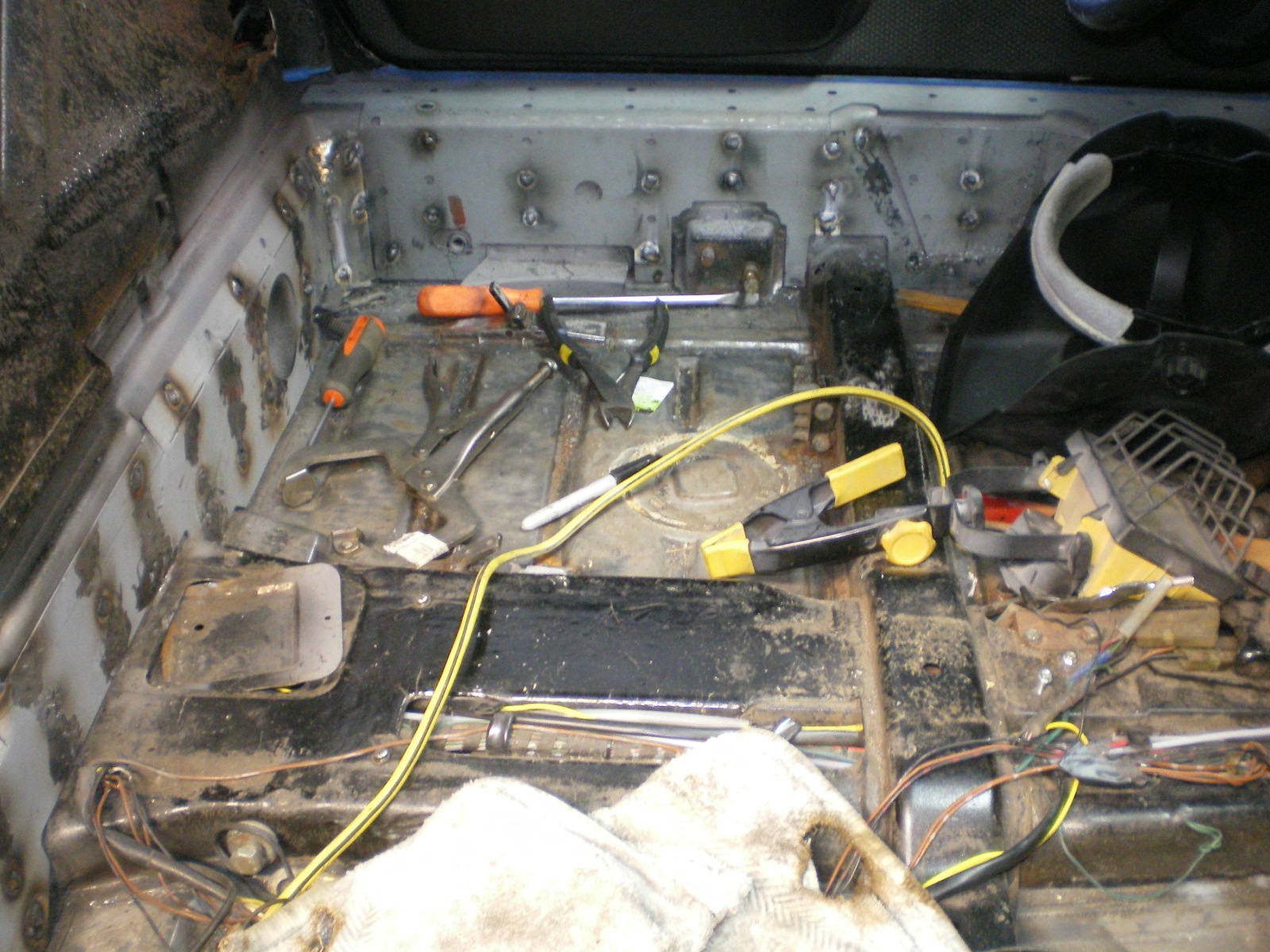 ![]() ![]() ![]() And this looks a little suspicious. Rivets and a rough finish on the panel. ![]() Then there is the matter of this booger by the PO. ![]() So I drill out the rivets and look what I find. Has anyone seen these before. Obviously stamped steel so mfg'd by someone. ![]() Once they're out this is all that was left of the tray. The pedestal was in good shape but I doubt I will relo a batt here. ![]() Couple of pic's while getting cleaned. These holes need to be welded up ![]() And a small patch here ![]() ![]() One booger mostly ground down ![]() |